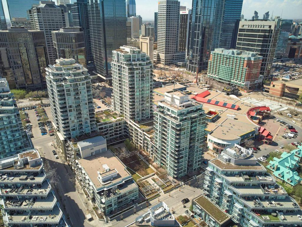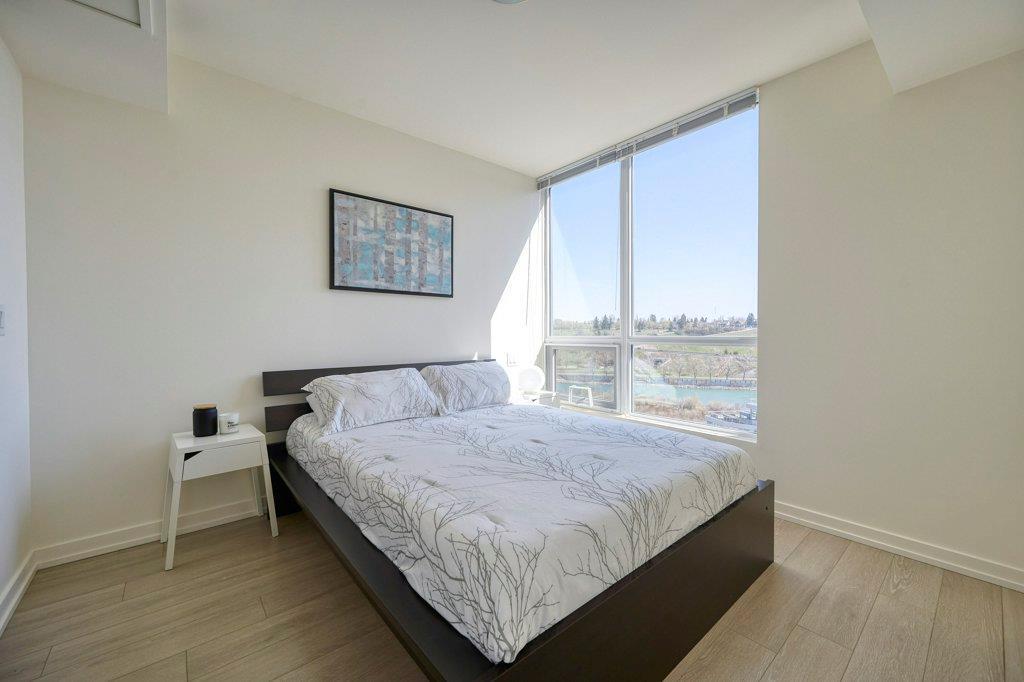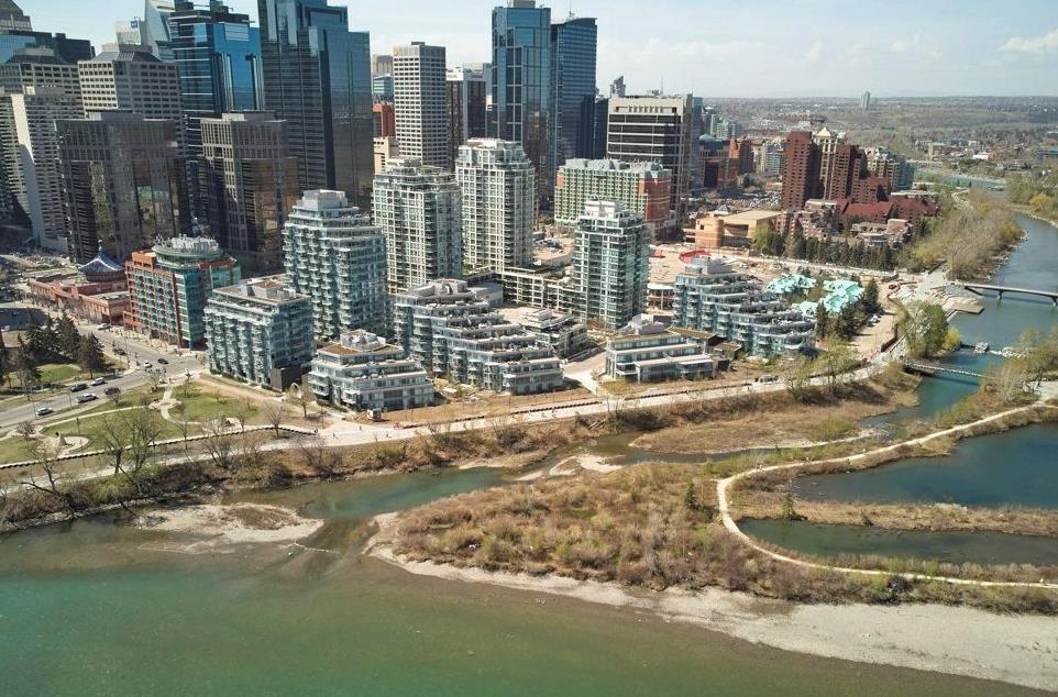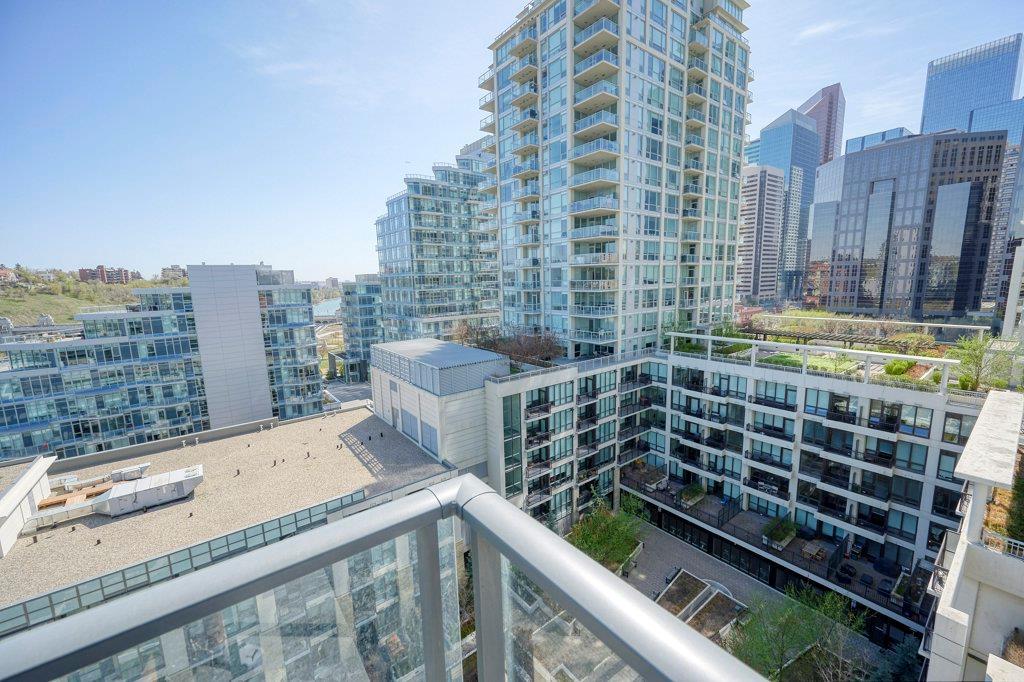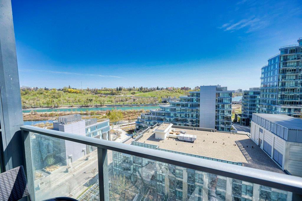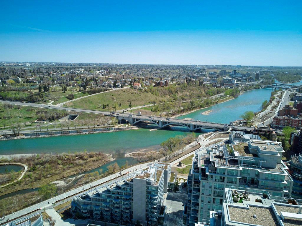 If you're in the market for a luxury condo in Calgary, this one is definitely worth your attention. Located in the prestigious Outlook at Waterfront complex, this two bedroom, two bathroom, air conditioned condo is kept in pristine condition and is move-in ready. Walking into the unit, you'll be met with an abundance of light from the floor to ceiling windows and will be amazed by the contemporary design of the unit. One of the standout features of this unit is the spectacular views of the Bow River and downtown Calgary. You'll find a gourmet kitchen equipped with stainless steel appliances with a gas range and lots of cabinet space for storage, as well as a large centre island with beautiful quartz countertops, designer tile backsplash and a breakfast eating bar. The kitchen is open to a large great room and dining area. The doors off of the dining area lead out to an east-facing balcony with views of the Bow River and downtown Calgary. The bright and open primary bedroom can be found just off of the dining area and connects to a large 3 piece ensuite. The walkthrough closet comes with custom built in features for storage and convenience. The unit also consists of a large main bedroom and a good sized 4 piece main bathroom with a soaker tub. Let's not forget about the practical features of this condo and the complex. It is rare to find a unit such as this one that comes with two assigned parking stalls conveniently located across from the elevator doors. The complex itself is very secure and has an abundance of amenities, including concierge service. You can find a conveniently located fitness center, yoga studio, spa, movie theatre, lounge/social room, outdoor courtyard, car wash bay, and more just steps from the unit. The location of this condo is just as impressive as its views and amenities. It's situated in downtown Calgary, giving you easy access to all of the walking paths along the river, amenities, and transportation options that the city has to offer. From the stunning views to the convenient location and practical features, there are so many reasons to make this your next home. Perfect for the professional couple, investor, or small family. Exceptional Value! (id:22211)