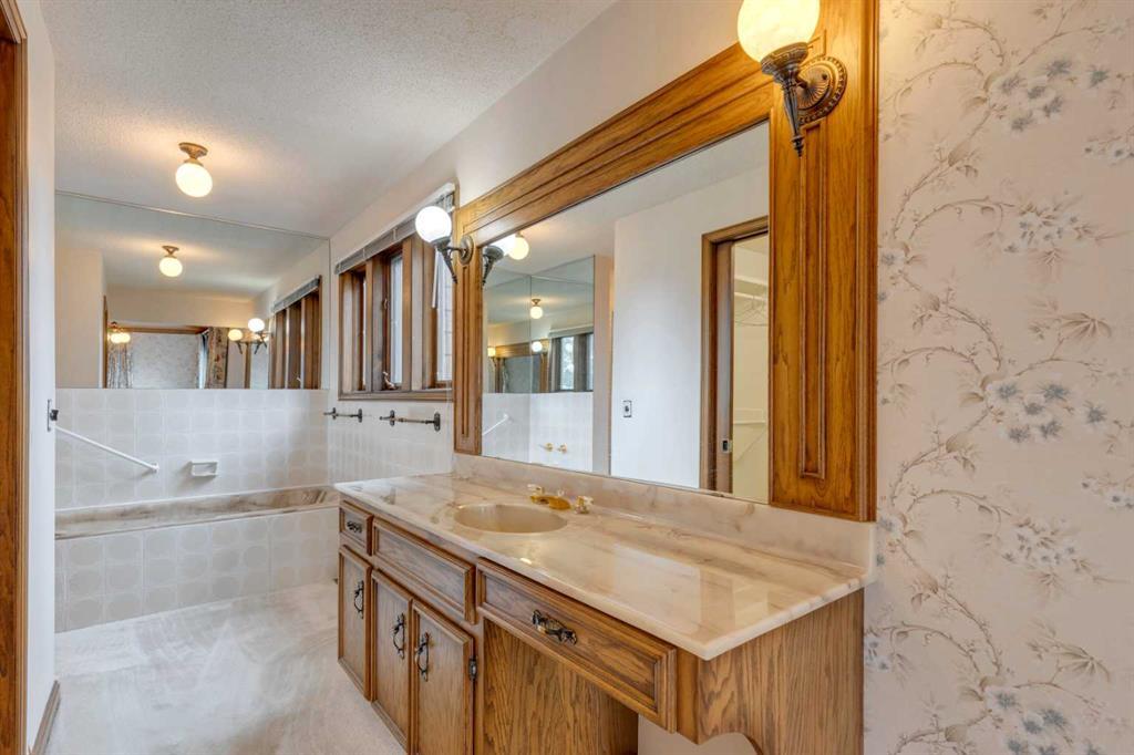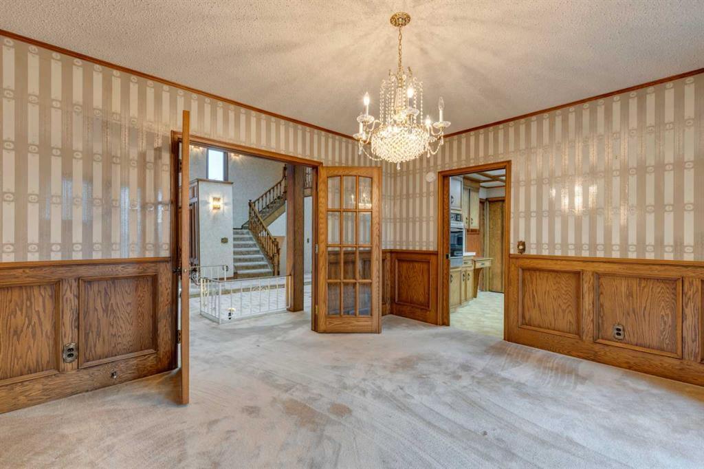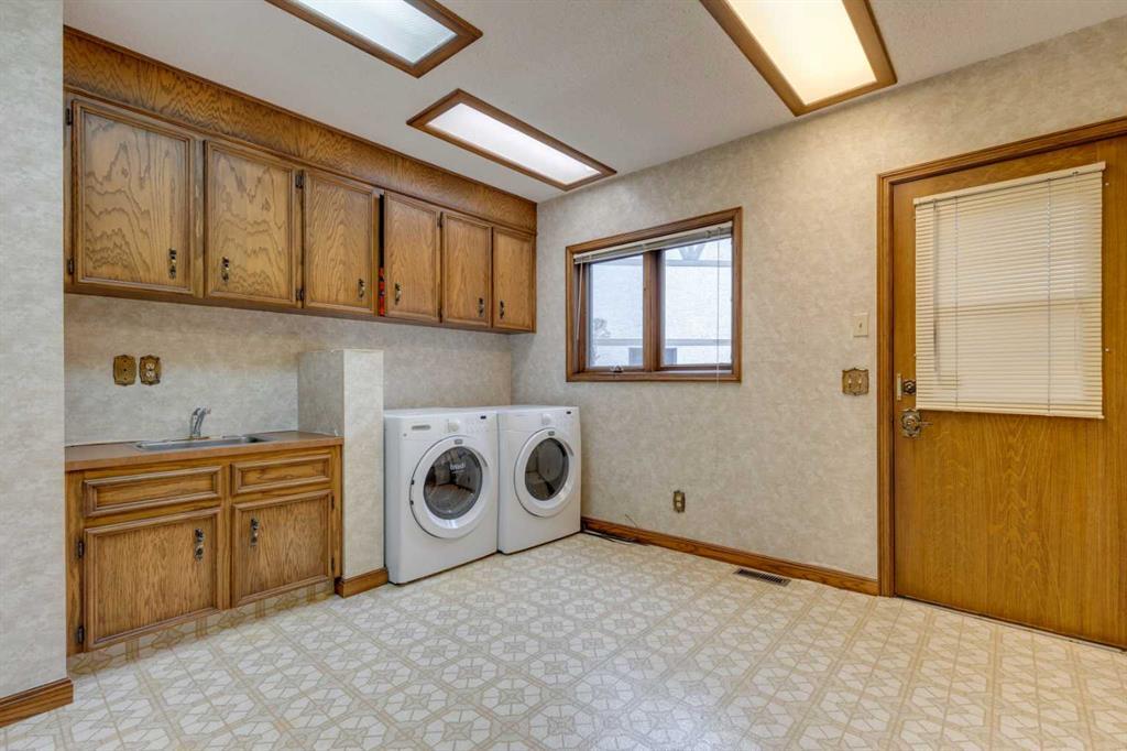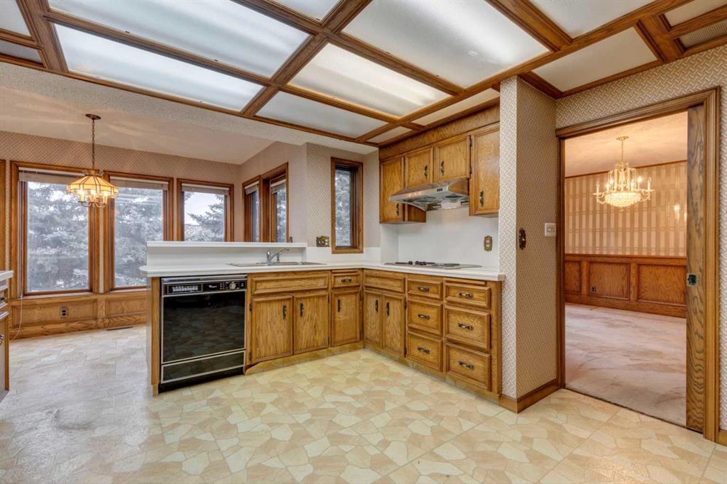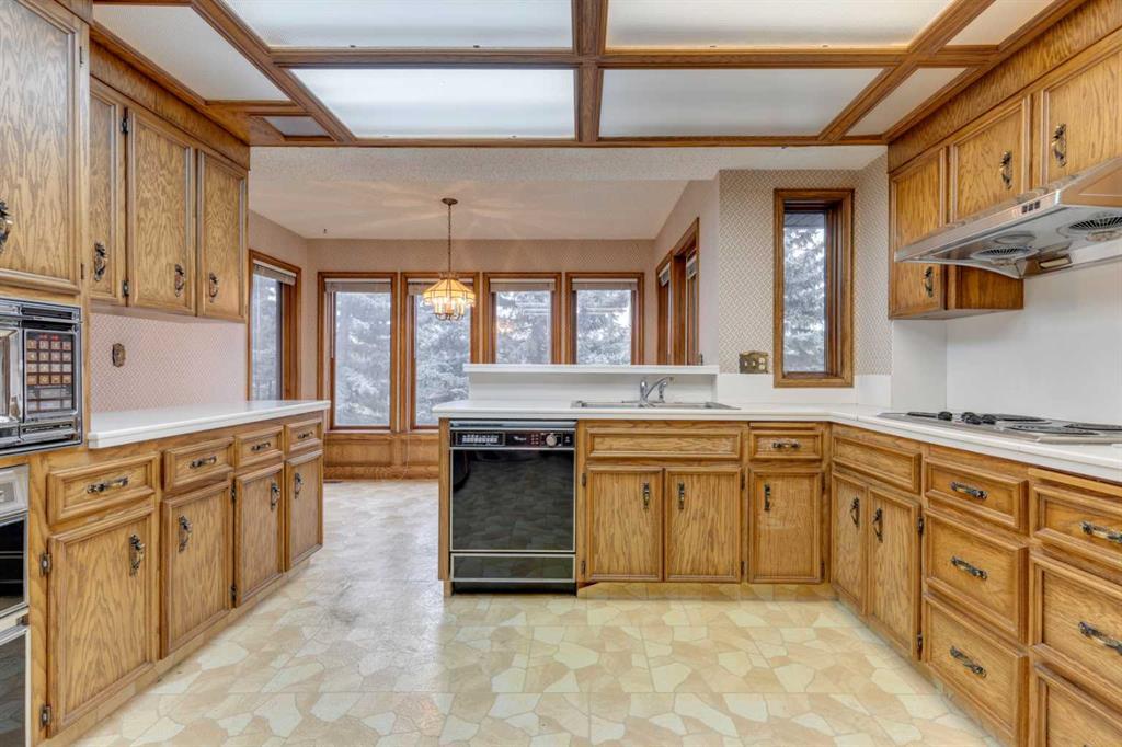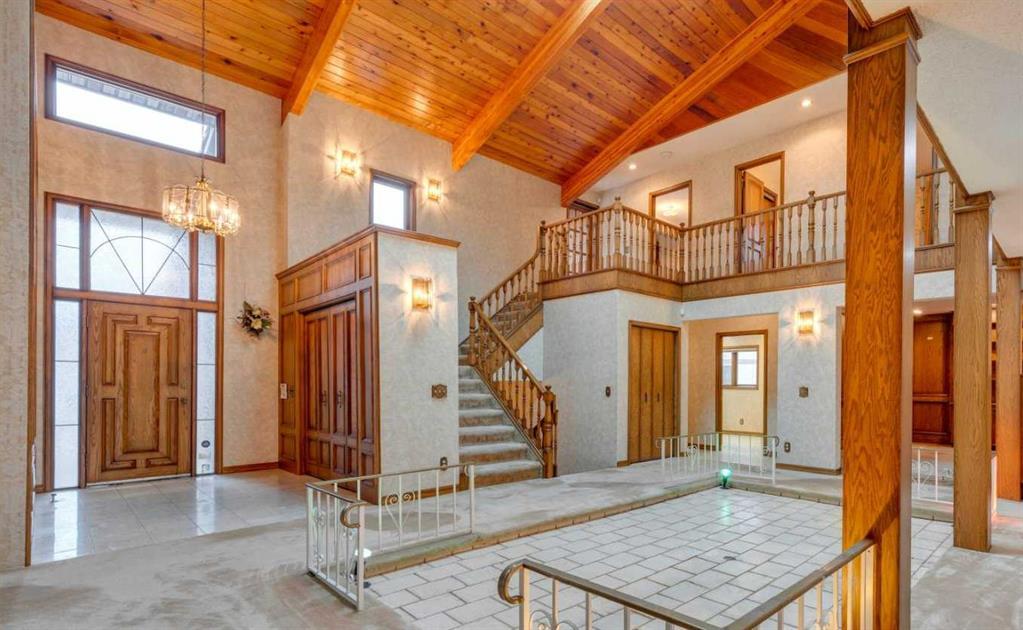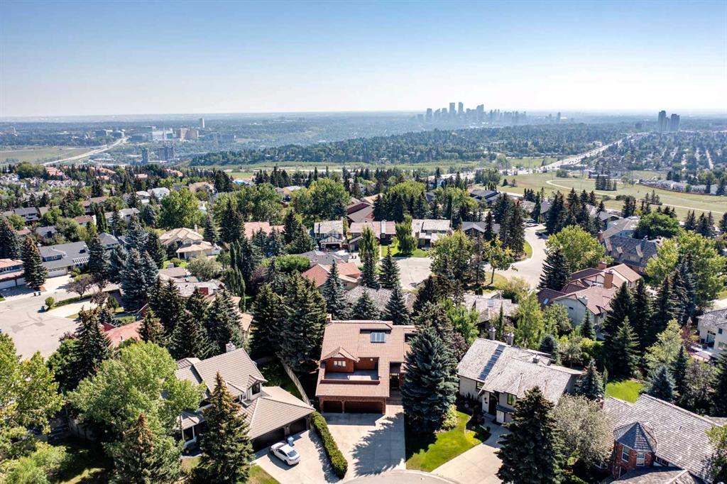 Located on a quiet cul-de-sac in the exclusive community of Coach Manor Estates, this custom built home is being offered for sale for the first time! Situated on an oversized pie shaped lot, and with over 5,400 sq ft of living space, this 5 bedroom, 3.5 bathroom home is ideal for growing and multigenerational families. Well built with wood plank ceilings, solid oak doors, solid wood bannisters, railings and built-in's through out. The grand foyer is the heart of the house, featuring soaring beamed ceilings, dedicated plant area with tile floor and skylights. The main level of this home is perfect for entertaining and family living. The sunken living room with wood burning fireplace makes for a great sitting room while the family room on the other side of the house provides a great space for family with a 2nd wood burning fireplace, built-in book shelves, it's own balcony and access to the kitchen and breakfast nook. There is a formal dining room with deck and kitchen access; it features a beautiful chandelier and French doors. Also on this level is a home office with built in shelves and credenza, a 2 pc bath and large laundry room. On the second level you will find the master suite with vaulted ceilings, walk-in closet, 4 pc ensuite and private balcony. Perfectly designed for family, the 3 additional bedrooms are uniform in size, 2 with balcony access. A 5 pc bath and huge study complete this level. The walk-out basement features a huge rec room with wood burning fireplace. The addition of a 5th bedroom, 3 pc bath, summer kitchen and den make this an ideal space for a live-in nanny or extended family! There is a sauna off the bathroom and 3 storage spaces. There is no lack of out door living space with 4 east facing balconies, a roof top patio over the garage and a covered patio off the rec room. The attached triple garage and large driveway ensure enough parking for everyone! Close to schools, shopping, golf and nature trails. Easy access to transit, walking paths and all amenities. Only 20 minutes to Downtown and 15 minutes to Winsport! (id:22211)