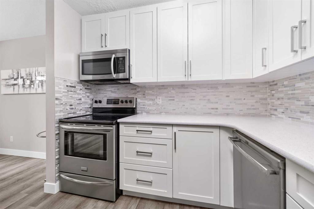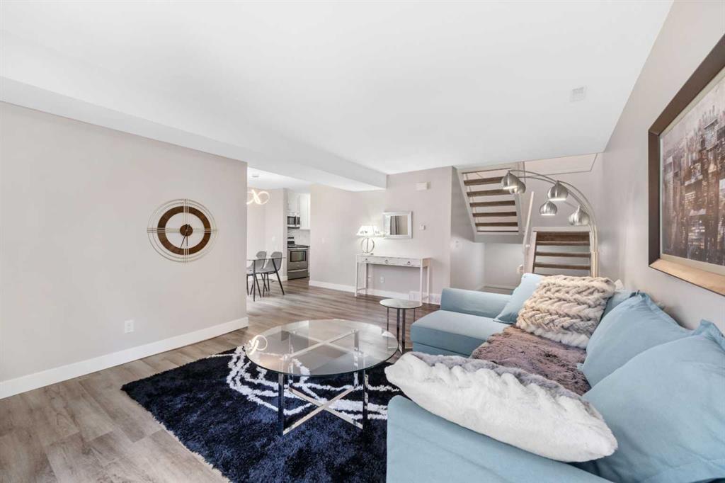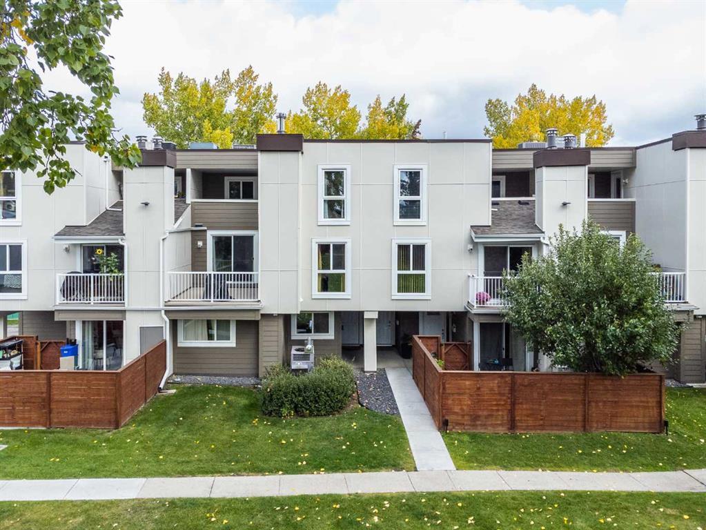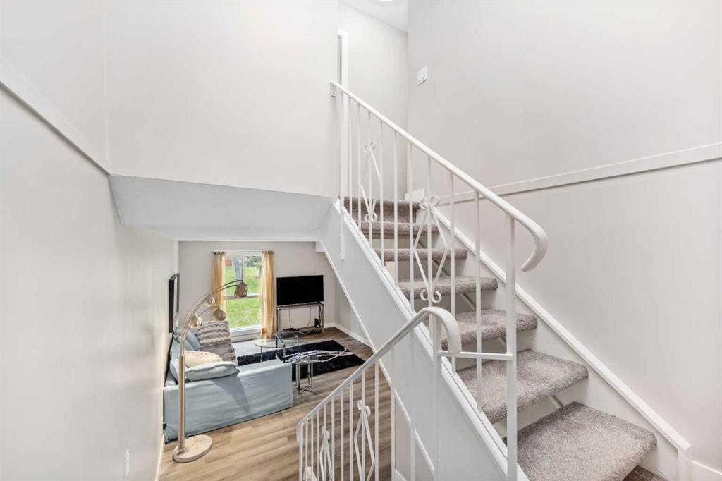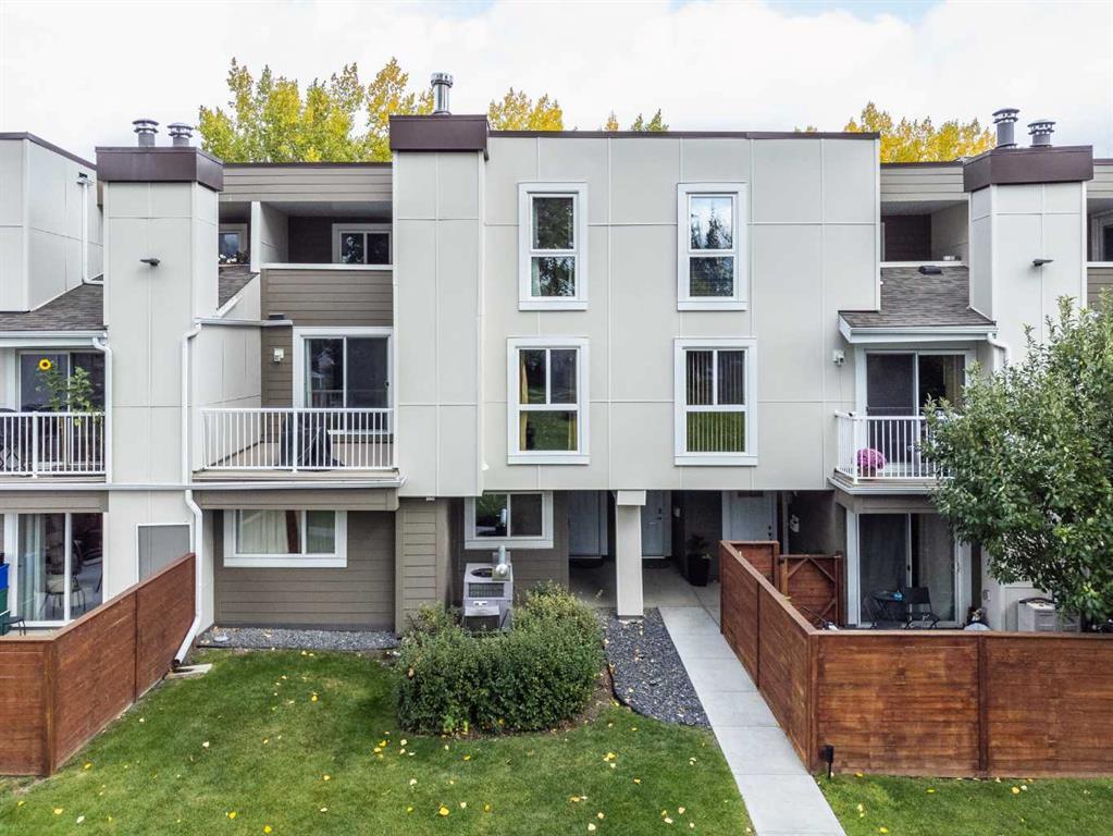 AWESOME FISH CREEK PARK LOCATION!!! With over 1000 sq.ft of developed living space, this FULLY RENOVATED unit also commands one of the best locations in the complex, fronting onto the common park and a 2 minute walk to Fish Creek Park trailhead!! This is a REAL renovation, stripped back to the subfloor and walls (2020)!! Custom cabinets by Superior Cabinets & Granite Gallery quartz counters in kitchen & bath, newer chic backsplash, newer luxury vinyl flooring on main floor, 40 oz carpet & 11 mm Ultra-Fresh low VOC’s, non-toxic, waterproof underlay on upper floor & stairs, sinks, toilet, tub & tiled tub surround, plumbing fixtures, light fixtures, baseboards, interior doors and trim, wall & ceiling paint and hot water tank! All stainless steel appliances including OTR microwave!! Better than an apartment, this home offers privacy with no one above and direct access to the outside with views of spectacular Fish Creek from the 2 large balconies, one of which is perfect for entertaining while the other is a private retreat off the primary bedroom. Superb LAUNDRY ROOM located right off the kitchen is not only convenient, but doubles as a generous pantry/storage area! Additional under-stair storage with vinyl flooring! The entire complex has had extensive exterior renovations including new windows, exterior doors, building envelope/composite exterior finishes, roof, eaves, flashing, deck flooring & aluminum railing! ADDED BONUS - The loan attached to this unit of over $46,000 has already been paid out! So, unlike most of the recently sold units, there are no extra monthly loan payments!!! Gently lived in and proudly maintained, with Fish Creek Park right at your doorstep - Perfect!! 2 pets allowed with board approval. 1 assigned stall & lots of visitor parking. This one won't last long, book your private viewing today!! (id:22211)