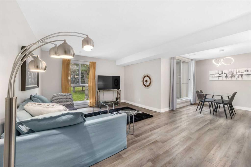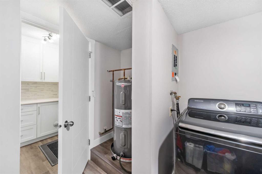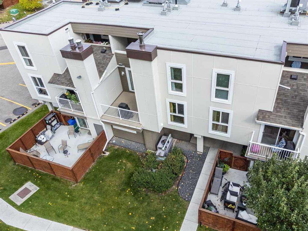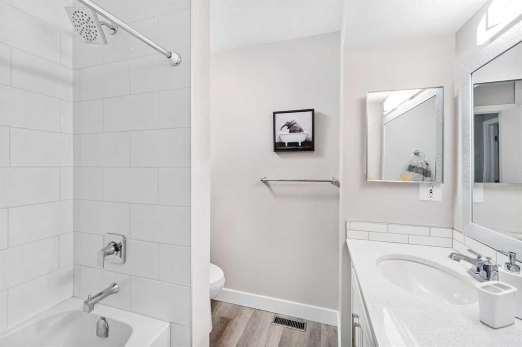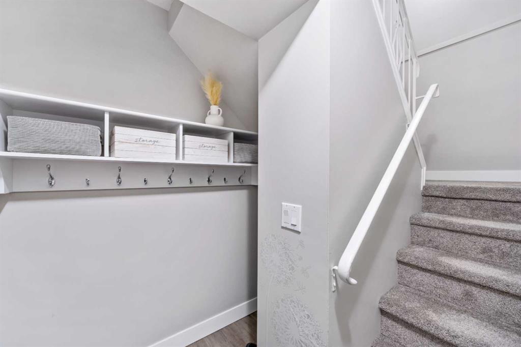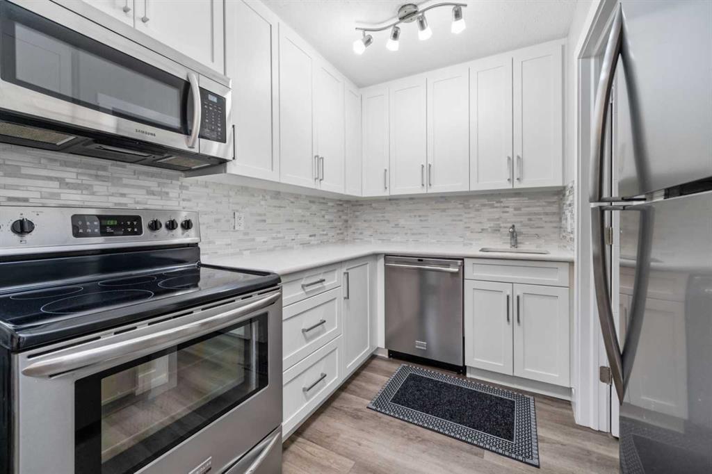 AWESOME FISH CREEK PARK LOCATION!!! With over 1000 sq.ft of developed living space, this FULLY RENOVATED unit also commands one of the best locations in the complex, fronting onto the common park and a 2 minute walk to Fish Creek Park trailhead!! This is a REAL renovation, stripped back to the subfloor and walls (2020)!! Custom cabinets by Superior Cabinets & Granite Gallery quartz counters in kitchen & bath, newer chic backsplash, newer luxury vinyl flooring on main floor, 40 oz carpet & 11 mm Ultra-Fresh low VOC’s, non-toxic, waterproof underlay on upper floor & stairs, sinks, toilet, tub & tiled tub surround, plumbing fixtures, light fixtures, baseboards, interior doors and trim, wall & ceiling paint and hot water tank! All stainless steel appliances including OTR microwave!! Better than an apartment, this home offers privacy with no one above and direct access to the outside with views of spectacular Fish Creek from the 2 large balconies, one of which is perfect for entertaining while the other is a private retreat off the primary bedroom. Superb LAUNDRY ROOM located right off the kitchen is not only convenient, but doubles as a generous pantry/storage area! Additional under-stair storage with vinyl flooring! The entire complex has had extensive exterior renovations including new windows, exterior doors, building envelope/composite exterior finishes, roof, eaves, flashing, deck flooring & aluminum railing! ADDED BONUS - The loan attached to this unit of over $46,000 has already been paid out! So, unlike most of the recently sold units, there are no extra monthly loan payments!!! Gently lived in and proudly maintained, with Fish Creek Park right at your doorstep - Perfect!! 2 pets allowed with board approval. 1 assigned stall & lots of visitor parking. This one won't last long, book your private viewing today!! (id:22211)