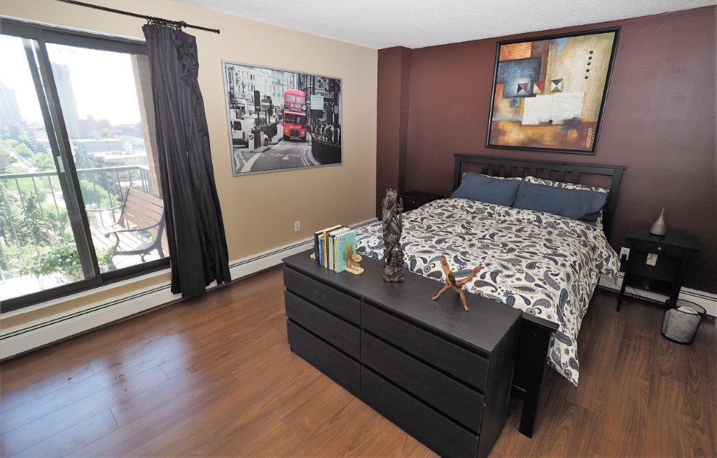 Watch the sunrise above downtown Calgary every morning from this spacious and open END UNIT 2 bedroom condo on the 11th floor. Entertain at home in your updated kitchen around a large island and living room that walks out onto the 20 foot deck with unobstructed views! Inviting open-concept living space features floor-to-ceiling windows that flood the area with an abundance of natural light. Modern energy saving appliances, 13 foot wide windows, cozy and spacious master retreat with it's own patio access, ensuite laundry with ample storage in a quiet concrete building sets this condo apart from others. This move in or rent ready home is just steps away from everything downtown and the inner city has to offer. Walking distance to countless restaurants, cafes, parks & amenities. Condo fees include all utilities; electricity, heat, water and sewer, as well as underground secured heated parking. (id:22211)