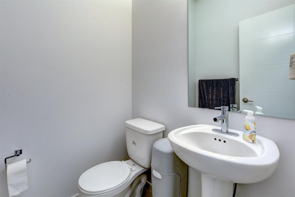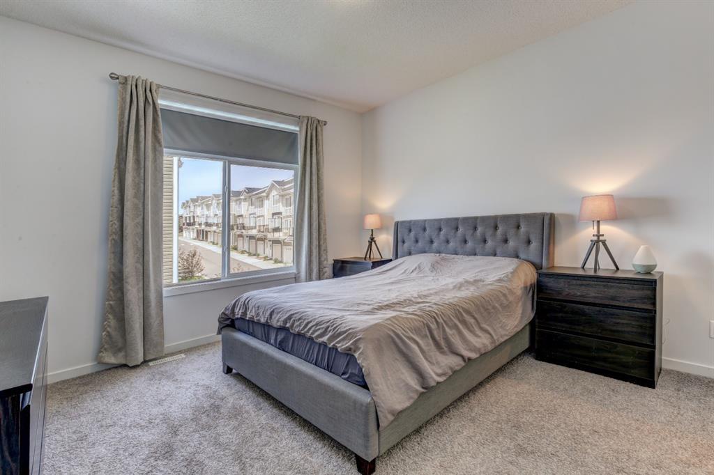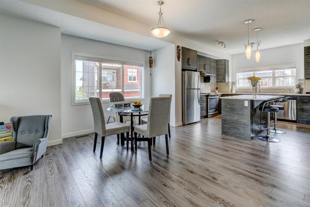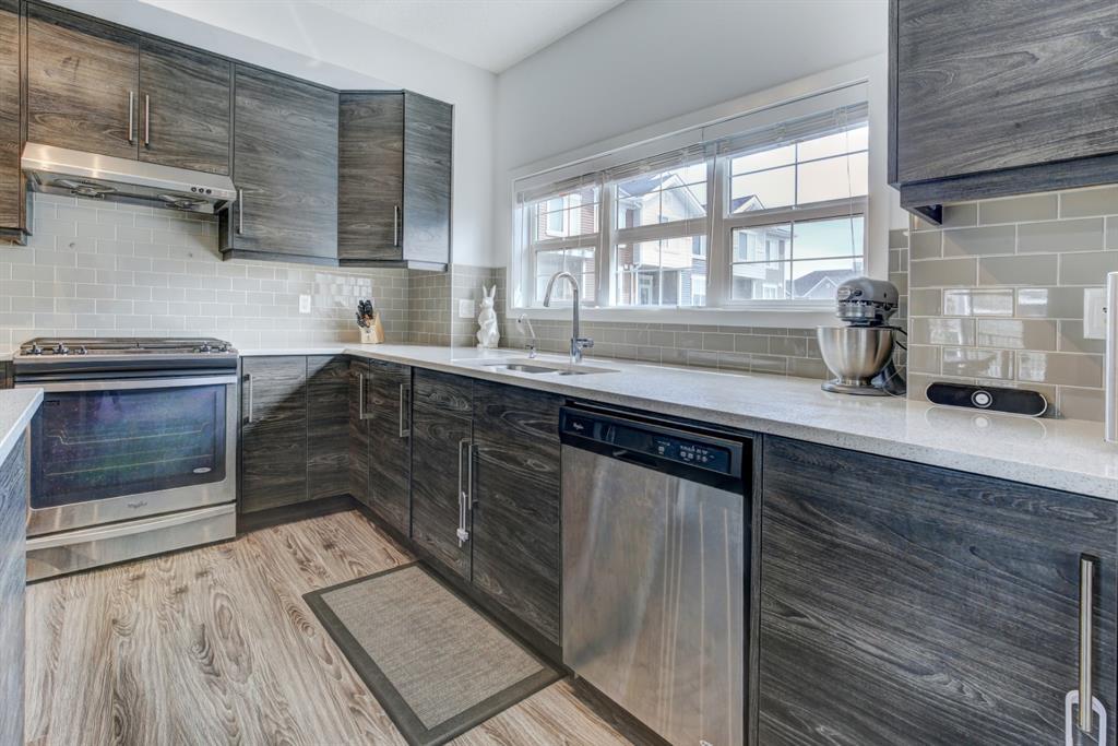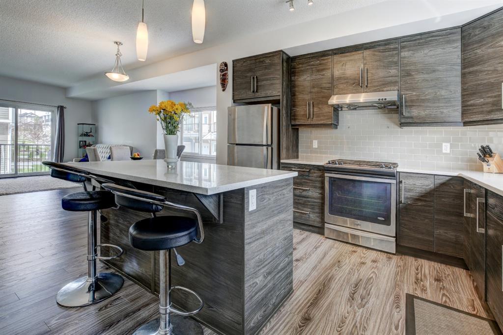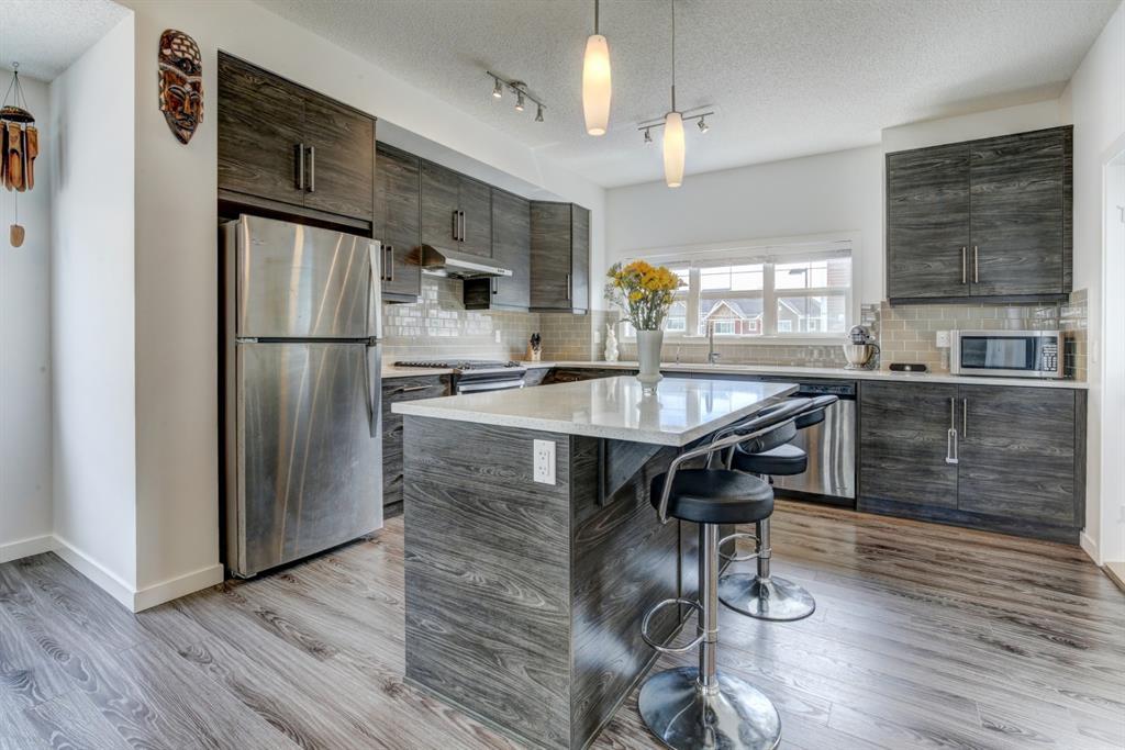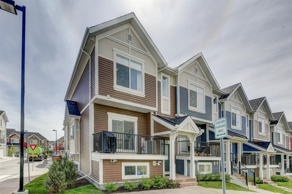 Immaculate maintained Jayman built town home located in the beautiful community of Nolan Hill!! ThisEND unit offers 3 spacious bedrooms & 2.5 baths with over 1419Sq ft living space. This gorgeous Air-Conditioned home features 9 ceilings on main and upper floor. Open concept main floor layout featureswarm contemporary decor with beautiful wide plank laminate flooring. Cozy, bright living room is adjacent to the dining room and gourmet kitchen. Designer kitchen features elegant Quartz Counter tops, spacious ceiling height, Shaker Cabinets with soft close drawers & doors, stainless steel appliances, walk-in pantry, substantial Center Island, and an abundance of counter space. Upper floor boasts 3 bedrooms, a full bath, laundry room, master bedroom with its 4 piece en-suite and Walk-In closet. The South facing balcony, opening towards the courtyard includes a BBQ gas outlet. Double Attached Heated Garage with Tandem parking space for your 3rd vehicle. Must See! (id:22211)