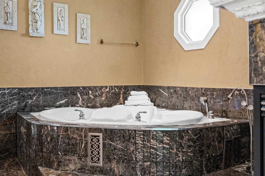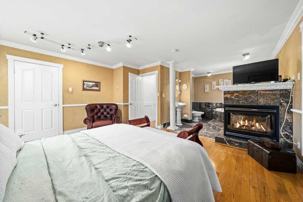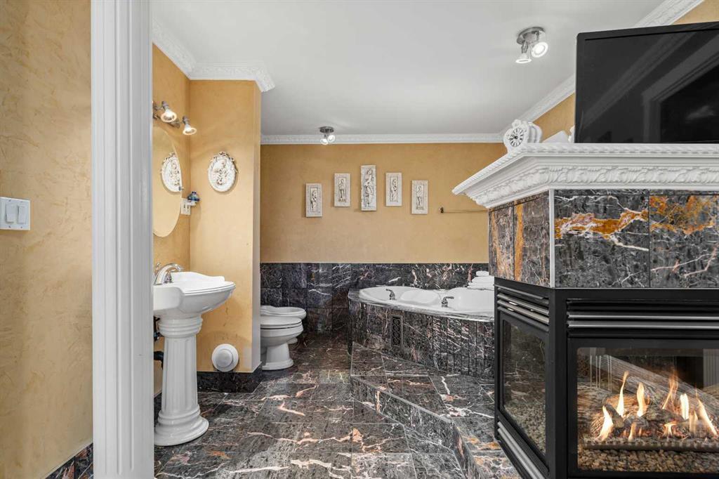 Enjoy living in this spectacular 3-level split home with 2487 SQ FT of functional living space, located in the desirable family-oriented community of Braeside! From the moment you enter this updated home, you will see the terrific use of high-end products and the pride of ownership. The main floor of this spacious home offers a bright living room with a corner wood fireplace, a spacious dining room & a glamorous kitchen showcased by a breakfast bar/island, lots of cabinets + counter space, a pantry & high-end stainless steel appliances (gas stove, built-in oven & microwave)- perfect for the at-home gourmet. Upstairs you will find a spacious bedroom, and a relaxing primary suite featuring a gas fireplace, walk-in closet & 4 piece ensuite bathroom (corner soaker tub, bidet). The lower level offers a huge family/rec room and an updated 3-piece bathroom with laundry. Other features include a converted 1 car garage into a bonus room/3rd bedroom (easily converted back), a relaxing sun room with patio doors + much more. The private outdoor oasis is an extension of the home and it offers a private landscaped front yard with a patio, a covered side porch with a wood fireplace, 2 sitting areas, a garden, a tree house, and a storage shed - a perfect place to relax/unwind/entertain with your friends and family. This property is close to major amenities including shopping, schools, walking paths & all major roadways (Stoney Trail). This house is a perfect combination of high-end finishings, functional living, excellent outdoor space, and an ideal location! This property shows 10/10! (id:22211)