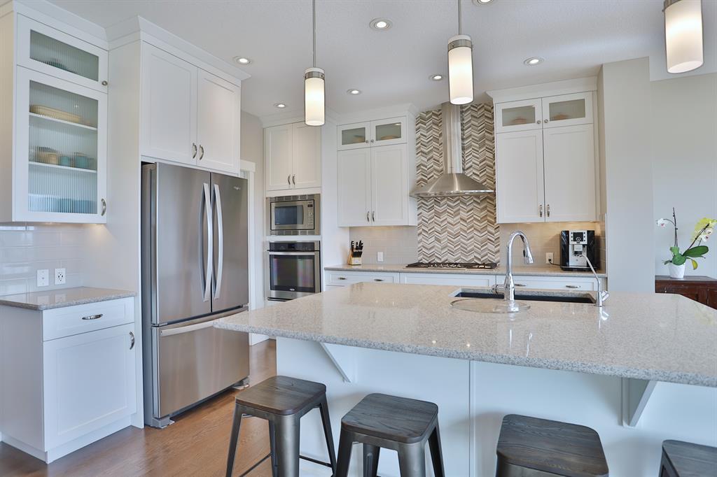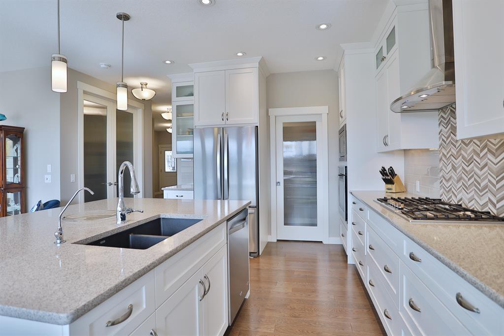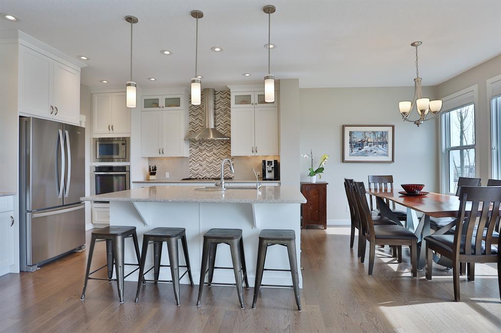 Your dream home awaits in this stunning one-owner home backing onto a serene pond & park in the popular family community of Nolan Hill. Built by Sterling Homes, this extensively upgraded two storey walkout enjoys hardwood floors & an expanse of windows, total of 5 bedrooms + den, designer kitchen with quartz countertops & wonderful outdoor living space in the beautiful professionally landscaped backyard. The moment you step through the front door, you'll love the stylish & inviting floorplan complemented by 9ft ceilings, sun-drenched great room with fireplace & wall of windows, open concept dining room with access onto the balcony & upgraded kitchen with full-height cabinets & subway tile backsplash, large walkthru pantry, centre island with built-in wine rack & stainless steel appliances including Bosch gas cooktop, Whirlpool built-in convection oven & Faber chimney hoodfan. Highly-desirable 4 bedrooms up highlighted by the owners' retreat with views of the pond, big walk-in closet & soaker tub ensuite with quartz-topped double vanities & separate shower. Family bathroom with quartz counters & 2 sinks, laundry room with built-in cabinets & lovely bonus room with 9ft ceilings & hardwood floors complete the upper level. The walkout level is finished with a 5th bedroom & bathroom with oversized shower, plenty of extra space for storage & smashing rec room with roughed-in wet bar & French door to the covered patio. Main floor home office with French doors, NEST thermostat & Hunter Douglas blinds, large mudroom with walk-in closet, reverse osmosis system & fenced backyard with winding & terraced gardens, 2 patios & gate to the park. A truly phenomenal home in this truly phenomenal location, tucked away in this quiet cul-de-sac only minutes to area shopping (Sage Hill Quarter, Beacon Hill & Sage Hill Crossing), walking distance to playgrounds & quick easy access to Shaganappi/Sarcee/Stoney Trails to take you to the airport, Cross Iron Mills, downtown & beyond! (id:22211)