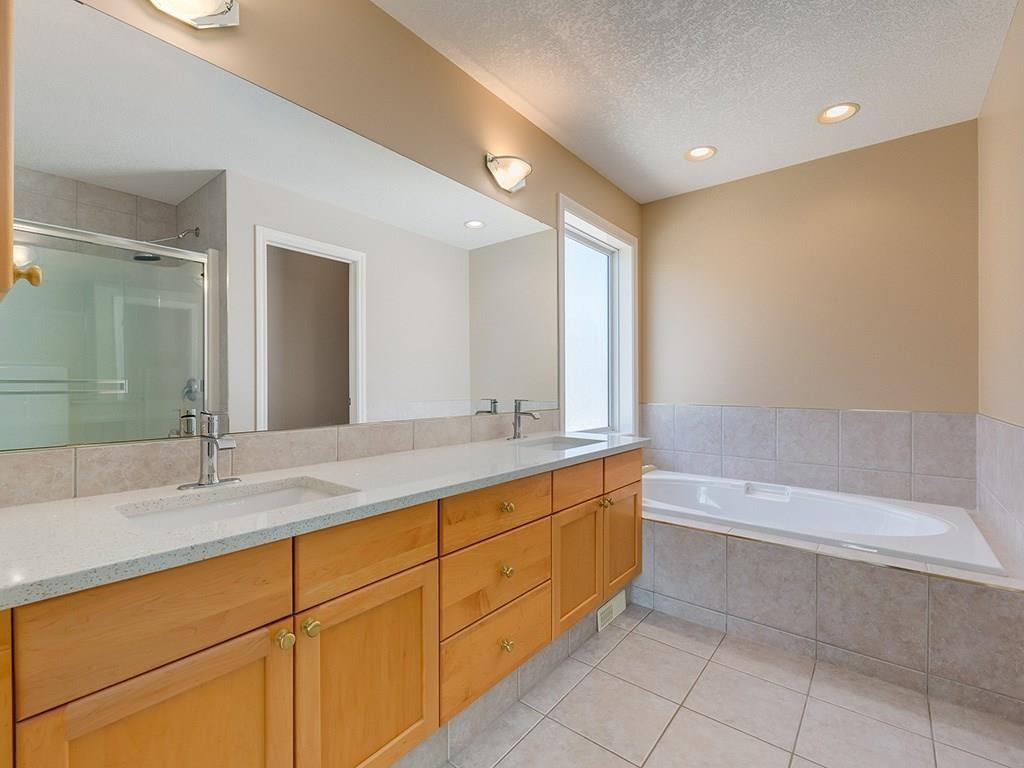 View Virtual tour video on the link above. Beautiful family home on quiet cul-de-sac street with 3089 SQF living space. Main floor offers gleaming hardwood flooring, new carpet, a spacious office/den with French doors and an open floor plan. Large west-facing dining room, breakfast nook, living room with fireplace opens to kitchen with new stainless-steel appliances, new quartz countertops. Laundry room/mud room complete the main floor. Beautiful foy leads to upstairs where you will you'll find large bonus room with vaulted ceiling, fireplace, master bedroom with ensuite and walk-in closet and two generous sized bedrooms (one with walk-in closet) & another bath.The fully developed basement has two additional bedrooms, full bath with heated flooring plus a large media/family room space. The West-facing backyard w/ mature trees, lots of privacy, a huge deck & hot tub. Enjoy all the convenience of this home with close proximity to the best schools, shopping and easy access to the mountains and downtown. (id:22211)