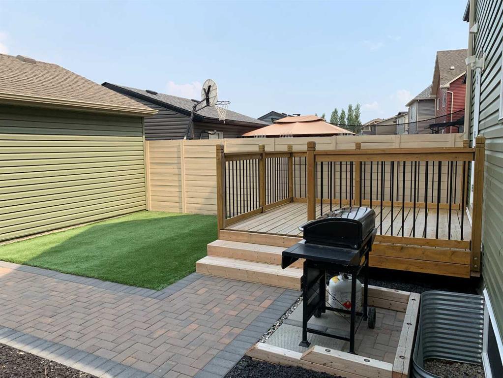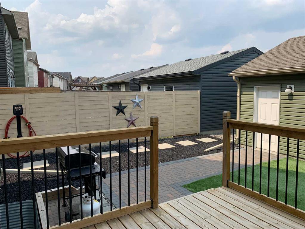 This well-maintained single owner 4 bdrm, 4 bath, 2½ storey, 1903 sq. ft. home was built in 2015. Enjoy the 5’7” x 19’5” stone and wood front porch. This home is close to Walden Orange Park, it is a short walk to Legacy shopping and the Gates of Walden shopping. It is also near All Saints High School in Legacy, doctor’s offices, bottle depot and medical clinics. There is a bus route close by and it is close to Fish Creek Park, with easy access to McLeod Trail, Deerfoot and Stoney Trails. The open concept main floor has a kitchen, living room with a gas fireplace that is tile with a mantle, dining room, mud room and a 2-pc bath. The kitchen has granite counter tops. These appliances are included with the home: a gas stove, built in microwave with hood fan, dishwasher, side by side fridge with an icemaker, washer and dryer. The second floor boasts a master bedroom with a 5-pc ensuite, a second and third bdrm, another 4-pc bath and a laundry room. The windows have custom blinds on main and second floor. All blinds on second floor are cordless. The third floor contains a bonus room, a bedroom and a 4-pc bath. The 692 sq. ft. basement is undeveloped with roughed in plumbing. There is a valve in the basement floor to prevent sewer back-up. There is a fully labeled electrical box in basement. Flooring consists of maple hardwood, tile and carpeted stairs. The stairway carpet was a $2000 upgrade for premium carpet and underlay. There is a roughed in vacuum system. There is a dbl detached garage 20’ x 21’ exterior dimensions, a garage door opener with two controls and a garage pad apron. Enjoy a maintenance free backyard with artificial turf and brick pavers. The back deck is 9’2” x 10’2”. Exterior is vinyl and stone with a poured concrete walk from sidewalk to house. There are asphalt shingles and a zero-lot line. The exterior has wifi Gemstone lights $2,000. They offer multiple colours and you can control them from anywhere in the world with your phone . 60-day possession, negotiable. This is a one owner home, pet free and smoke free. (id:22211)