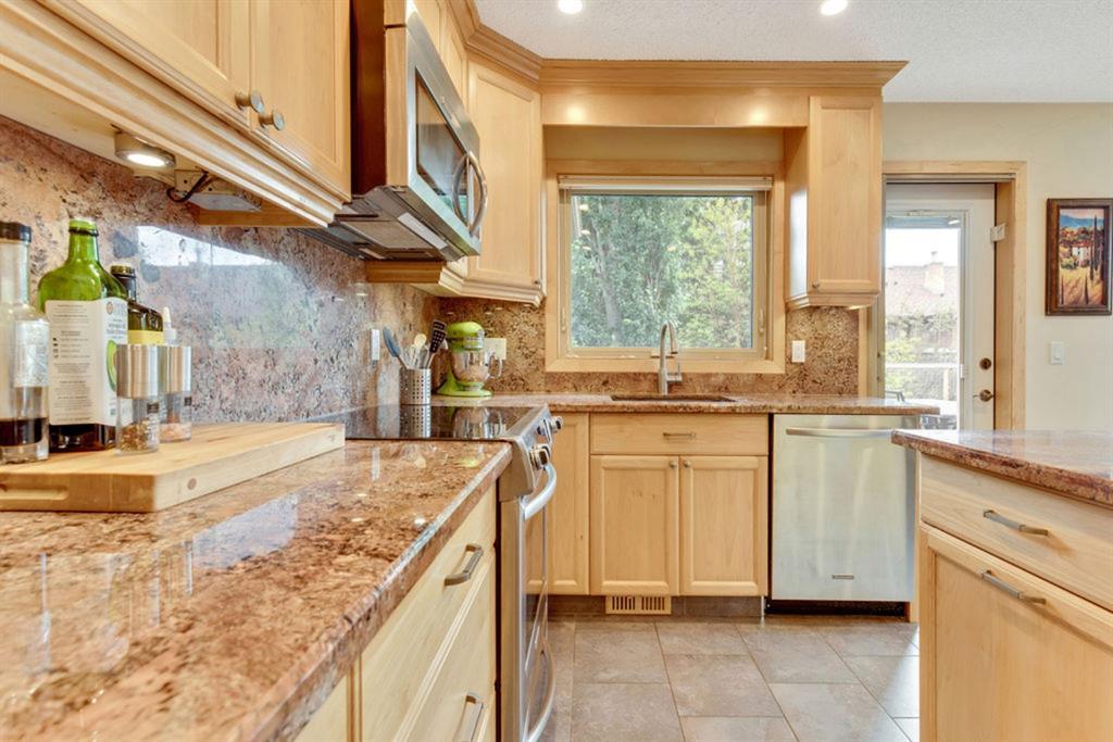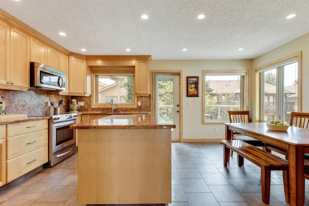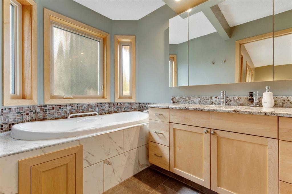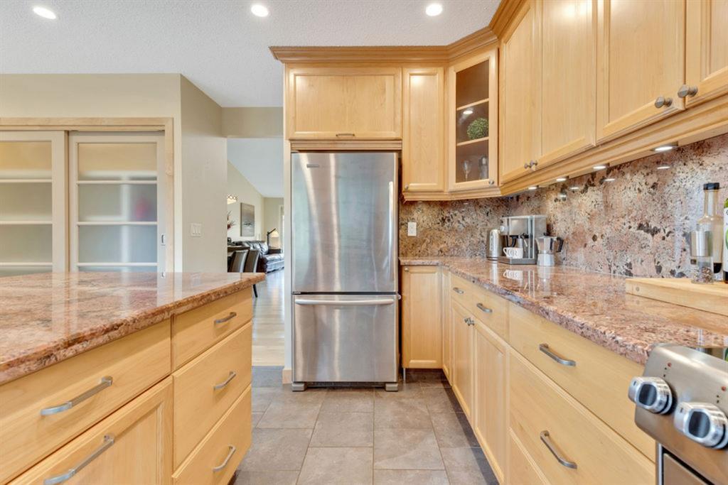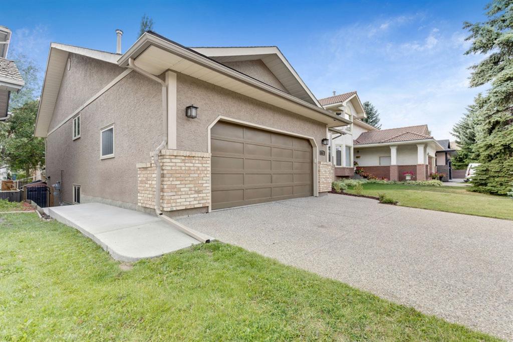 Outstanding air conditioned, walkout bungalow, fully finished, located on a very desirable culdesac in an exclusive estate community known as Canterbury Court Estates. This home saw a massive renovation about 5 years ago, and it is still looking like new! This home will impress upon entry with its vaulted ceilings, sky lights, triple pane windows, and beautiful light oak hardwood floors. The kitchen is lovely, with top grade granite countertops, beautiful appliances, and cabinetry to the ceiling. Any chef will enjoy spending time here. The deck off of the dining nook is very spacious, it has the nicest circular staircase down to the yard level, and southern exposure for ultimate natural light. The incredibly spacious master bedroom is fit for the king and the queen. The walk in closet has custom built in shelving (as do all closets), and the ensuite renovation, complete with jacuzzi tub, is sure to wow you. This level is complete with an additional good sized bedroom, another full bathroom, and den perfect for a home office. The lower walkout level is flooded with natural light from large windows. Every square foot of this level is being used efficiently. There is a stunning gas fireplace with a stone feature wall in the lower level living room. This basement seems to go on and on with 2 massive bedrooms, a full bathroom, 2 storage rooms (one functions as a cold room), a workshop/hobby room, space for a home gym, a laundry chute to the laundry room, high efficiency furnace, and of course a door directly to the mature rear yard. Out back you will find a nice sized yard that also has endless potential for those wanting to create something special for themselves, or leave as is for very little maintenance. The yard has 2 storage sheds, and poured concrete sidewalks running to the front of the home up the side. Top this all off with a spacious double attached, heated garage, and an exposed aggregate driveway. Walking distance to excellent K-12 schools, and a short bi e ride to Fish Creek Provincial Park, this home really needs nothing except for a new owner to love it! Quick possession available. (id:22211)