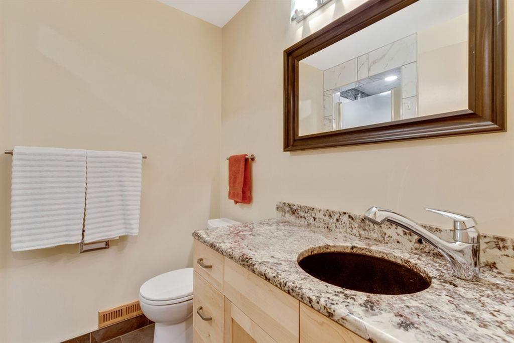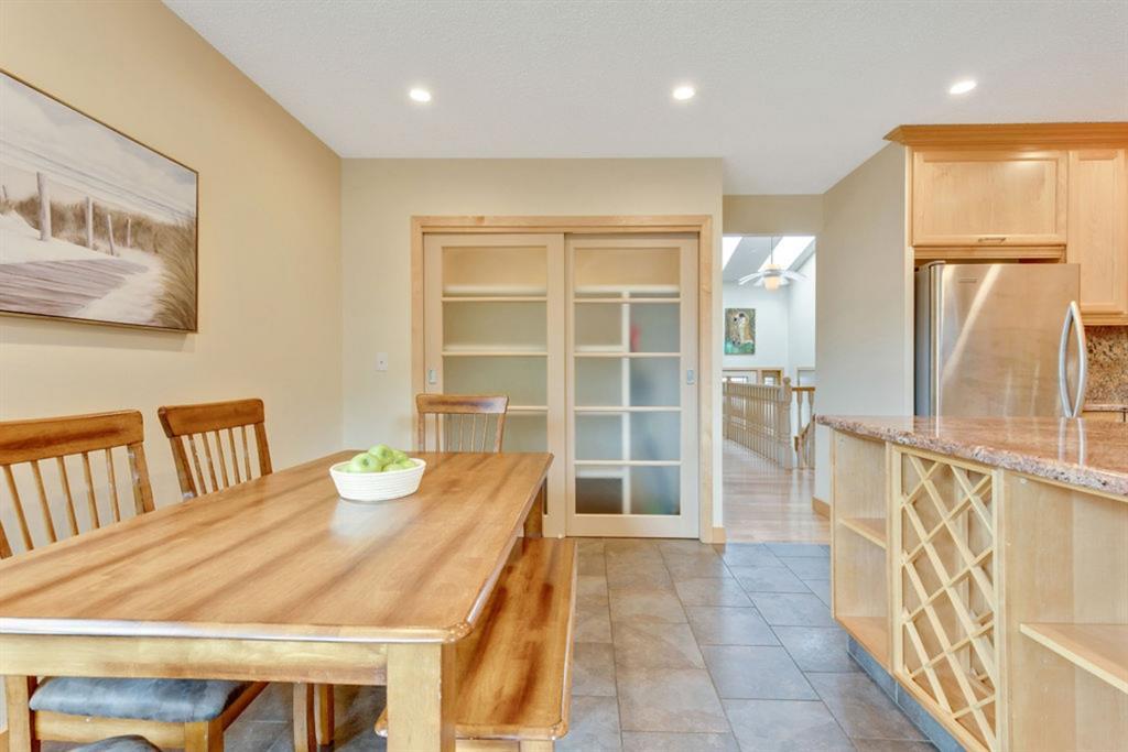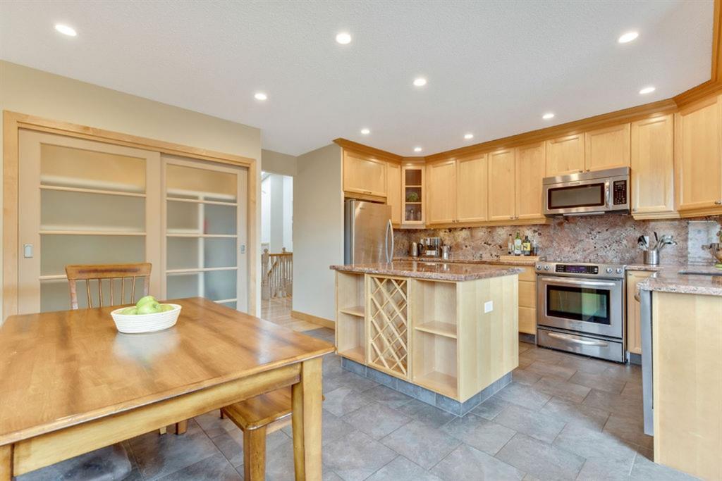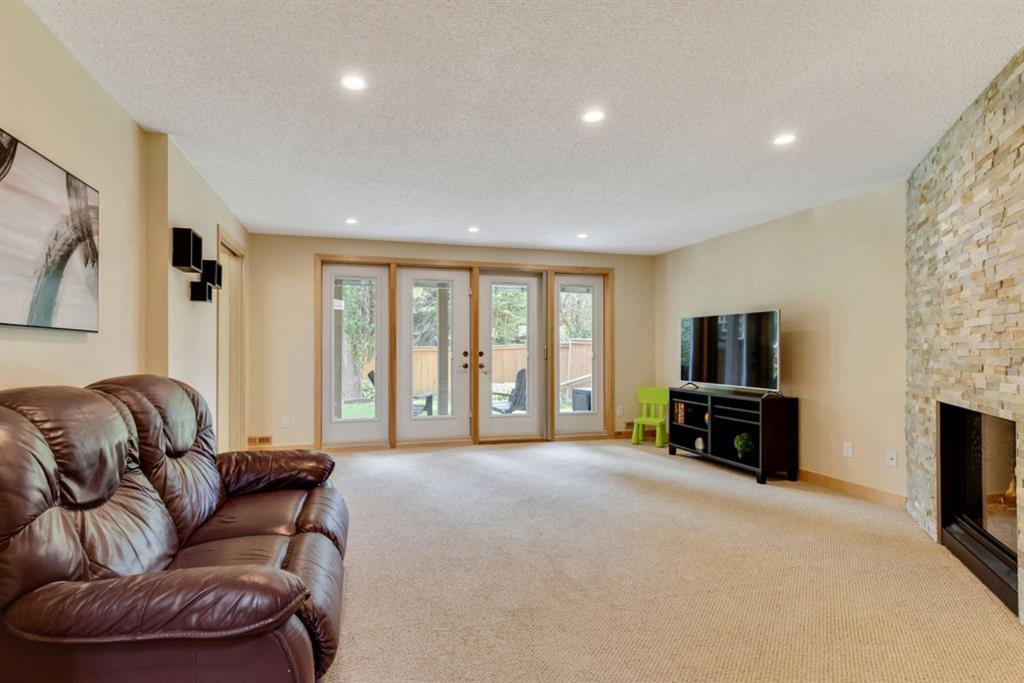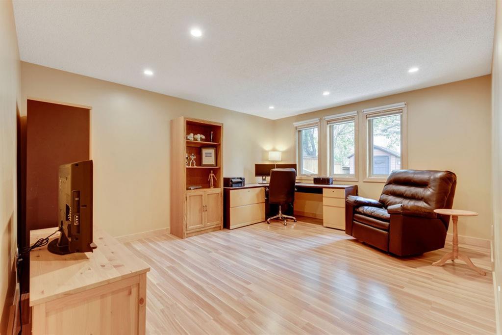 Outstanding air conditioned, walkout bungalow, fully finished, located on a very desirable culdesac in an exclusive estate community known as Canterbury Court Estates. This home saw a massive renovation about 5 years ago, and it is still looking like new! This home will impress upon entry with its vaulted ceilings, sky lights, triple pane windows, and beautiful light oak hardwood floors. The kitchen is lovely, with top grade granite countertops, beautiful appliances, and cabinetry to the ceiling. Any chef will enjoy spending time here. The deck off of the dining nook is very spacious, it has the nicest circular staircase down to the yard level, and southern exposure for ultimate natural light. The incredibly spacious master bedroom is fit for the king and the queen. The walk in closet has custom built in shelving (as do all closets), and the ensuite renovation, complete with jacuzzi tub, is sure to wow you. This level is complete with an additional good sized bedroom, another full bathroom, and den perfect for a home office. The lower walkout level is flooded with natural light from large windows. Every square foot of this level is being used efficiently. There is a stunning gas fireplace with a stone feature wall in the lower level living room. This basement seems to go on and on with 2 massive bedrooms, a full bathroom, 2 storage rooms (one functions as a cold room), a workshop/hobby room, space for a home gym, a laundry chute to the laundry room, high efficiency furnace, and of course a door directly to the mature rear yard. Out back you will find a nice sized yard that also has endless potential for those wanting to create something special for themselves, or leave as is for very little maintenance. The yard has 2 storage sheds, and poured concrete sidewalks running to the front of the home up the side. Top this all off with a spacious double attached, heated garage, and an exposed aggregate driveway. Walking distance to excellent K-12 schools, and a short bi e ride to Fish Creek Provincial Park, this home really needs nothing except for a new owner to love it! Quick possession available. (id:22211)