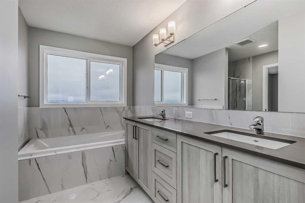 The Newbrook model Excel homes features, a LEGAL WALKOUT BASEMENT SUITE, and the unique exterior is a show stopper. Modern and functional in design and elevated with contemporary finishings that complement luxury living. This home is flooded by natural light and beautiful finishings throughout. Welcome to the home of your dreams! This beautiful excel-built home is located in the most sought-after part of Livingston! If it is ample square footage and beautiful private views that you are looking for, then look no further! Inside, you will discover a bright and spacious living room/dining room that is perfect for entertaining your guests and that is complemented by Chef's DREAM Kitchen with Upgraded stainless steel appliances, quitze counters, upgraded soft close full height cabinetry, chimney style hood-fan and a built-in Microwave PLUS you will LOVE your new SPICE KITCHEN!, spacious living room. The floor plan is so functional, with a tucked-away flex room, loads of room, and great flow throughout.. The 4 bedrooms plus bonus room on the upper level is perfect for family living with plenty of room for everyone! the spacious primary bedroom has 5 PC ensuite and large walk-in closets. The other 3 bedrooms are all a great size, TWO ENSUITE, and share a 4-piece bath. There is a good-sized laundry room tucked off of the bonus room. This amazing home has been custom-built with a LEGALLY SUITED BASEMENT! This two-bedroom open-concept legal suite boasts stainless steel appliances, quitze counters, tile, and carpeted flooring, and its own separate laundry. This LEGAL suite is registered with the City and has everything a legal suite requires like a separate furnace and water tank. Enjoy! Other things to note about this incredible home; are the ALBERTA NEW HOME WARRANTY, Gas line for the BBQ on your newly built deck, upgraded pot lights throughout the entire home,It is truly a must see property! View the virtual tour or schedule your private showing today. (id:22211)