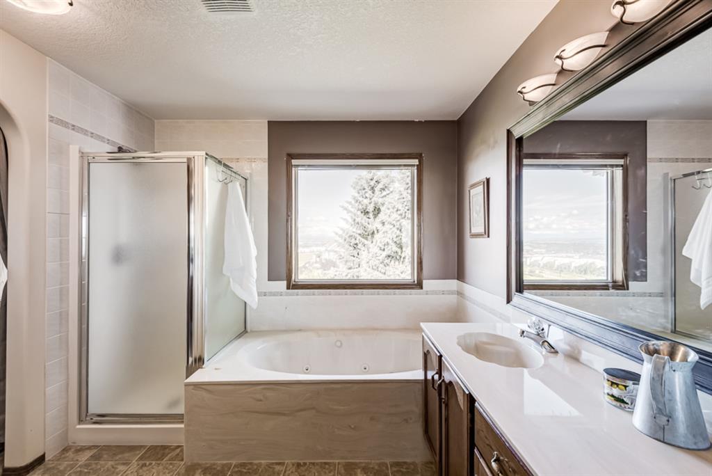 PANORAMIC MOUNTAIN VIEWS| BACKING ONTO GREEN SPACE | FULLY FINISHED WALKOUT BASEMENT| METICULOUS CONDITION| PIE SHAPED LOT & OVER 3500 SF of living space. Welcome home to this stunning 2 storey located in a QUIET cul-de-sac that is in pristine condition with views from every level. As you enter you are welcomed with a grand entrance, vaulted ceilings and gleaming hardwood. The main floor features a front family room, secondary living room, formal dining room and main floor office. The kitchen has BRAND NEW appliances, granite countertops and a large breakfast nook that opens up to your upper deck. A few NOTEWORTHY FEATURES INCLUDE: Epoxy flooring in garage w/ built-ins galore, hot/cold water, LED lighting, hot tub included, wet bar in the basement, NEW roof with 30lb paper (the best underlay around), updated cedar board siding and SAFETY glass windows. The lower level is your PERFECT space for entertaining guests with an abundance of windows & natural light, but added bonus with BLACK out window coverings to convert your basement into a home theatre. The fully equipped wet bar also features granite and tile backsplash. You can change a lot of things in a home but you can never change the location, this home is an absolute MUST SEE. (id:22211)