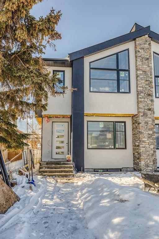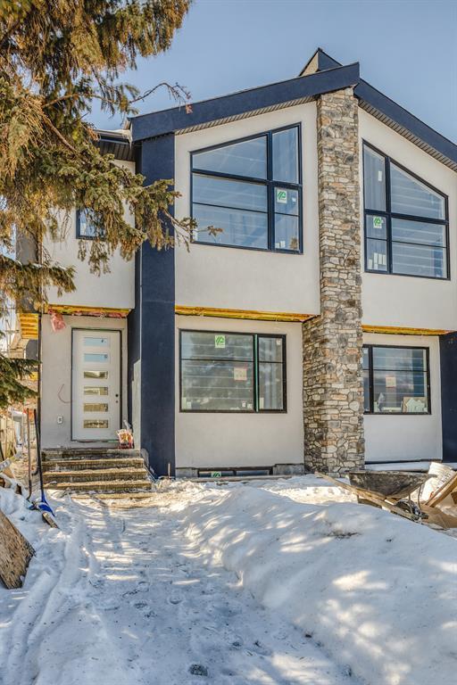 STUNNING CURB APPEAL | WEST BACK YARD | 15’ VAULT IN PRIMARY SUITE | Inspired by an A-frame design this luxurious infill has stunning curb appeal. You will be impressed with over 2,600 sq ft of extensively upgraded living space, offering 9’ ceilings on all levels, engineered hardwood floors, glass railings, custom built-ins throughout and 15’ vaulted ceiling in the master bedroom with 2 storey windows. On the main floor you will enjoy a mud room and half bath at the back of the house, a gas fireplace in the living room with custom built-ins, to the ceiling custom kitchen cabinetry with soft close doors, top of the line stainless steel appliance package with electric cook top, built-in wall oven and microwave, chimney hood fan and a 12’ island with beverage fridge. The upper level boasts a laundry room with laundry sink, 3 bedrooms including a king-sized primary suite with two storey windows, 15’ vaulted ceilings and large walk-in closet. The beautifully designed ensuite features heated floors, a soaker tub, fully tiled walk-in steam shower and skylight. The lower-level finishes off this well-rounded property with a fourth bedroom, full bathroom, wet bar and rec area. Perfectly located around the corner from the Calgary Arts Academy School, down the street from Westbrook Mall and only 750 m to the C-train station. Rosscarrock is a sought-after inner-city neighbourhood, only 5 mins to downtown and offers many amenities including elementary and Jr. High schools, restaurants and shopping. **Measurements are taken from blueprints** (id:22211)
