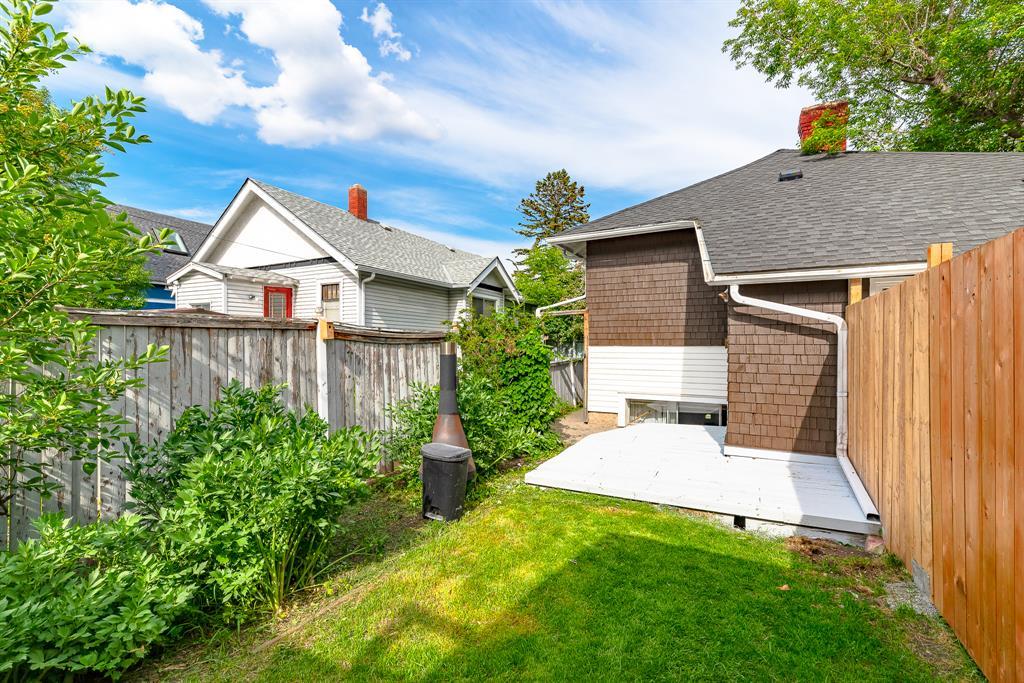 Inner City beauty! Must see charming bungalow located on a quiet street within walking distance to Shopping, Bus, Schools, Parks, Sait and minutes from DT! Newly updated with fresh exterior paint, newer roof/brand new roof on garage, mostly new windows, this home features 9ft ceilings on main floor with newer LVP throughout, good sized 2 bedrooms, bathroom with updated tub/tile surrounding and washer/dryer. Wood burning fireplace with white bricks increases character. Painted cabinets in bright kitchen with 2 windows at the back side and steps to a patio door with access to the back deck and double car garage. Basement suite (illegal) has totally separate entrance, private yard, front deck and parking pad. It features 2 bedrooms with egress windows, kitchen, laundry room(storage) and a newly built 4pcs washroom. Lease in place till Feb 2024. Buyer must assume the existing tenant. Other upgrades including a brand new HWT, some new fence and new washer/dryer (basement set). Huge potential of this R-C2 lot (size 37.5' X 110' ) to use as a holding property and built in the future! (id:22211)