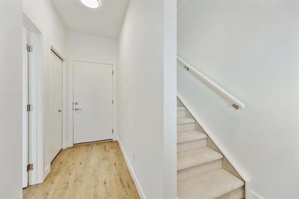 New TRUMAN Townhome in the sought after community of Carrington with easy access to Stoney Trail, nearby Playgrounds, Pathways and Shopping. This 3 Bedroom + Den, 2.5 bathroom home features the highest in fit and finish! Features include vinyl plank flooring throughout the living area, high ceilings, gourmet kitchen will full height cabinetry with soft close doors and drawers, stainless steel appliance package including range, fridge with water and ice dispenser, dishwasher, eat up bar highlighted by quartz countertops. The primary bedroom features a 4pc ensuite and walk in closet, two additional bedrooms, 4 pc main bathroom and upper floor laundry. This bright and airy TRUMAN home is Move in Ready. Live better. Live Truman. (id:22211)