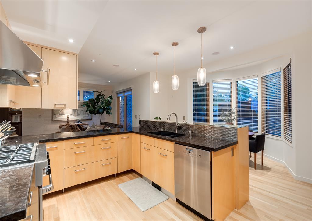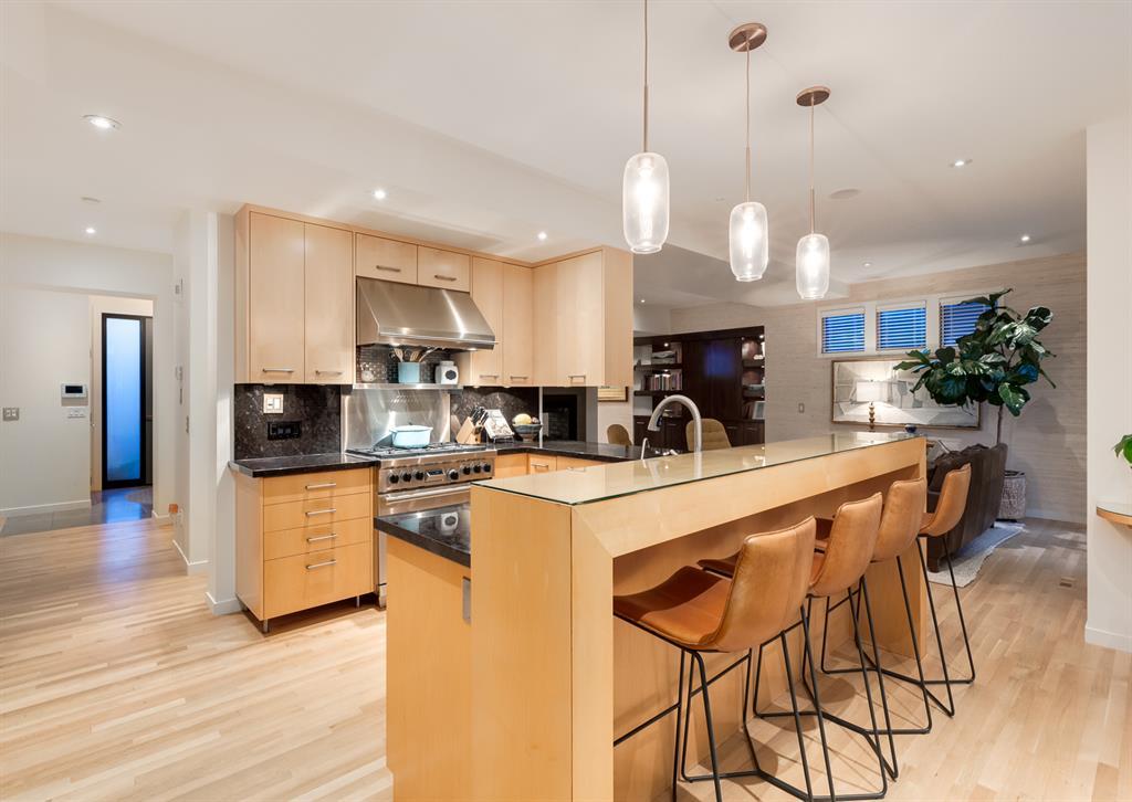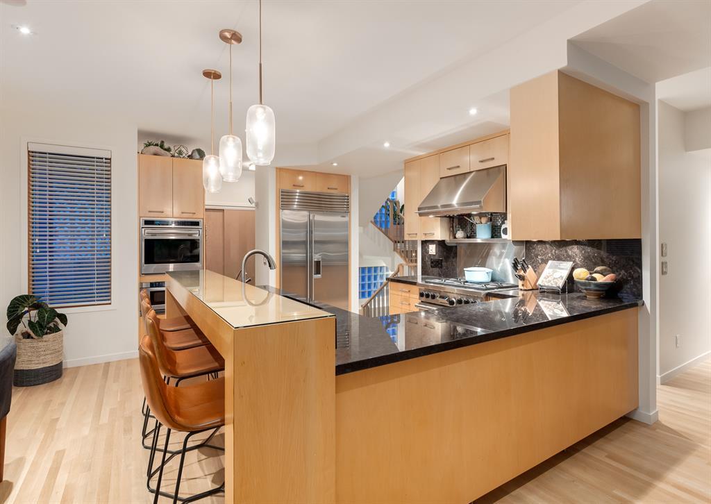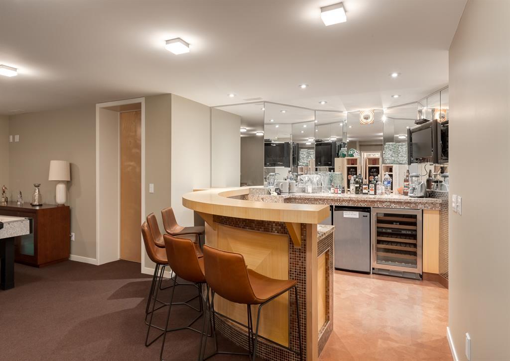 Welcome to this stunning residence, a true gem in highly sought after neighbourhood of Briar Hill. Built in 2005, this house has been meticulously maintained and updated throughout the years. The redone exterior boasts a combination of cedar wood siding, stucco, and concrete tile, giving the home a contemporary and modern look. From the moment you step inside through the truly impressive front door, you'll be captivated by the attention to detail and finishings and over 4,700 sq ft of developed space. The formal dining room is the ideal space for entertaining, with lots of natural light, highlighted by the two-way fireplace separating the dining room and living room. The living room is large and beautifully finished. The kitchen features a high-end appliance package (Sub Zero, Wolf and Miele) for all your cooking needs, with a dining nook overlooking the back yard. A butler’s pantry with wine fridge and front office completes the main floor. The incredible hardwood staircase goes from the basement to the third floor with in-stair lighting and gorgeous glass block windows allowing for natural light while maintaining privacy. The second floor features a large primary suite with a sitting area, ensuite and walk in closet. The ensuite is highlighted by a jetted bathtub, steam shower and double vanity. There are two additional bedrooms (one with ensuite), laundry and another full bathroom on the second floor. As you make your way up to the third floor, you will find a large bonus room with cork floors and an awesome roof top patio. The basement offers even more incredible features, including a bar area complete with 1 wine fridge, 2 bar fridges, and a dishwasher. Movie lovers will delight in the dedicated movie room, equipped with a projector and screen. There's also a full bathroom, additional bedroom, and huge cold storage room with wine shelving, perfect for storing your favourite vintages. The backyard is an entertainer's paradise, with a hug e deck finished with Italian tiles allowing for lots of entertaining space. A sport court and low maintenance turf lawn, perfect for enjoying outdoor activities. A triple oversized garage that is heated and insulated, is also finished with the cedar siding accents, is a rare find in the inner city. An ideal location on a tree-lined street, close to NW medical centres, University of Calgary and downtown. Walking distance to Briar Hill Elementary, Green Park, LRT and shopping. Don't miss this incredible opportunity to own a truly exceptional home. (id:22211)