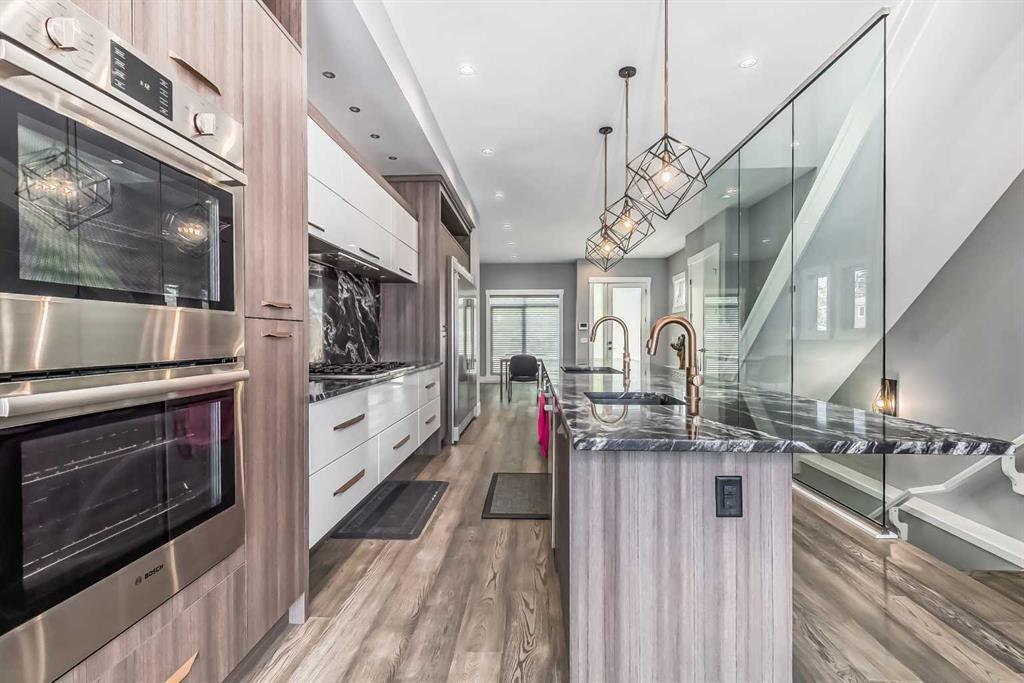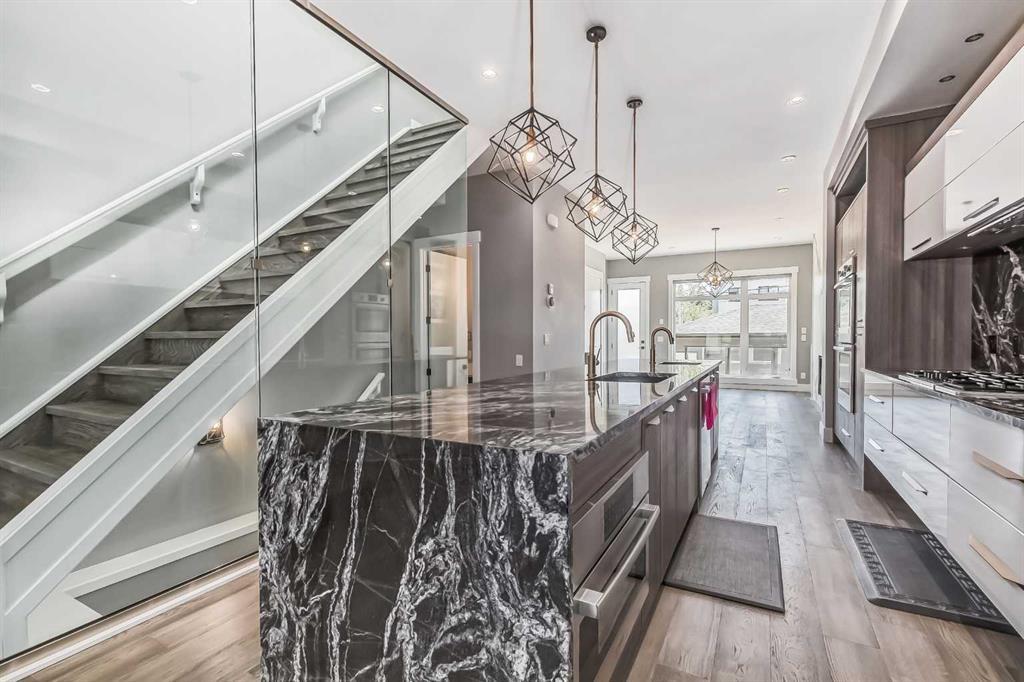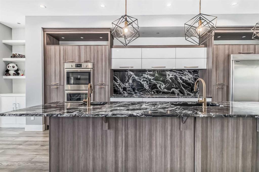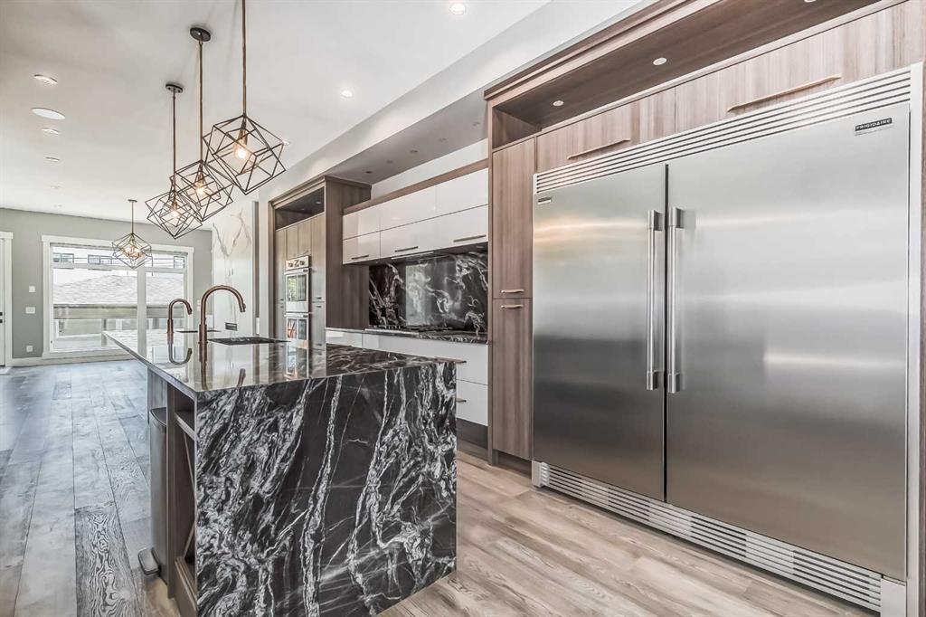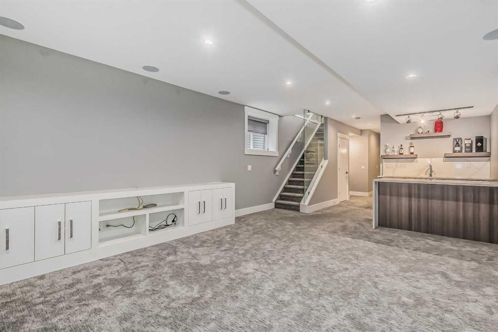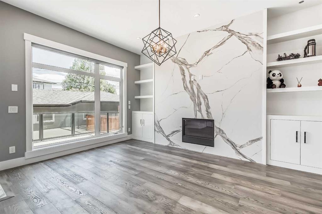 Welcome to this luxurious detached home that boasts nearly 3000 SQ/FT of modern living space in Shaganappi, one of Calgary’s most desired inner-city communities! Situated on a quiet street, a great community with friendly neighbors, this elegantly styled home is 5-minute walk to Shaganappi Point LRT station, golf course, parks, top-ranked schools, and more! Quick access to all major roadways, the mountains, & a short commute to UC and downtown Calgary! The open main floor allows for great sight lines beginning and ending with huge windows flooding the space with natural light. Walk in to a spacious entry area, dining room, and large kitchen featuring 17 ft Granite island steel Appliances and tasteful cabinetry. Beyond you'll find a lovely sitting area and wet bar graced with a linear gas fireplace finished with luxurious floor-to-ceiling tile slabs. Loaded with all the luxury features you would expect including designer lighting and plumbing fixtures, luxury hardwood on both the main and upstairs, custom staircase with glass railing, 8' doors and 10ft ceilings throughout, In ceiling speakers with SMART Home capability, security, and Keyless Entry. The upstairs has 3 bedrooms including the master suite with fireplace, walk-in closet, and spa inspired ensuite with jetted tub, double sinks, and steam shower, vaulted ceilings, and heated tile floor. The second bedroom has its own balcony. The well-designed floor plan also has upstairs laundry and lots of natural light. Basement has a theater room with built-in wet bar area. Large lower bedroom and full washroom. Great curb appeal, CENTRAL A/C and double garage finish the package. This home is an incredible value and won't last long! *3D TOUR AVAILABLE * (id:22211)