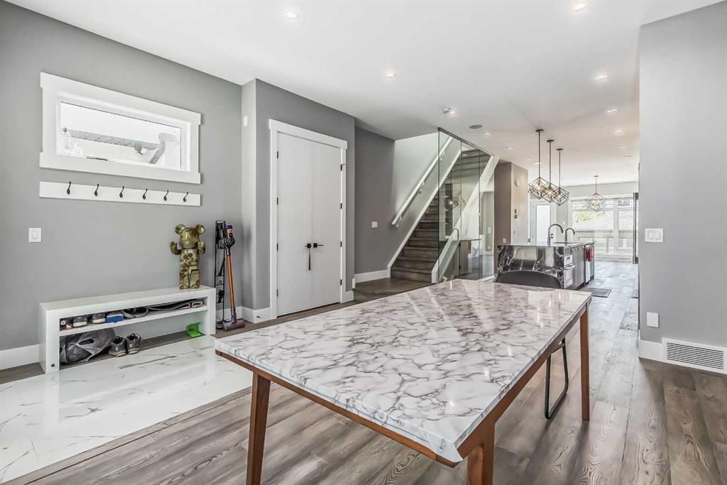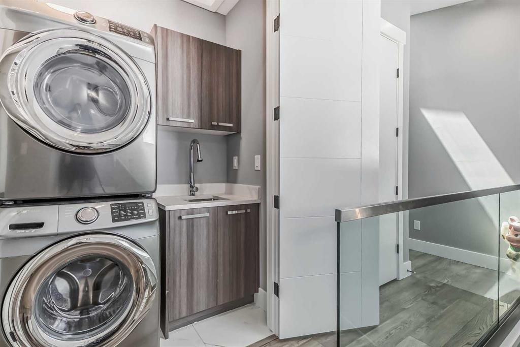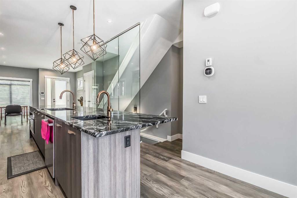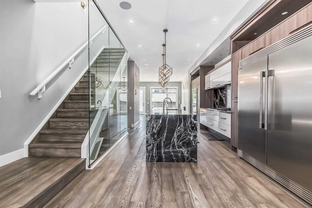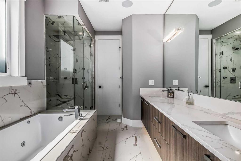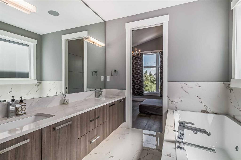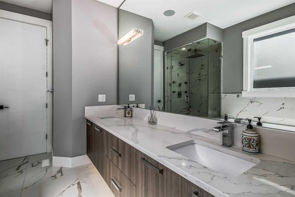 Welcome to this luxurious detached home that boasts nearly 3000 SQ/FT of modern living space in Shaganappi, one of Calgary’s most desired inner-city communities! Situated on a quiet street, a great community with friendly neighbors, this elegantly styled home is 5-minute walk to Shaganappi Point LRT station, golf course, parks, top-ranked schools, and more! Quick access to all major roadways, the mountains, & a short commute to UC and downtown Calgary! The open main floor allows for great sight lines beginning and ending with huge windows flooding the space with natural light. Walk in to a spacious entry area, dining room, and large kitchen featuring 17 ft Granite island steel Appliances and tasteful cabinetry. Beyond you'll find a lovely sitting area and wet bar graced with a linear gas fireplace finished with luxurious floor-to-ceiling tile slabs. Loaded with all the luxury features you would expect including designer lighting and plumbing fixtures, luxury hardwood on both the main and upstairs, custom staircase with glass railing, 8' doors and 10ft ceilings throughout, In ceiling speakers with SMART Home capability, security, and Keyless Entry. The upstairs has 3 bedrooms including the master suite with fireplace, walk-in closet, and spa inspired ensuite with jetted tub, double sinks, and steam shower, vaulted ceilings, and heated tile floor. The second bedroom has its own balcony. The well-designed floor plan also has upstairs laundry and lots of natural light. Basement has a theater room with built-in wet bar area. Large lower bedroom and full washroom. Great curb appeal, CENTRAL A/C and double garage finish the package. This home is an incredible value and won't last long! *3D TOUR AVAILABLE * (id:22211)