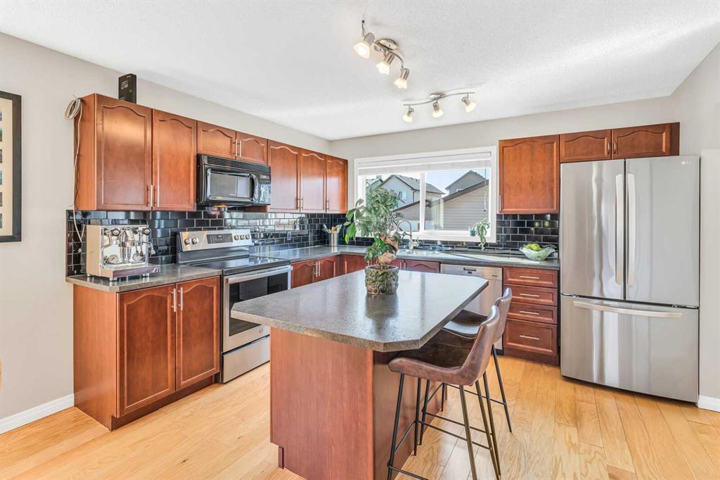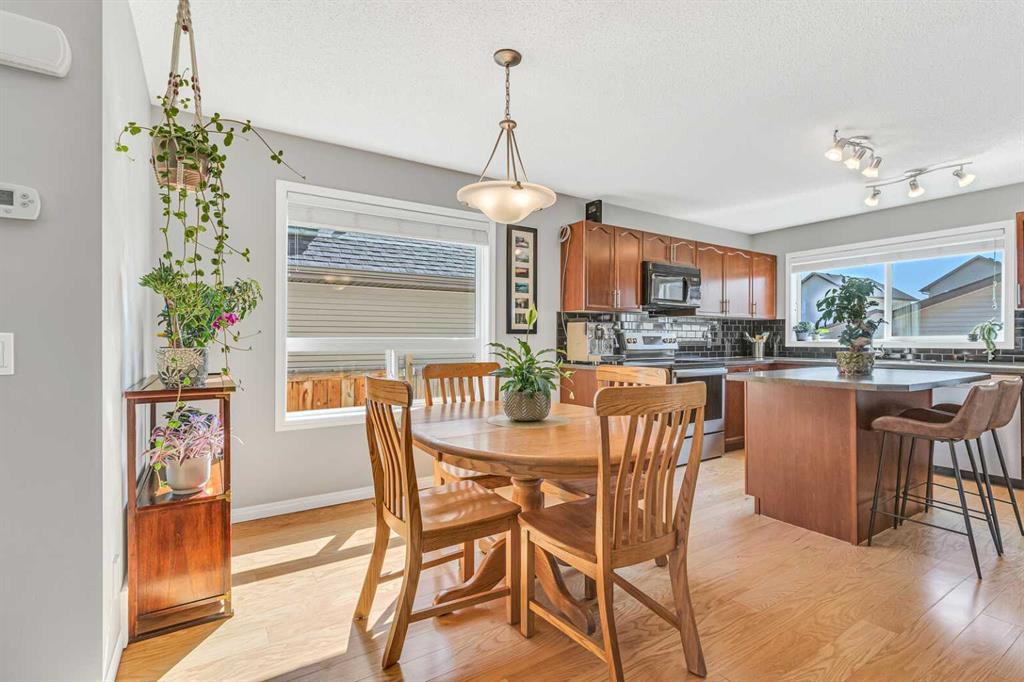 Step into this meticulously maintained two-story residence nestled within the Silverado community. Whether you’re enjoying the warm summer evenings from your charming veranda or inside on the couch with a blanket with the central AC cranked, this home has something for everyone! As you enter, you'll be greeted by the spacious open floor plan adorned with newer wide plank engineered hardwood flooring. The living room boasts a cozy gas fireplace and seamlessly connects to the kitchen and dining area. Abundant cabinet and countertop space characterize the kitchen, which also boasts a generously sized central island. Newer (2021+) stainless steel appliances include fridge, stove and dishwasher. The main floor also accommodates a powder room and provides space for a desk. Upstairs you’ll find the primary bedroom with walk-in closet and 4 piece ensuite. Two additional bedrooms and another 4-piece bathroom complete the top floor. . The professionally finished basement offers a comfortable and durable cork floor, a well-proportioned bedroom, a family room, a 3-piece bathroom, and a laundry area.Outside, the south-facing backyard beckons with a spacious deck and low-maintenance/xeriscaped landscaping, perfect for enjoying fireside evenings. The oversized double garage includes a “texas basement” AKA a lofted storage area accessible by ladder. Enjoy leisurely strolls around the nearby ponds and pathways. With city transit, shopping, and parks in close proximity, this ideal family home is not to be missed. Schedule your private viewing today, as this opportunity won't last long. Shingles replaced 2022. (id:22211)