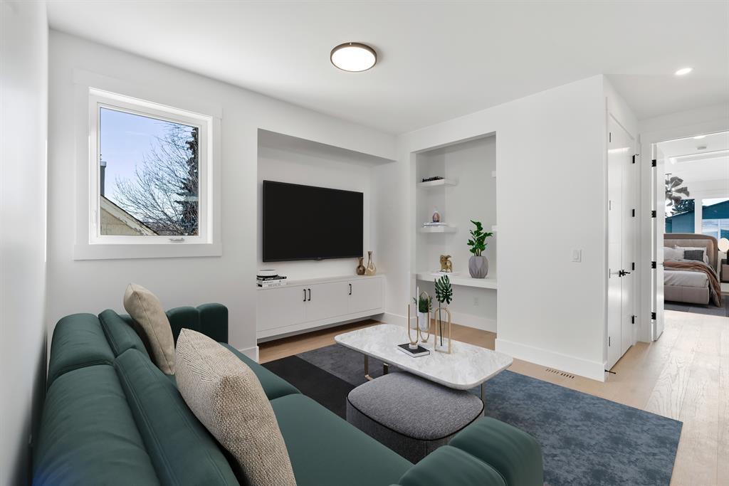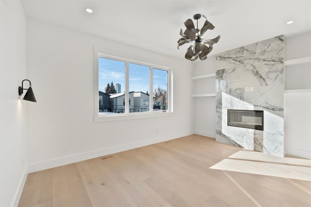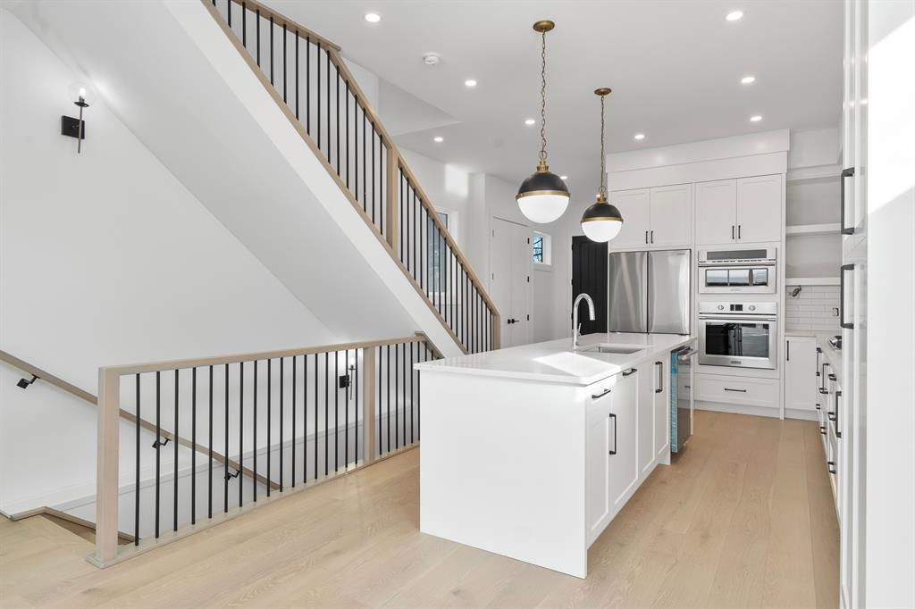 Ready to move-in & available for quick possession.* Watch the video* Gorgeous home! Luxury living at its finest. A brand new fantastic show stopper in the heart of Shaganappi is ready for its new home owners. Welcome to 1433 26A Street featuring almost 2800 SQUARE FEET of living space with modern design and high-end finishings that will leave you at a wow. EXCELLENT FINISHINGS | 4 BEDROOMS | MAIN FLOOR DEN/FLEX ROOM | SECOND FLOOR BONUS ROOM| 3.5 BATHROOMS | OPEN FLOOR PLAN | FULLY FINISHED BASEMENT| WEST BACKYARD | DOUBLE GARAGE. This gorgeous house located on a quiet street is a perfect home for all home buyers. The main floor features 10 feet ceilings and includes a den with floor to ceiling windows serving perfectly for your work from home station. A beautiful kitchen with top of the notch appliances including a 4 door fridge, quartz countertops with an elegant backsplash, cabinets to the ceilings, an extended 12 feet island with classy pendant lights, and a corner built-in pantry. Adjoining to the kitchen is the well appointed dining area followed by your spacious living room overlooking your west backyard with a full deck. Built-in features, pot lights, lovely lighting fixtures/chandeliers, fireplace with floor to ceiling tiles, extra windows, upgraded doors & trims are just among some of the value added features of the main floor. Walking upstairs (9 feet ceilings) you'll be welcomed by your BONUS ROOM with built-in space for your work desk or your kids study area. The master bedroom is a dream come true featuring a fireplace with floor to ceiling tiles, an astonishing spa-like ensuite, and a very spacious walk-in closet with custom shelves. 2 other spacious bedrooms with a shared bathroom and a laundry room completes this level. Need more space for your parties or movie nights or family gatherings? The fully finished basement (9 feet ceilings) includes a massive rec room with a wet bar, a nice size bedroom with a full bathroom for your guests. Exc ellent opportunity for all home buyers looking to live in Inner city Calgary. Great location with walking distance to the C-train station, schools, shopping, playgrounds, Walmart, restaurants, bars and much more. Come & fall in love with this beautiful home. (id:22211)