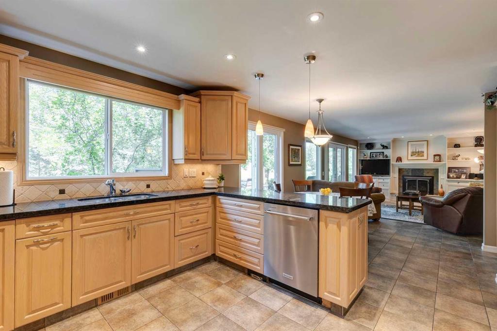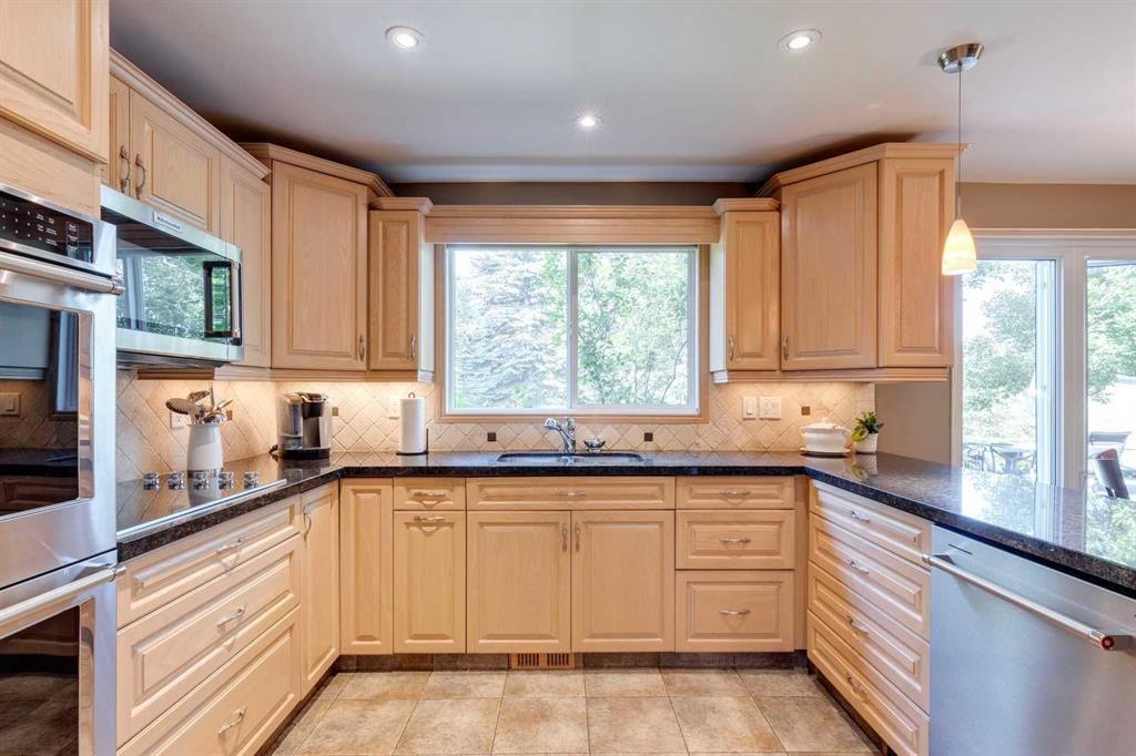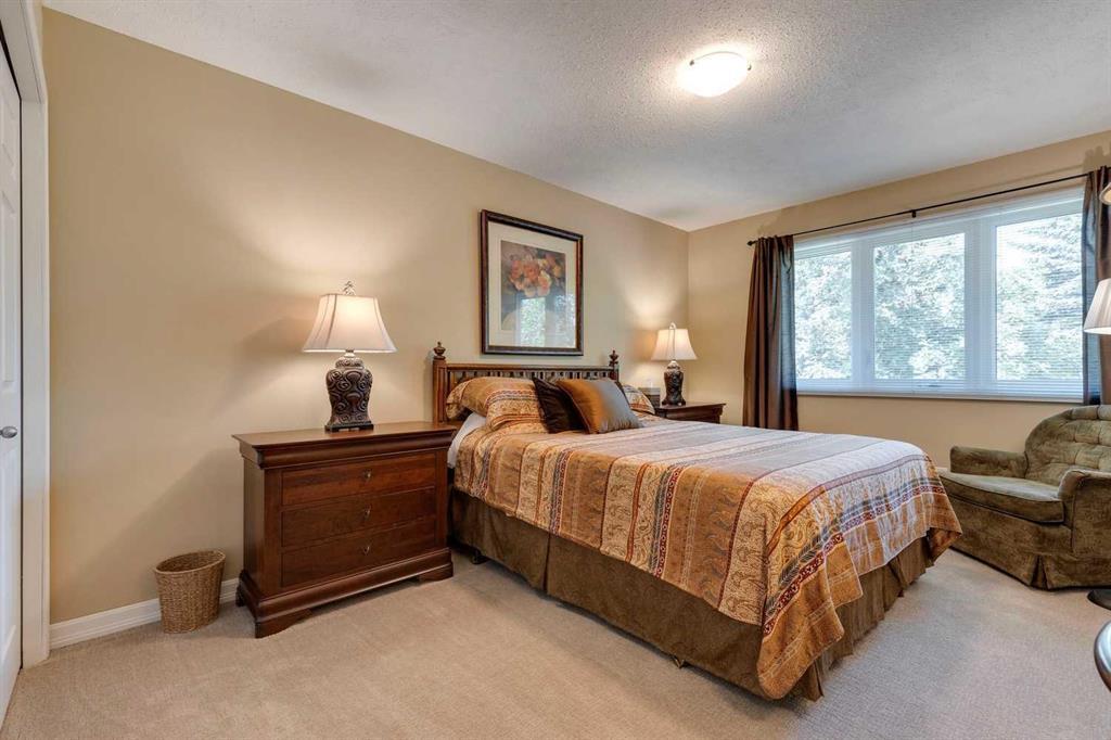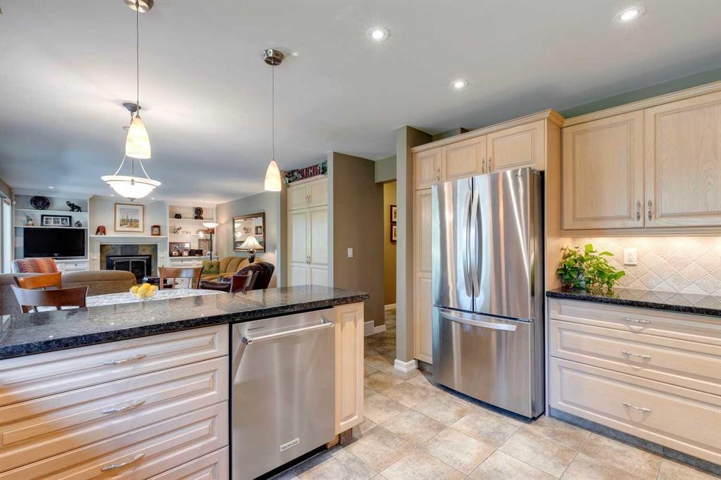 Rare offering in prestigious Varsity Estates NW located on one of the best lots - heavily treed and private -backing West onto an active waterfowl pond on the 12th hole of the Silver Springs Golf & Country Club. This 4 bedroom, 2.5 bath executive family home is meticulous and has undergone many tasteful updates and improvements over the years.The main floor features an open living and dining room with vaulted ceilings, providing an ideal space for hosting large gatherings. The gourmet kitchen is elegant and spacious, with granite countertops, and all new stainless steel appliances including double ovens. There is plenty of counter and cupboard space, and a large window over the sink to enjoy the beautiful views of the yard.Heated tile covers most of the main floor, adding to the comfort & practicality of the home. Spacious family room off the kitchen with built-in cabinets, a gas fireplace (discreetly wired for a big screen TV above it), and patio doors leading to the spectacular park-like backyard.The main floor also includes a large office space, a 2-piece powder room, and mudroom, which features storage cabinets and granite counter top. Additionally, there is a triple attached garage, providing ample space for vehicles and storage.Moving to the upper level, the master bedroom serves as a retreat with its own gas fireplace, patio doors opening to a private patio overlooking the picturesque yard, a generous 4-piece ensuite bathroom, and a massive walk-in closet. There are three other spacious bedrooms on this level, along with a 4-piece main bathroom with heated floors, soaker tub and a convenient adjoining laundry area.The basement is fully developed and features a recreation room and a massive storage area. The house has all new carpets and railings, offers triple-glazed windows throughout the majority of the home, as well as a rubber roof with a 50-year warranty. With no house beside you on the North side, the views of the waterfowl pond are unobst ructed, reinforcing how unique and valuable this location truly is. A protected dog run caters to pet owners. A new multi-tiered deck offers a place to enjoy your private oasis. There's a gas line for the BBQ & the irrigation system keeps the yard looking fantastic. This desirable location offers easy access to highly-rated schools, golf, Bowmont Park and off-leash area, Market Mall, Dalhousie Station, the University of Calgary, Alberta Children's Hospital, Foothills Hospital, and the LRT. (id:22211)