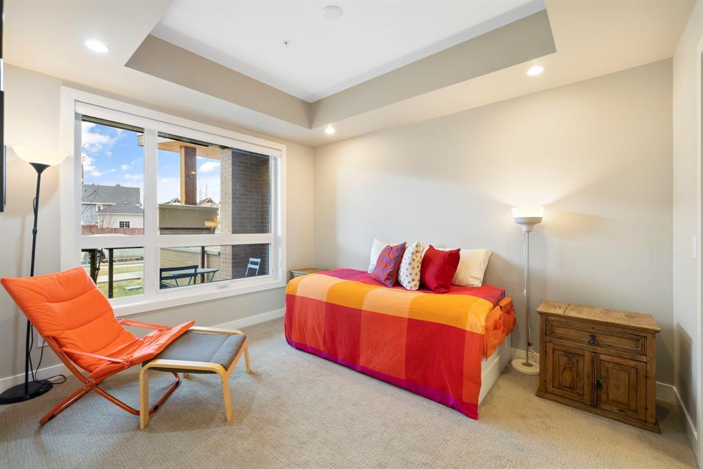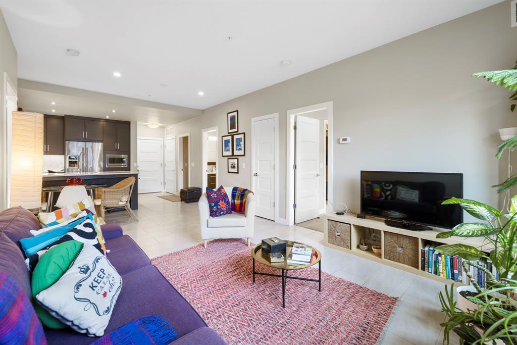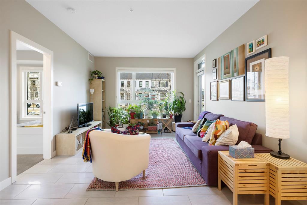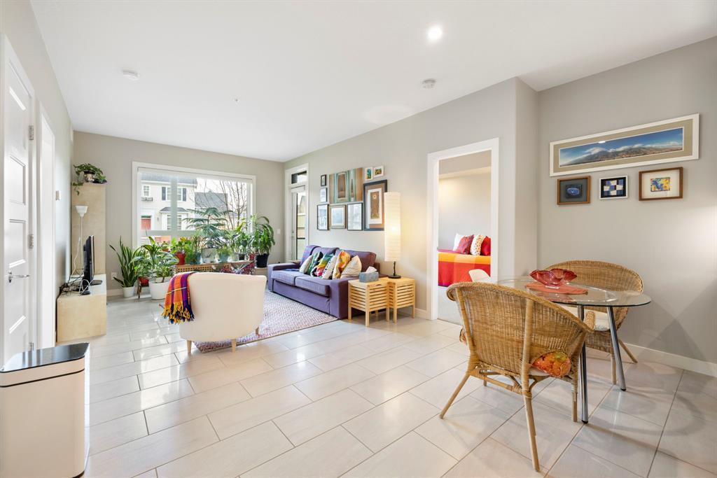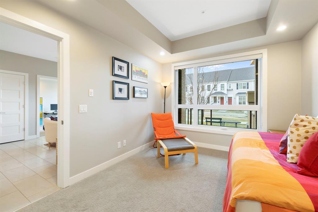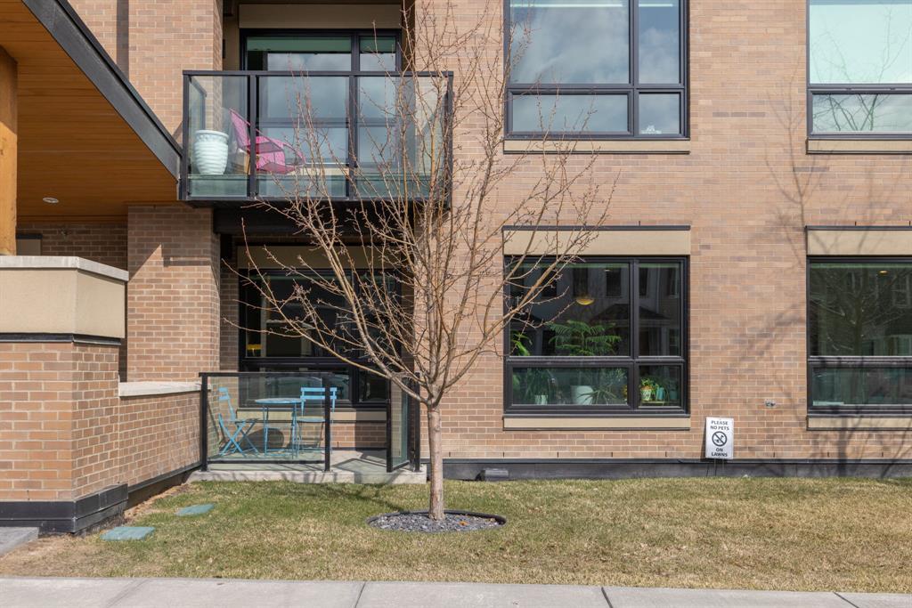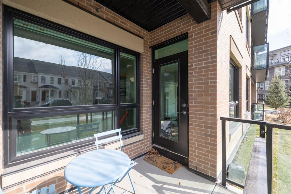 **OPEN HOUSE SUNDAY JUNE 25 FROM 11:00 AM-1:00 PM ** 2 Bedrooms + Den, Direct access to the exterior. (Townhouse style with the convenience of a condo). Located in the vibrant community of Currie Barracks in southwest Calgary, 115 - 145 Burma Star Road SW is a stunning and spacious condo unit that boasts a modern and luxurious living experience. With two full bedrooms, 2 bathrooms and an additional Den/office space. As you enter the unit, you'll be immediately struck by the open and airy feel of the space, with high ceilings and large windows that flood the interior with natural light. The living room is the perfect place to relax and unwind. The kitchen is a chef's dream, featuring high-end stainless-steel appliances, sleek quartz countertops, matching backsplash, and ample cabinet space. The primary bedroom is a true oasis, with a large window, recessed lighting, and a boxed-up ceiling detail. The ensuite bathroom features a large double vanity, and a separate tiled shower. The second bedroom is also spacious and comfortable, with easy access to a second full bathroom, with high end finishes to match and a walkthrough closet housing the in-suite laundry. Additional features, a private patio area with direct access to the front of the building, giving the unit a townhouse like feel (perfect for pet owners), Large storage unit and one underground parking stall. The building is located 7 minutes from downtown Calgary. The Armoury is an Adults only building (18+). Located just steps away from shopping, restaurants, and transit, 115, 145 Burma Star Road SW offers the perfect combination of luxury, comfort, and convenience. Don't miss out on this incredible opportunity to make this stunning condo your new home! (id:22211)
