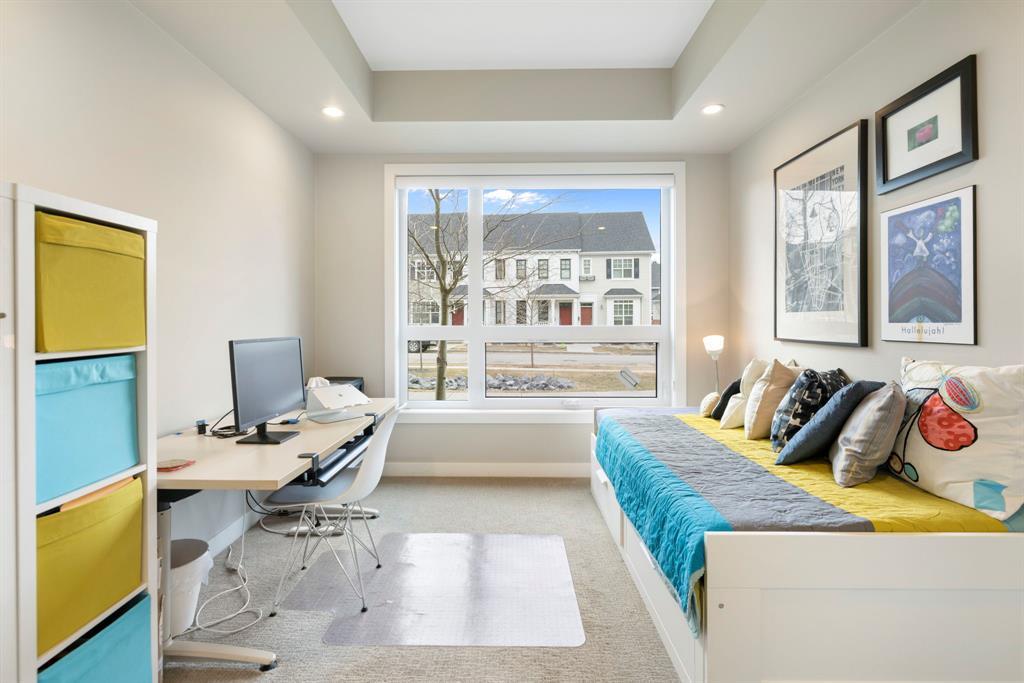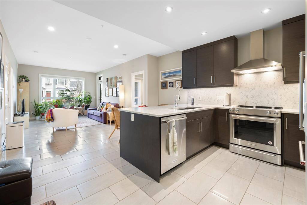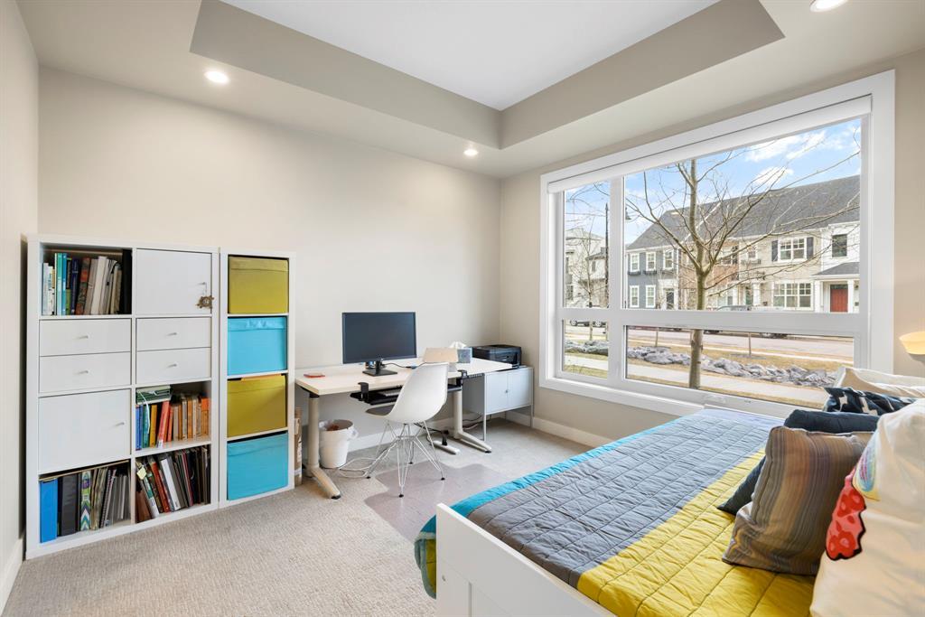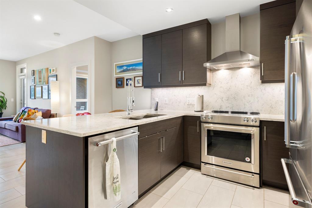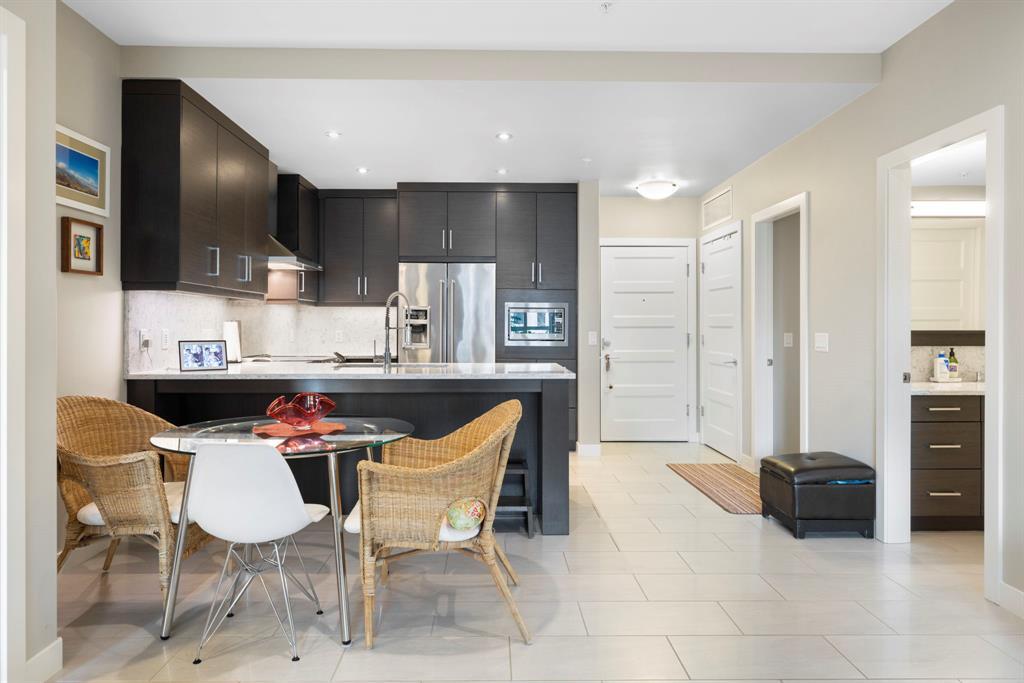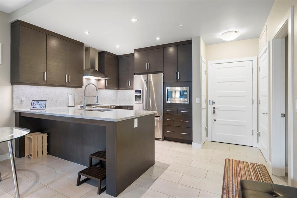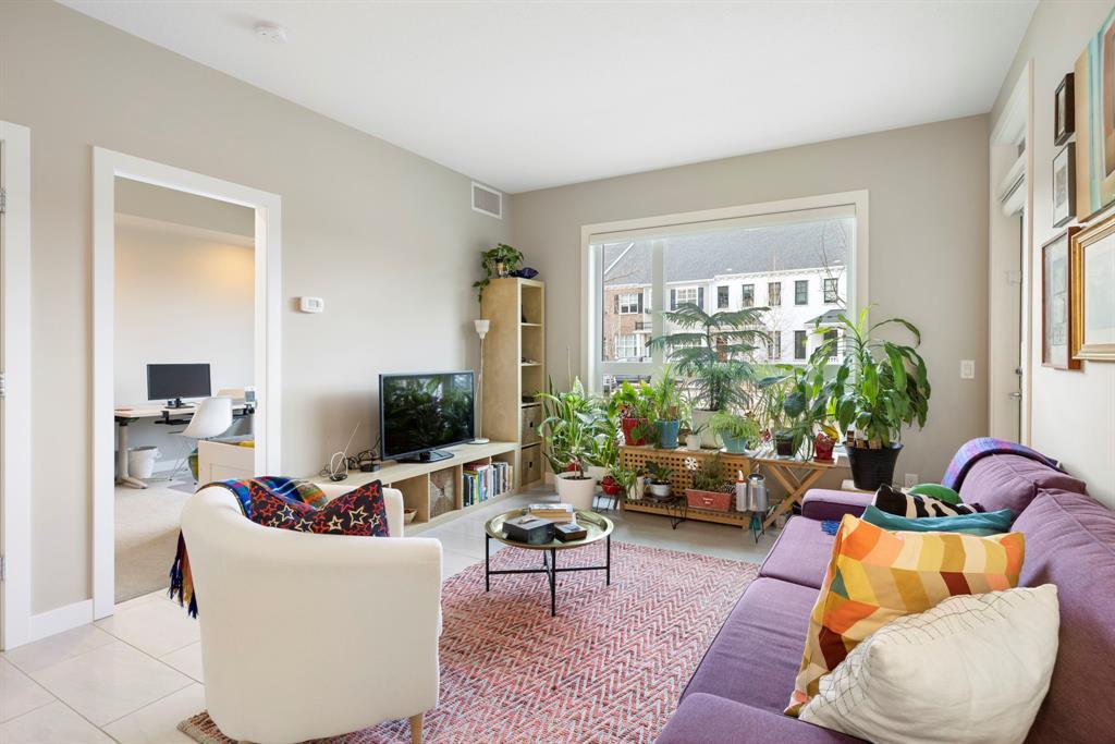 **OPEN HOUSE SUNDAY JUNE 25 FROM 11:00 AM-1:00 PM ** 2 Bedrooms + Den, Direct access to the exterior. (Townhouse style with the convenience of a condo). Located in the vibrant community of Currie Barracks in southwest Calgary, 115 - 145 Burma Star Road SW is a stunning and spacious condo unit that boasts a modern and luxurious living experience. With two full bedrooms, 2 bathrooms and an additional Den/office space. As you enter the unit, you'll be immediately struck by the open and airy feel of the space, with high ceilings and large windows that flood the interior with natural light. The living room is the perfect place to relax and unwind. The kitchen is a chef's dream, featuring high-end stainless-steel appliances, sleek quartz countertops, matching backsplash, and ample cabinet space. The primary bedroom is a true oasis, with a large window, recessed lighting, and a boxed-up ceiling detail. The ensuite bathroom features a large double vanity, and a separate tiled shower. The second bedroom is also spacious and comfortable, with easy access to a second full bathroom, with high end finishes to match and a walkthrough closet housing the in-suite laundry. Additional features, a private patio area with direct access to the front of the building, giving the unit a townhouse like feel (perfect for pet owners), Large storage unit and one underground parking stall. The building is located 7 minutes from downtown Calgary. The Armoury is an Adults only building (18+). Located just steps away from shopping, restaurants, and transit, 115, 145 Burma Star Road SW offers the perfect combination of luxury, comfort, and convenience. Don't miss out on this incredible opportunity to make this stunning condo your new home! (id:22211)