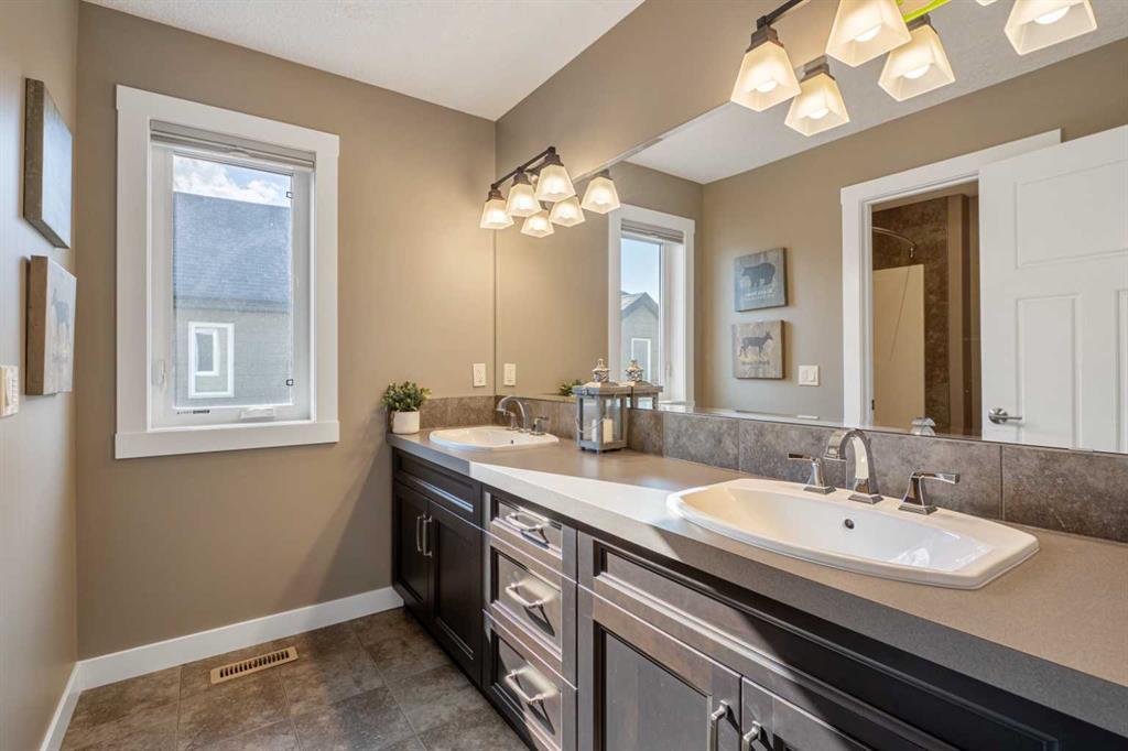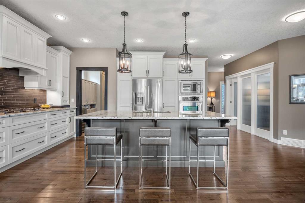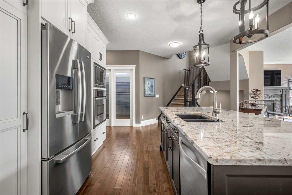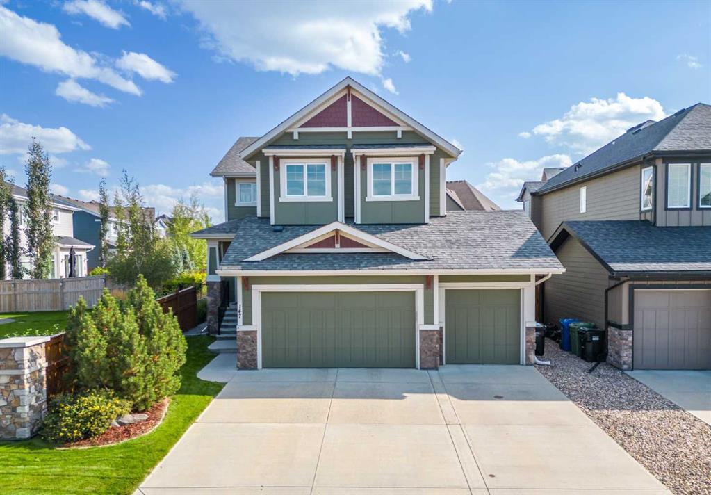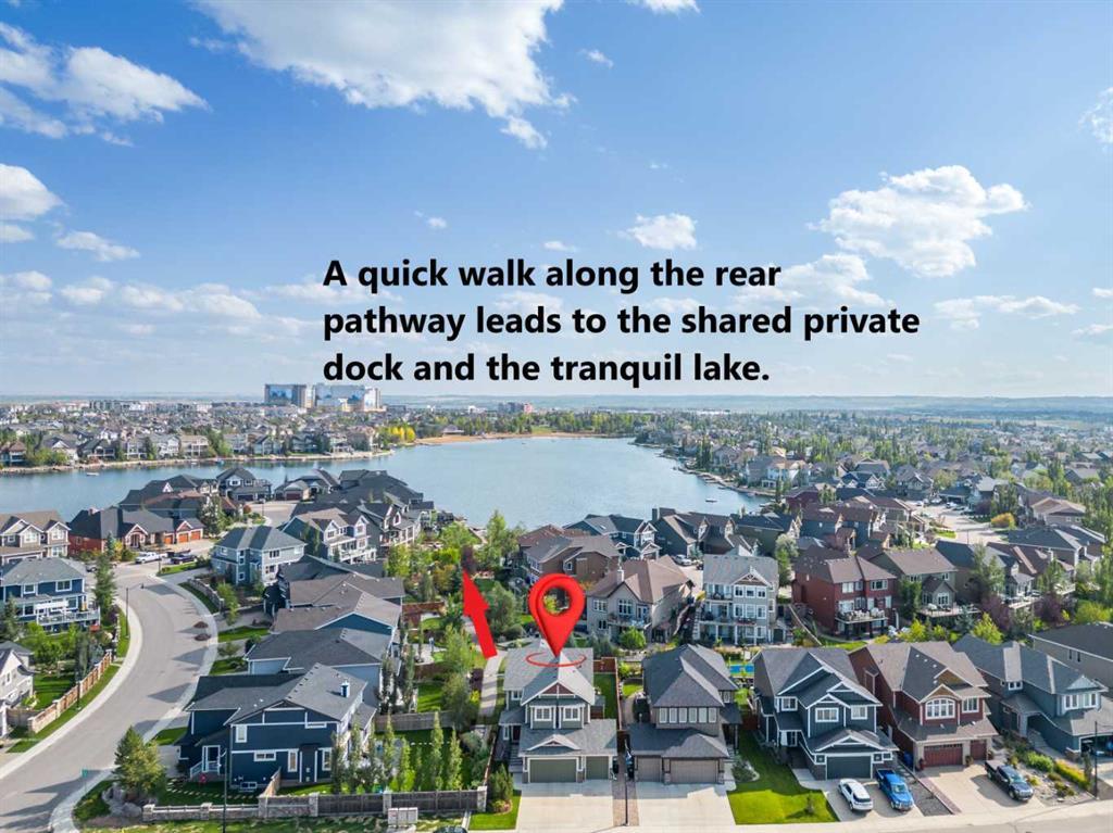 PRIVATE LAKE ACCESS | TRIPLE-CAR GARAGE | BASEMENT SUITE | SUNNY SOUTHERN YARD | 3D VIRTUAL TOUR AVAILABLE-Step inside this exquisitely crafted Albi Master Built home, a remarkable two-story family residence featuring 4 spacious bedrooms, a fully furnished basement with a suite, and an impressively designed living area spanning over 3950 square feet. This home effortlessly combines interior elegance with architectural finesse, nestled within the highly desirable Auburn Bay, a prestigious lakeside community. Upon entering through the grand front foyer and passing by the main floor den, you'll find yourself in the heart of the home. The open kitchen is an inviting space equipped with a 36" Dacor gas cooktop, stainless steel wall oven, granite countertops, and ample cabinetry, harmoniously merging with the dining and living areas. This area is destined to become the centrepiece of your new abode, a cherished space to share with friends and family. The expansive wall of windows in this area provides a breathtaking view of your beautifully landscaped, sun-drenched southern yard. A practical mudroom greets you as you enter from the generously sized finished triple-car garage, offering plenty of convenient storage solutions. The interior design is well-thought-out, featuring three spacious bedrooms on the upper level, well-appointed 4-piece bathroom, an upper-level laundry room seamlessly connected to the primary walk-in closet, and a generously-sized bonus room. The primary bedroom ensuite exudes a spa-like ambiance with dual sinks, a luxurious soaker tub, and an expansive walk-in shower. The lower level presents a basement suite with a fully equipped kitchen, ideal for accommodating loved ones or guests. Additionally, you'll find a family room space perfect for movie nights, a fourth bedroom, 2nd Laundry area and a full bathroom. Luxury features abound, including James Hardy Board Siding, designer light fixtures, 9-foot ceilings on the main floor, engineered hardwood flo ors, and central air conditioning. Your family will relish the convenience of being moments away from evening strolls and afternoon gatherings at the year-round lake. Ideally situated on a spacious lot, the meticulously landscaped yard provides the perfect backdrop for hosting gatherings with friends and family. If the prospect of residing near the lake and schools in Calgary's premier lakeside community appeals to you, then this home may be the one you've been dreaming of • Make sure to enjoy the 3D tour and take a walk down to the shared private dock. (id:22211)