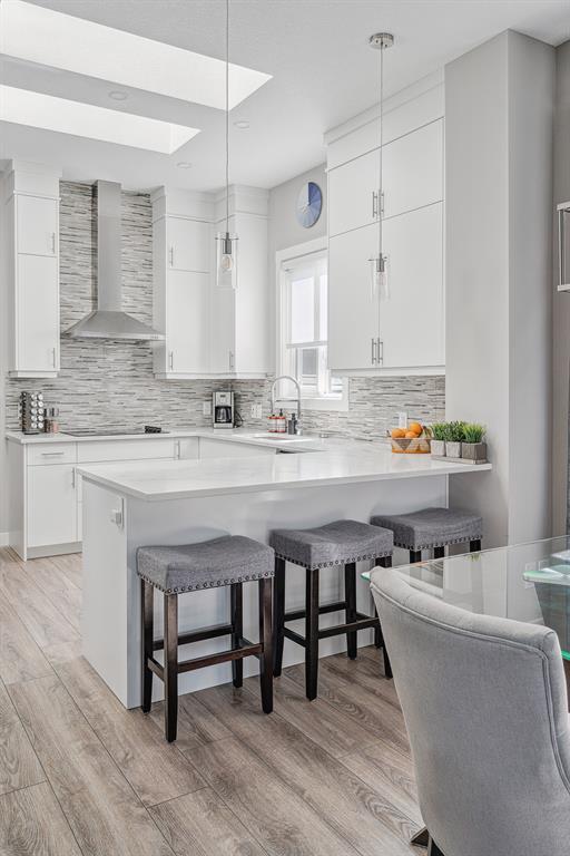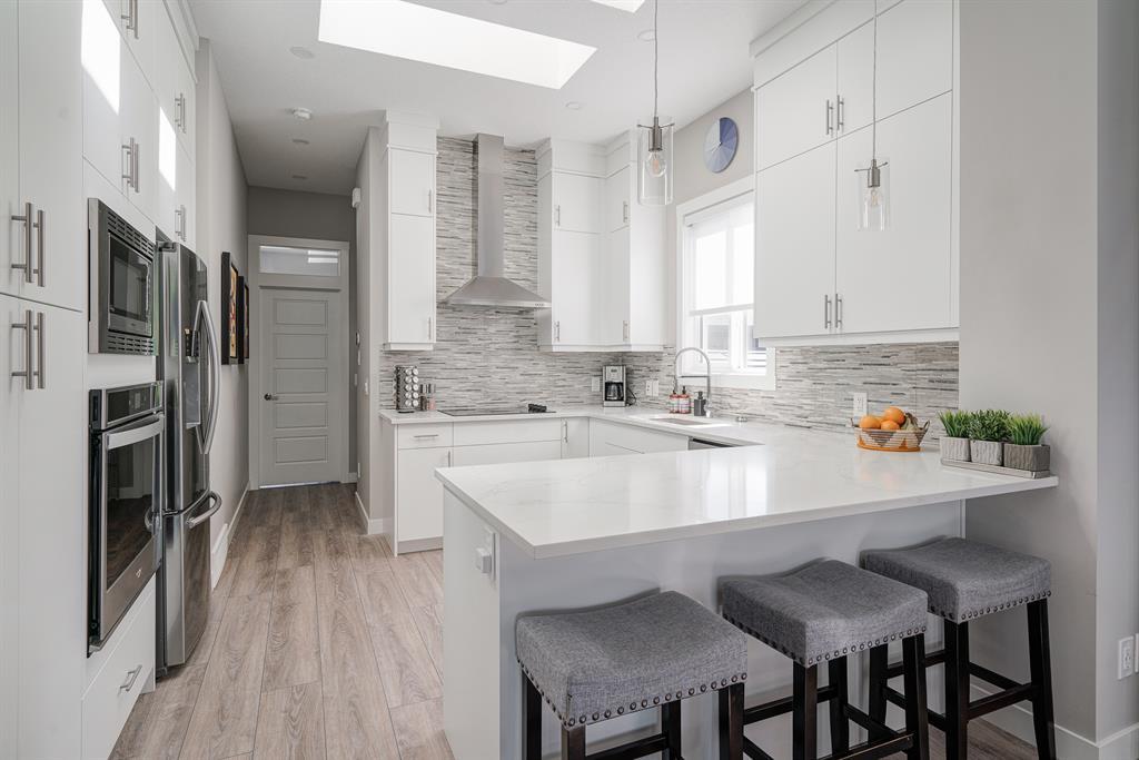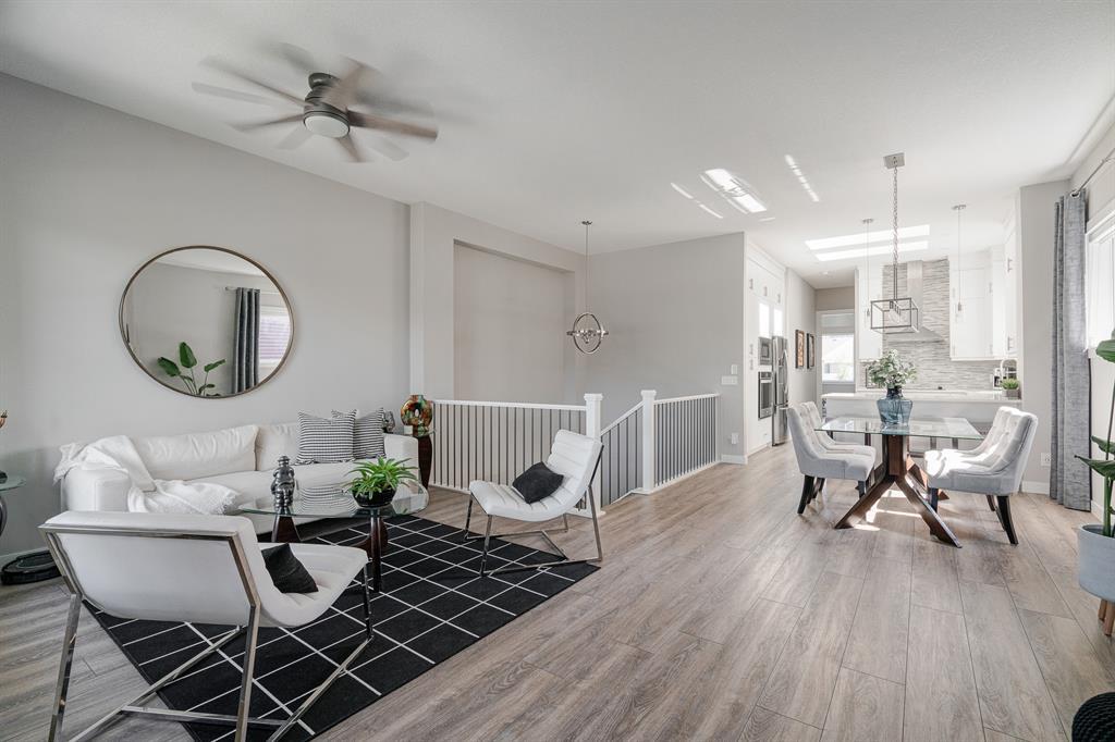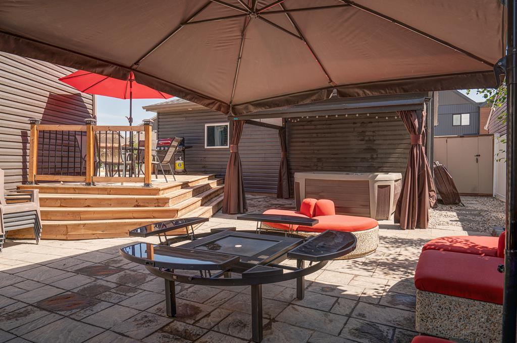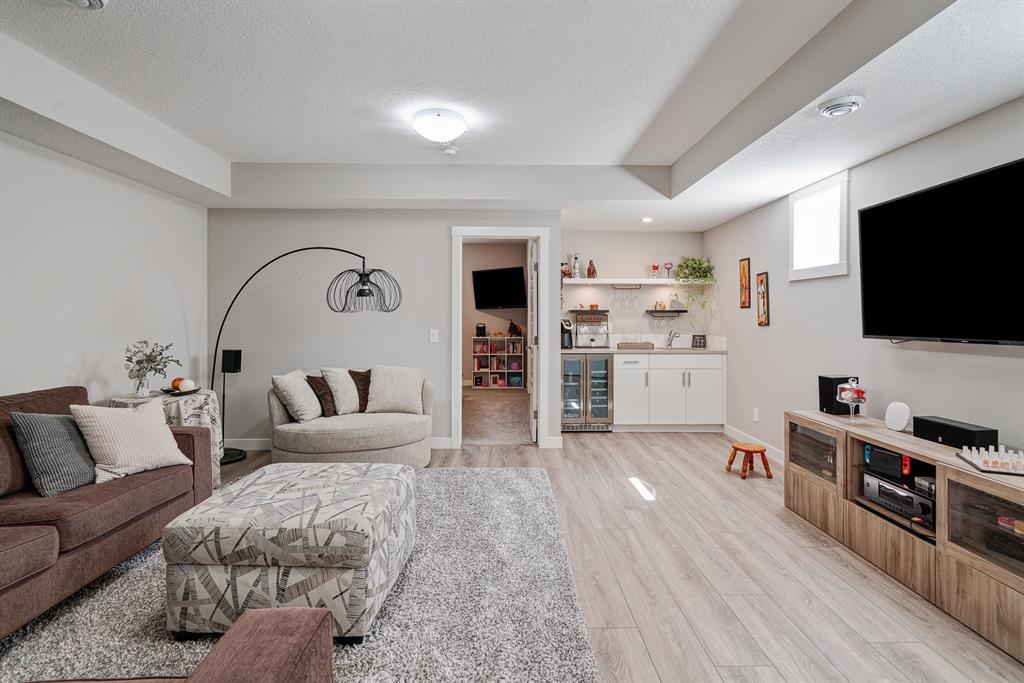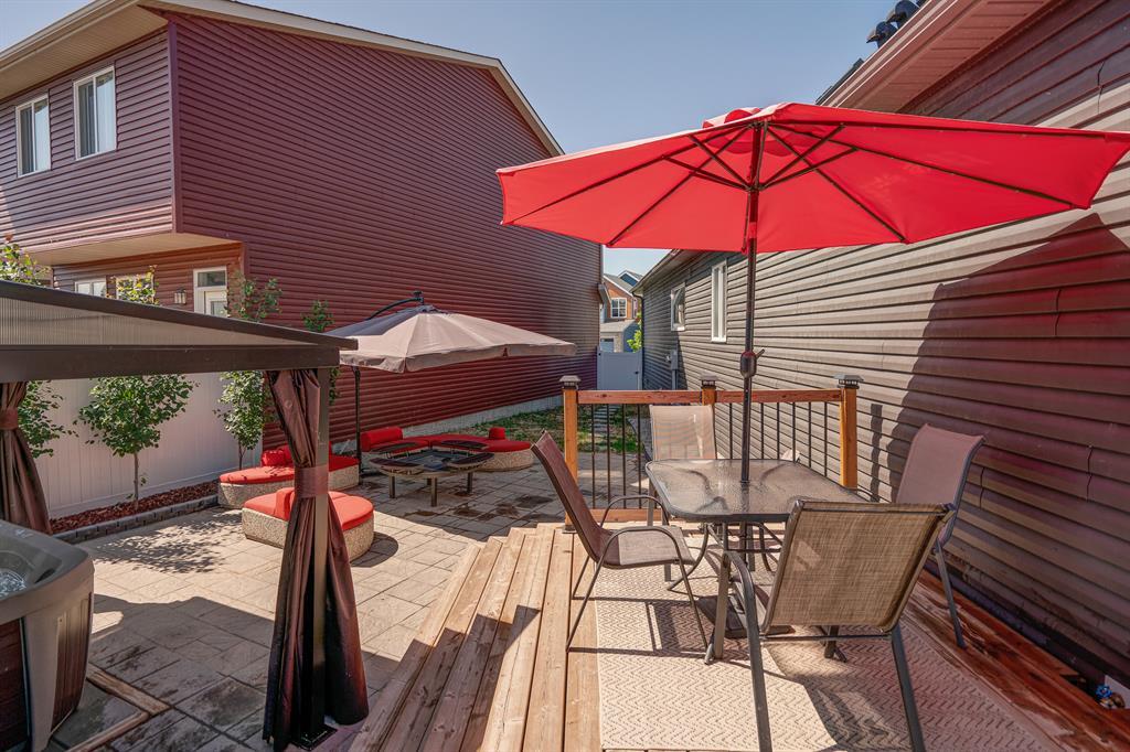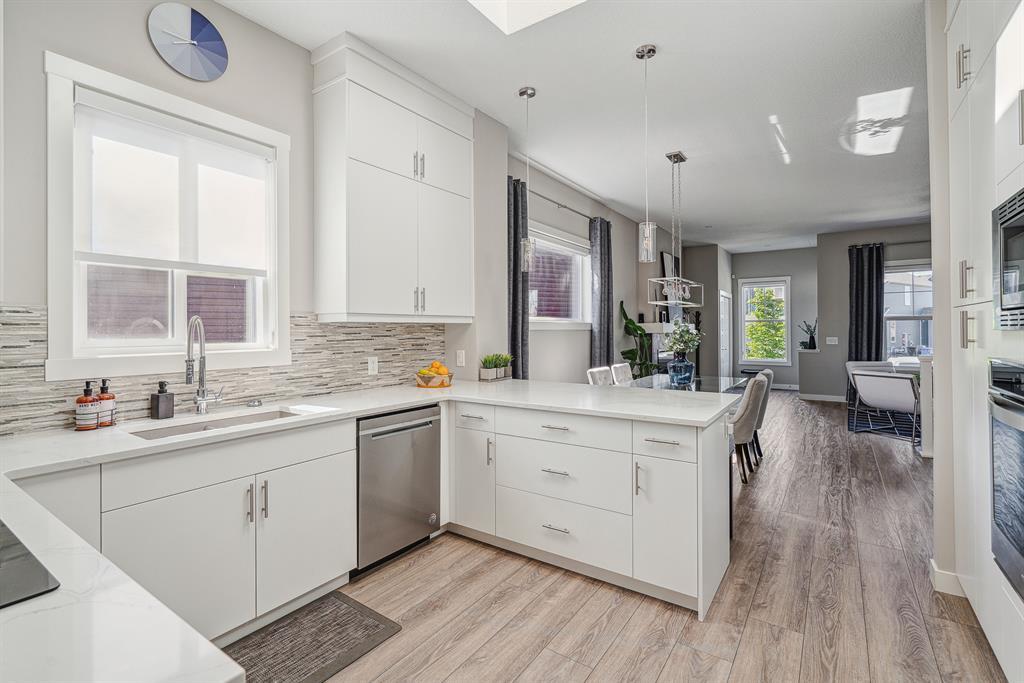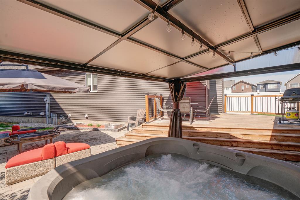 Welcome to 147 Seton Heath, located in the heart of Seton and featuring 3 bedrooms, 2.5 bathrooms, and nearly 2,200 square feet of developed living space in this beautifully appointed bungalow with a triple detached garage on a pie lot! The main level features an open concept layout, 10-foot ceilings with skylights, and southeast facing windows that allow plenty of natural light into the home throughout the day. Luxury vinyl plank flooring flows throughout the main level and leads into the living area, situated around an electric fireplace, and the spacious dining area. The kitchen features stainless steel appliances, full-height cabinetry, quartz countertops, and a breakfast bar for additional seating. The kitchen overlooks the dining and living areas - making this the perfect space to entertain friends and family. The main level is completed by a 2-piece bathroom and the primary bedroom that overlooks the backyard and features a stunning 5-piece ensuite bathroom and a large walk-in closet. The fully developed lower level offers an additional two bedrooms, a spacious rec room, a 4-piece bathroom, and a wet bar. Situated on a pie lot, this home offers a large backyard featuring a deck, landscaped patio, and a hot tub with its own gazebo. Additional features of this home include a water softener and water filtration system for everyday comfort as well as a triple detached garage and single parking pad, offering ample storage and parking space. Located in the highly sought-after community of Seton, this home offers easy access to nearby amenities and quick access to Deerfoot for daily commuting. (id:22211)