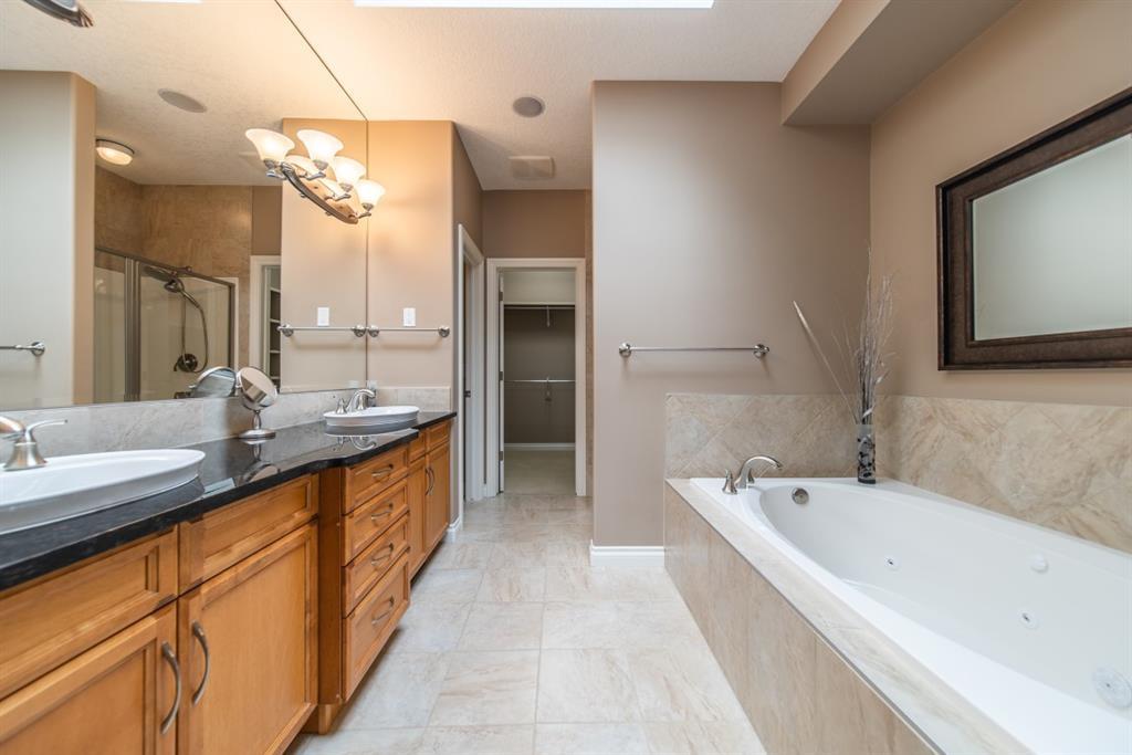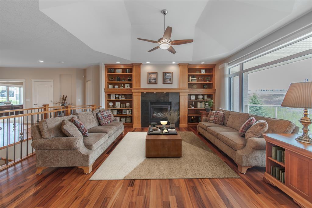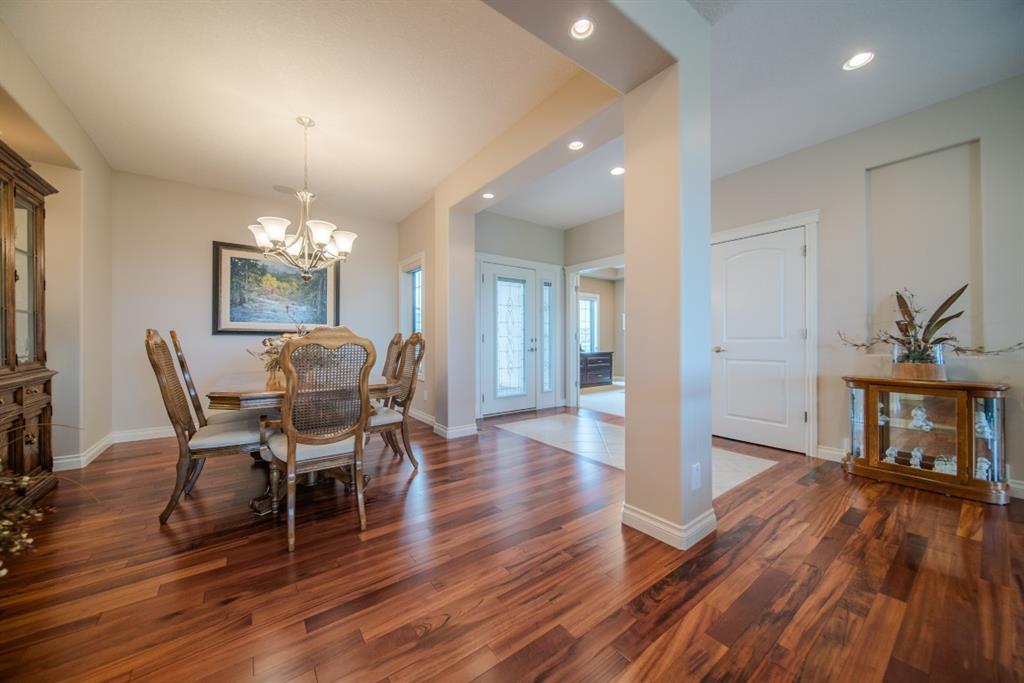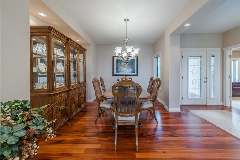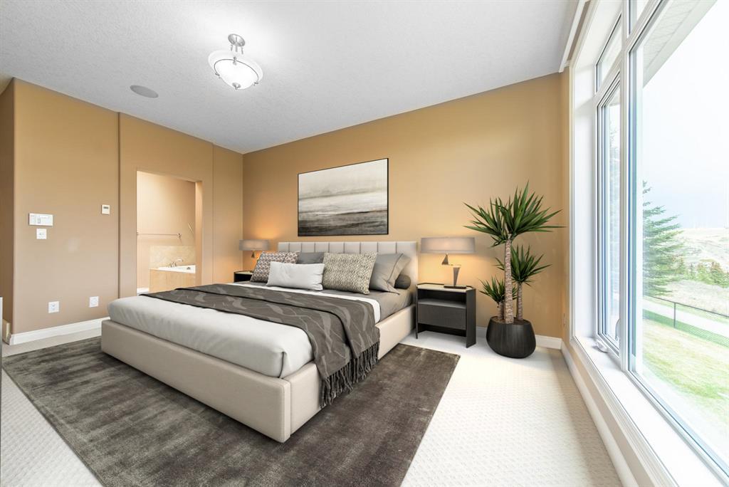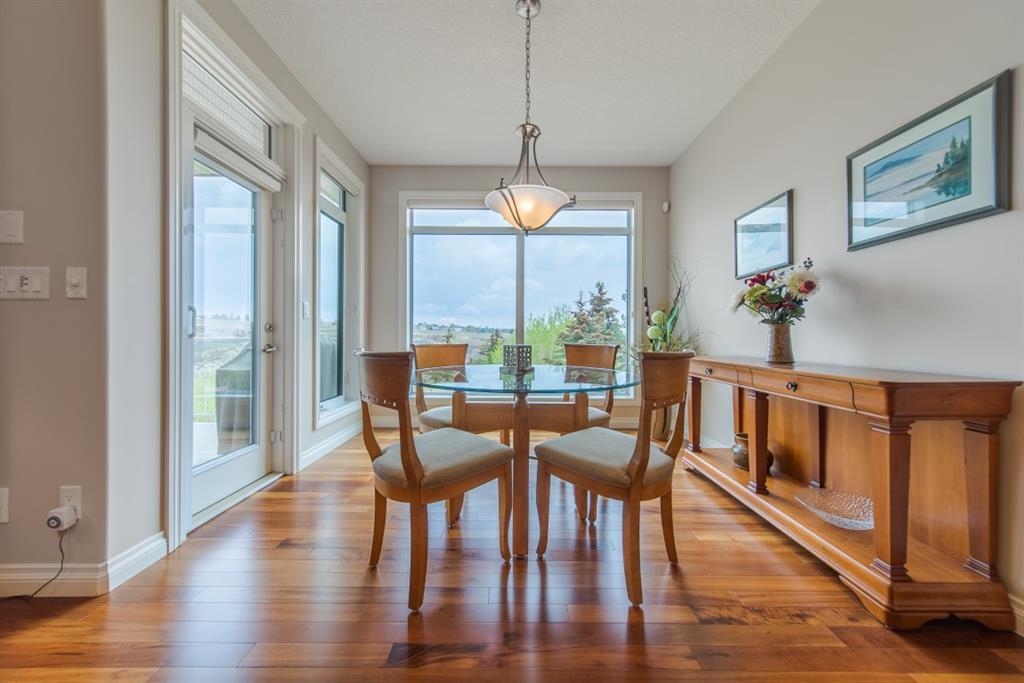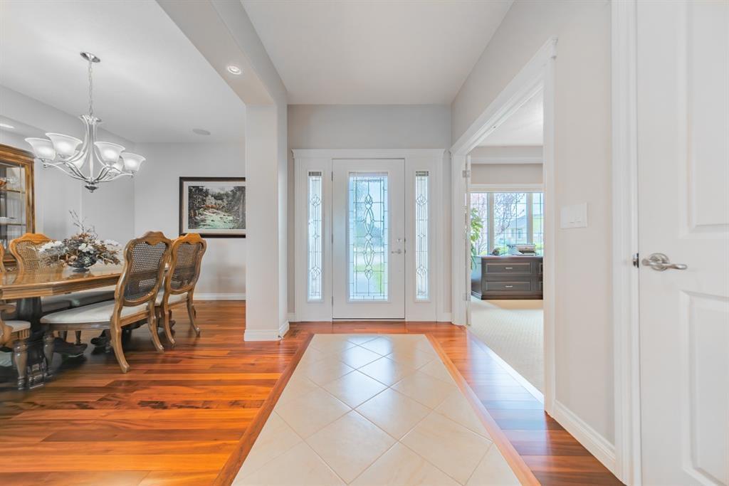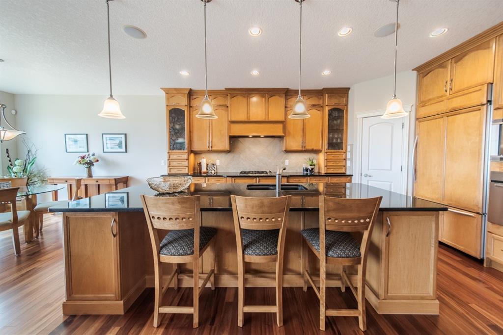 This stunning Tuscany Ravine bungalow offers a serene retreat in a picturesque setting. The property boasts three bedrooms, three and a half bathrooms, and an attached two-car garage. The interior features granite counters, built-in appliances, central air, and in-floor heating throughout the entire basement and primary bathroom. Tigerwood hardwood floors and carpeted bedrooms create a perfect balance of luxury and comfort. The living room is a cozy retreat with a fireplace and large windows, while the kitchen is a chef’s dream with Bosch built in appliances, granite counter-tops, a kitchen island, and wooden cabinets. Direct access to a large balcony off the kitchen provides a space for outdoor entertaining. A formal dining room and breakfast nook provide plenty of space for seating. The primary bedroom on the main floor offers a spacious sanctuary with a 5 pc en-suite bathroom and walk-in closet. The fully finished walk-out basement includes a large rec room with a wet bar, access to the patio, and two additional bedrooms, each with their own full bathroom and walk-in closet. The private patio and backyard oasis are perfect for relaxing or entertaining guests. The property backs onto the Tuscany Ravine, offering stunning views of the natural surroundings. Convenient amenities such as schools, parks, and supermarkets are within a 15-minute drive. This Tuscany Ravine bungalow is a serene gem, offering luxury and practicality in a peaceful neighbourhood. (id:22211)