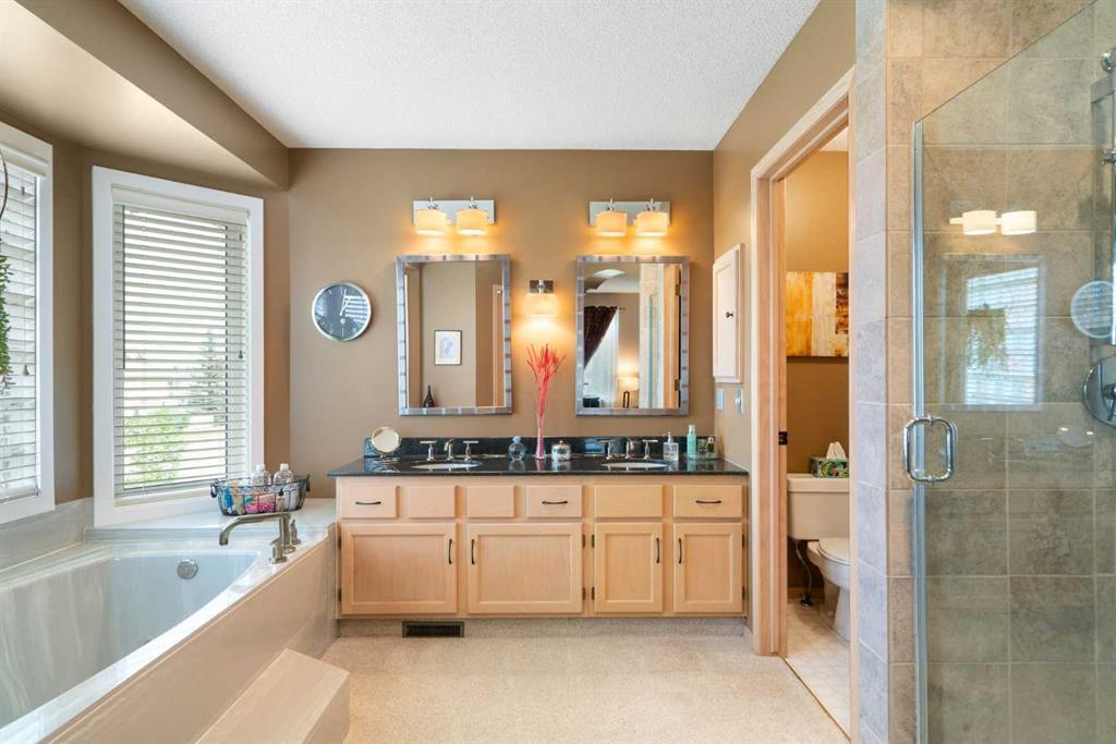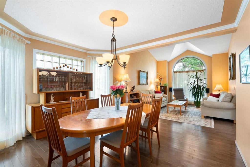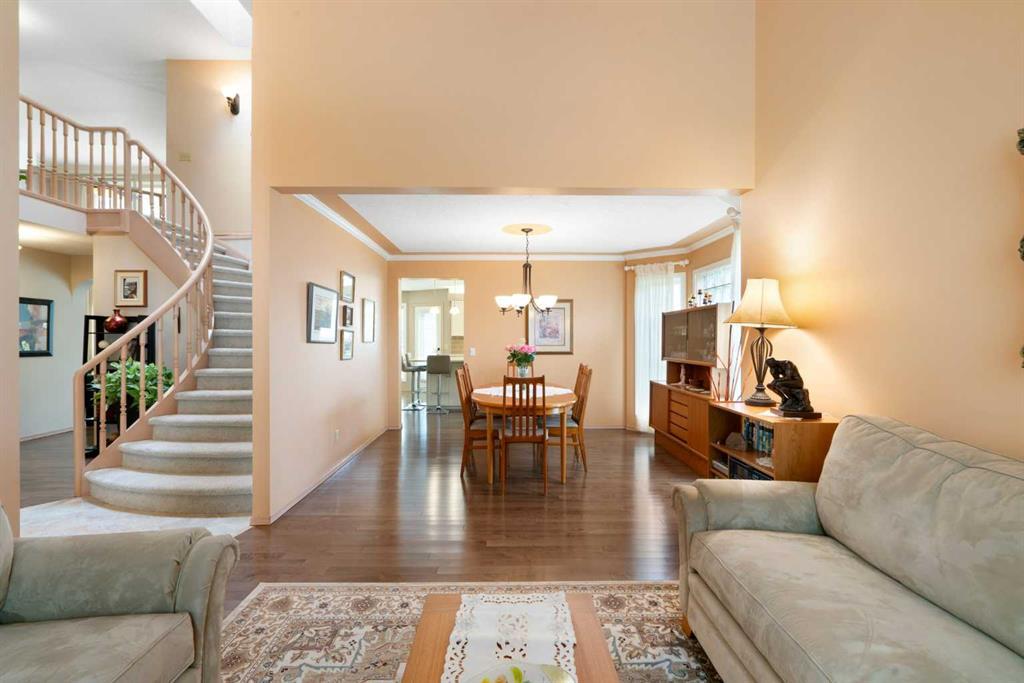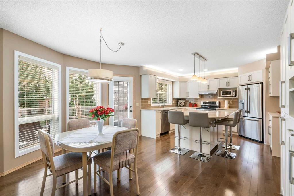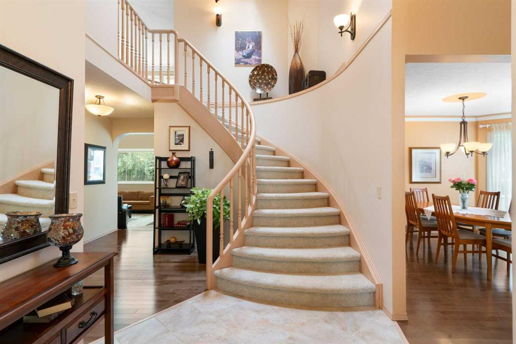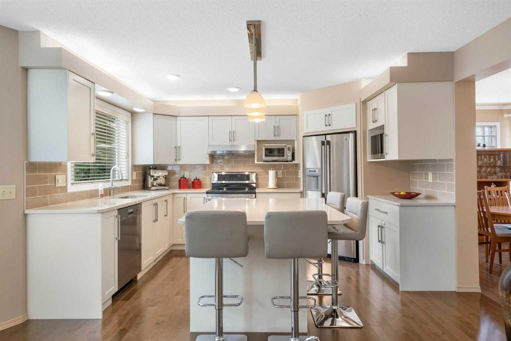 Welcome to this impeccably kept and updated home in the heart of Hamptons. Within walking distance to Country Hills Shopping Center and Tom Baines Junior High School, this two-storey is perfect for the growing family at almost 2,500 sq ft. Nestled next to a greenspace with a SW backyard, it's not hard to see why the current owners have enjoyed this home for 25 years. As you walk in through the front door, you will notice the grand entryway with a curved staircase leading your gaze to the top floor. Just to your right, you will find the formal living room with vaulted ceilings and hardwood floors. Next to the living room is the formal dining room which is accentuated with bay windows and crown molding. The kitchen has been tastefully updated with new cabinetry and quartz countertops. Stainless steel appliances, pull-out drawers and extended cupboards are some of the improvements you enjoy in this lovely home. Beyond the kitchen nook, you will find the family room complete with cathedral ceilings, wood burning fireplace with built-ins on either side. Just next door, you will find some more built-ins next door in the main floor office. Up the stairs, you will find a grand entrance to your primary bedroom with a very large walk-in closet and 5 piece ensuite with an updated shower. The other bedrooms upstairs are a good size - ideal for your growing kids. The bathroom is brightly lit with a large skylight and updated countertops. Downstairs, the basement is ideal for entertaining or having large get-togethers. The L shape allows you to divide the space to whatever your needs are. There is also a good sized bedroom that is ideal for your teenager and an updated bathroom with a shower. Outside in the picture-perfect backyard, you will find an inviting hot tub that is sunk-in to the deck. With no neighbours to the one side, the backyard offers lots of privacy and enjoyment under the sunset. This truly is the ideal family home in one of Calgary's premier communities. Stop by the Open House or call your favourite REALTOR® to have a look before it's gone. (id:22211)