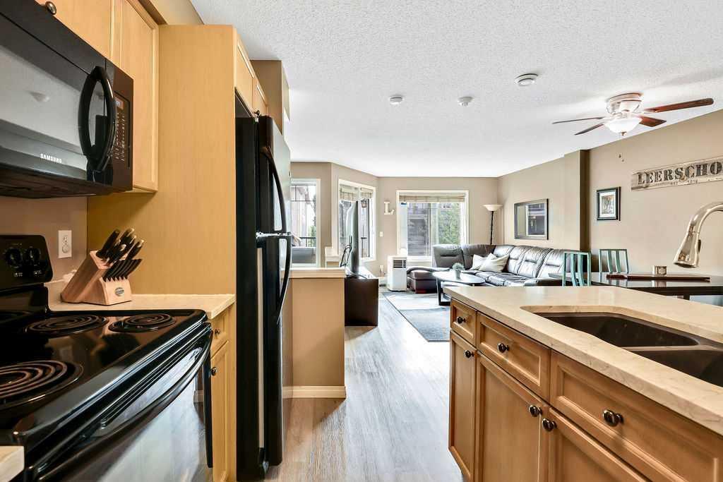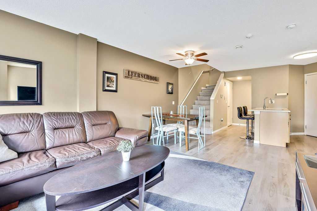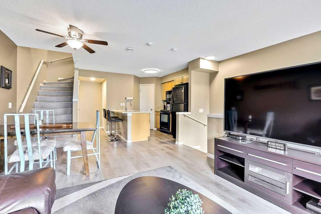 Welcome to Montage in Mckenzie Towne! Just steps from local restaurants, pubs, grocery stores and fitness facilities. Unbeatable location would be an understatement. This extremely spacious one bedroom plus den floor plan hardly comes to market. Over 900 sqft of living space with underground parking and storage awaits. As you step into this raised level townhome you will see the owner updates (2021) of new carpeting, vinyl plank flooring and stone counter tops. The main level features a spacious living room accompanied by dining area, kitchen/pantry, extra storage, half bath and balcony. Upstairs you will find upper level laundry, a huge primary bedroom, full bath and flex/den area. The master bedroom has space for any/all bedroom furniture, walk in closet and its very own balcony for night caps, or morning coffee. Mckenzie Towne is one of the most sought after communities in Calgary with amenities galore. Major roadways for easy access from Stoney trail, Deerfoot trail and 52 street. This unit is in the heart of it all with Mckenzie Towne plaza across the street and South Trail shopping centre less than 5 minutes away. Don't wait until it's gone - call to view today! (id:22211)