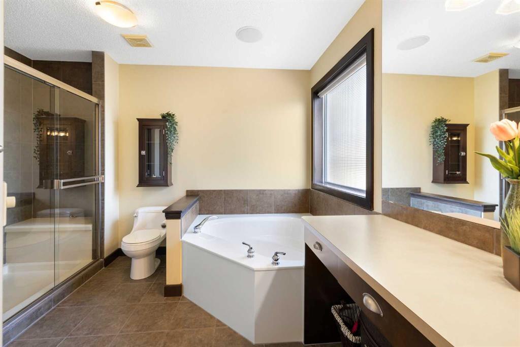 Nestled in the desirable community of Evergreen, you will find your new home! This well-maintained home of over 3,500 sq/ft of living space, offers a combination of elegance, comfort and great curb appeal with a south facing front yard. Upon entering you will notice 9ft ceiling and a versatile front room which can easily be your home office, formal dining or additional living space. The heart of the home is a well-appointed kitchen, complete with abundant cabinetry, and a GRAND granite island that provides an ideal setting for gatherings and entertaining. A great size living room features a gas burning fireplace and it shows EXCELLENT! An adjoining dining for those formal dinners overlooks your fully landscaped yard. CONVENIENTLY located main floor laundry, mud room and walk-through PANTRY, what a delight for all that storage space. Your new home can be enjoyed during the warmer months with relaxing CENTRAL AIRCONDITION. Upstairs you will be greeted with a hallway skylight and three good sized bedrooms including a back primary owner’s retreat with separate walk-in closet & gorgeous tub ensuite. An inviting sun-drenched BONUS room can be cherished by all, with large windows that bring in so much warm light. Two bedrooms have been combined into an oversized bedroom with custom cabinets, providing you with lots of room for a study area. A third bedroom with a walk-in closet and another 4-piece main bathroom finish off your upper-level oasis. The lower level is FULLY FINISHED with 2 ample sized bedrooms & another full bath, tons of storage space & games/rec room with built in surround sound speakers. Great outdoor space awaits you with a FULLY FENCED backyard, large deck and lush mature trees creating such a relaxing atmosphere and lasting memories with family and friends. Conveniently located in close proximity to Fish Creek Park, LRT station, renowned schools, playgrounds, shopping centers (like new COSTCO), and easy access to the many nature trails and abundant gree nspaces. Take advantage of this fantastic opportunity to call this beautiful home yours! (id:22211)