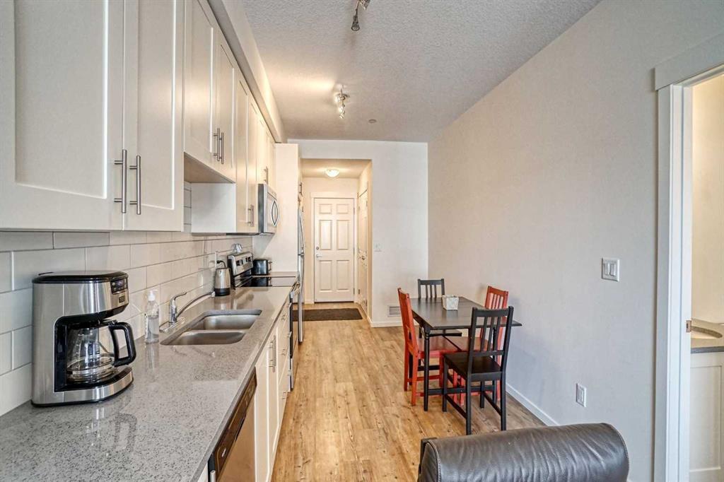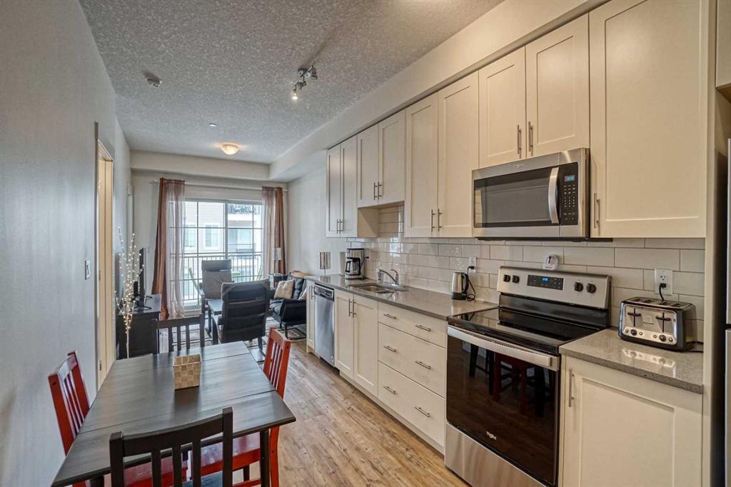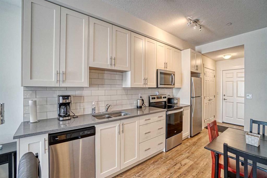 Welcome to an amazing, barely lived in apartment located in the sought after residential complex of Legacy Park (built by very reputable Brad Remington Homes). Your future home is located on the 2nd floor and offers 9' CEILINGS, UPGRADED KITCHEN with extended cabinets, upgraded backsplash, QUARTZ countertops and stainless steel appliances. The flooring has been also upgraded to quality VINYL. The unit features an open layout, a bedroom with a large window, a fantastic BALCONY (for your morning coffees) and an in-suite laundry with upgraded washer and dryer. Your future home comes with AN UNDERGROUND TITLED HEATED PARKING and a storage locker. The location cannot be better than this - walking distance to the large newly opened Township Plaza with a variety of stores, restaurants and bars; bus stop is just around the corner (the bus will take you to the LRT); steps away from walking paths and beautiful ponds. This is a perfect starter home for a single person or a young couple AND is a great investment! This unit WILL NOT last long. Hurry! (id:22211)