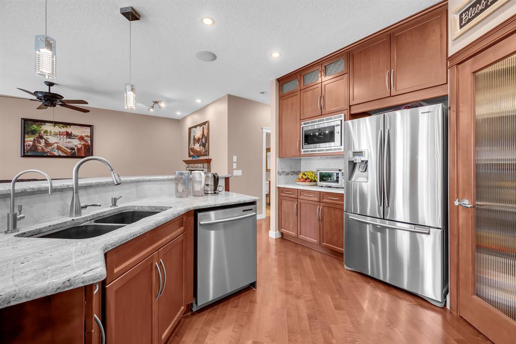 Welcome to estate living in the heart of Calgary’s NEW North! This bright, beautiful, spacious 4 bedroom + DEN home, with a massive vaulted ceiling bonus room and 2BR & 2BR LEGAL basement suite in the desirable NE community of Skyview Ranch has it all!!! This custom built home has been EXCEPTIONALLY maintained and offers over 3700 sq ft of professionally developed living space. New York city inspired diagonal hardwood floor, 9ft ceilings, a massive main floor den, in ceiling speakers, metal spindles, oversized main floor bathroom with seated tub shower perfect for the senior members of the family. Culinary creativity is inspired in the CHEF’S DREAM KITCHEN featuring Granite and Quartz countertops, a plethora of full-height cabinets, premium appliances with gas stove, a large island breakfast bar, a premium corner pantry with extra shelving for all your food storage needs. Brand new triple pane oversized SOUTH facing windows stream natural light into the adjacent living room inviting you to put your feet up and relax in front of the CUSTOM STONE ENCASED FIREPLACE.The upper floor has 4 large bedrooms including a 20ft long master’s retreat, with custom lighting and 10 dimmable pot lights, a massive walk-in closet with a private window, custom wired and full slide shelving. The master bath is fit for a king and queen, with his and her sinks, full length ceiling to vanity mirror, personal linen closet and seated tub shower. After a hard day of work, enjoy your premium jetted soaker tub while watching your favourite show or movie on your private bathroom wall mounted TV. Alternatively gather in the upper level, 7 window with west facing mountain views with VAULTED CEILING BONUS ROOM for some much needed downtime - this extra space is a great multipurpose room. Build a legacy of new family memories! Enjoy family game night or family movie night with your very own built in 5.1 wired surround sound system media room. The remaining 3 upper bedrooms are extremely SPACIOUS, easily accommodating king size beds! Professionally developed LEGAL 2 bedroom 2 bathroom, 9ft ceiling, basement apartment, with premium materials and craftsmanship throughout! It’s a perfect retreat for extended family members or excellent mortgage helper.SOUTH facing professionally landscaped yard. DOUBLE ATTACHED GARAGE IS FULLY INSULATED and complete with custom shelving throughout! There’s plenty of space on this extended driveway. The full front elevation of this elegant home has custom stone work throughout. Brand new south and west facing triple pane casement windows, new roof with impact resistant class 3 shingles, new vinyl siding, new 75G energy efficient tank, 2 energy efficient furnaces and the list goes on and on and on. This home won’t last - call to book your personal viewing today!!! (id:22211)