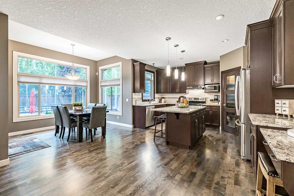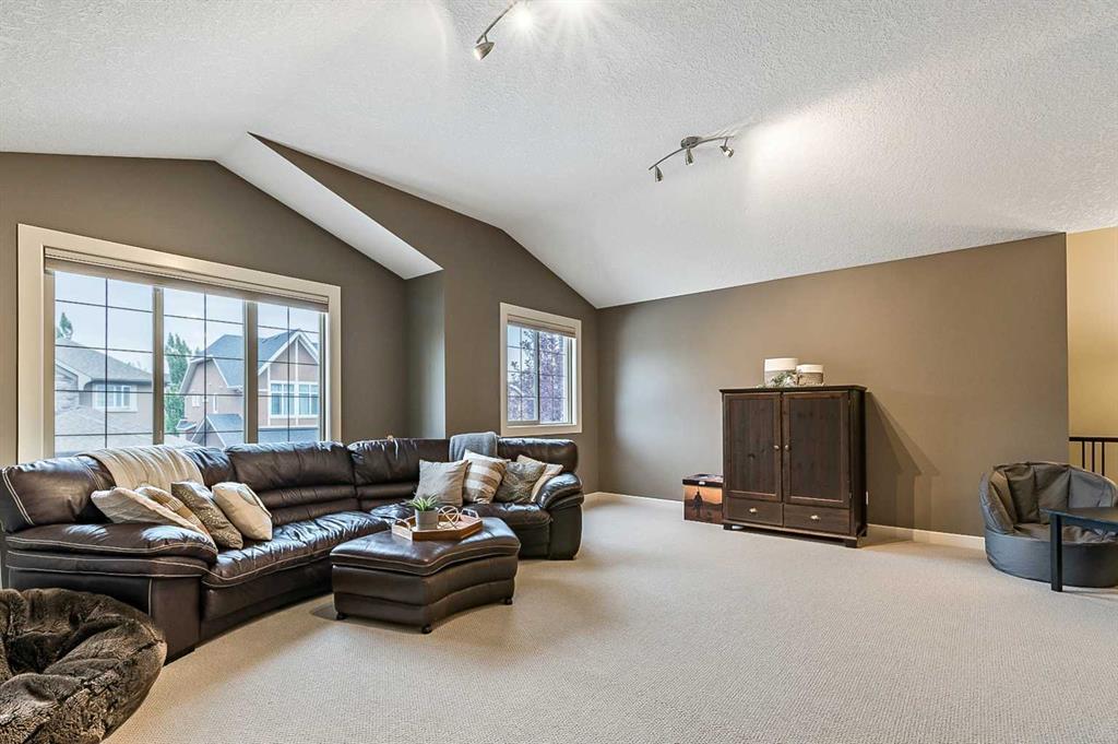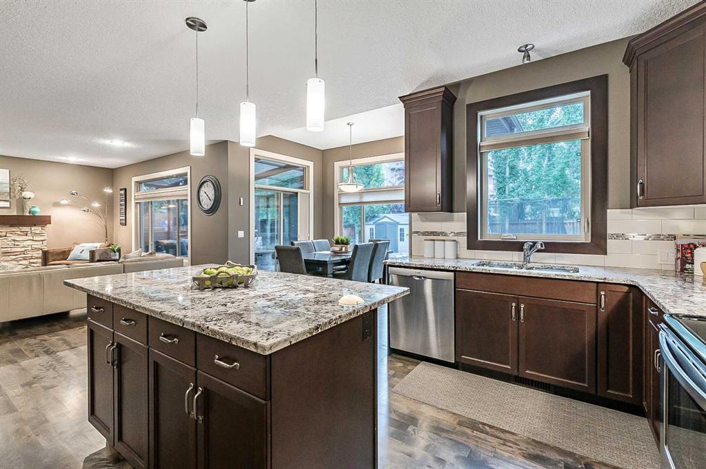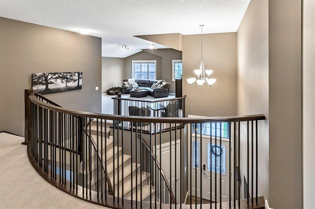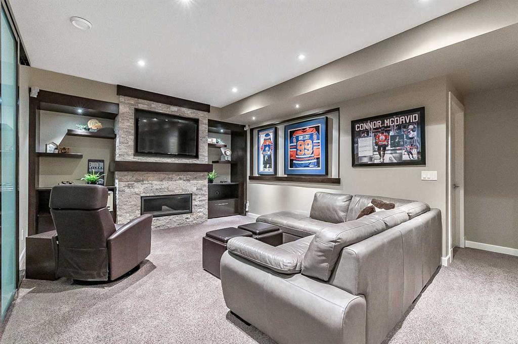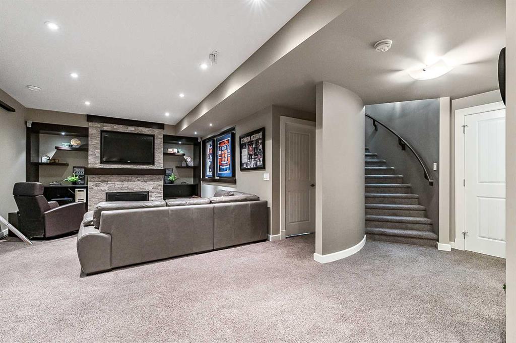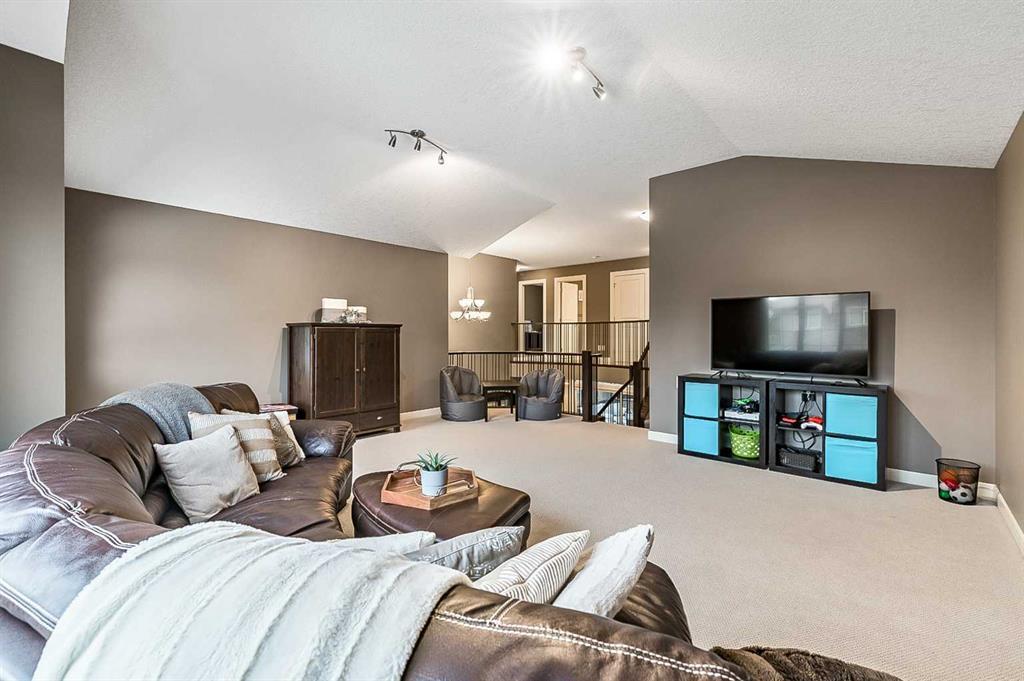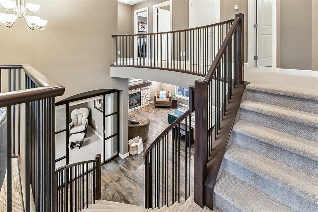 This beautiful home sits on a quiet street close to Cranston's ridge pathway system overlooking Fish Creek Park and walking distance to both public and Catholic elementary and Jr. High Schools! The main level is an open-concept layout, allowing the living room, kitchen, and dining nook to flow together over hardwood floors and under 9' ceilings. The main floor is completed by a private officer, half bath, and mudroom / laundry room with built-in storage and cabinets. Up the rounded staircase, you will find the huge bonus room along with 3 large bedrooms. The primary suite is adorned with a spa-like ensuite with dual vanities. The fully finished basement boasts a 4th bedroom, 4 piece bath plus an amazing entertaining space with a family room & games area. Hitting the gym will be easier than ever with a dedicated home gym space in the basement. The cherry on top of the sundae is the incredible back yard which offers a covered rear deck with an automated screen to keep out insects and extend your patio season, a stamped concrete patio, mature trees that offer privacy, uderground sprinklers, exposed aggregate driveway and sidewalks & more! The heated double attached garage is finished with drywall and epoxy flooring as well as slat-wall storage and racks for keeping your garage organized. (id:22211)