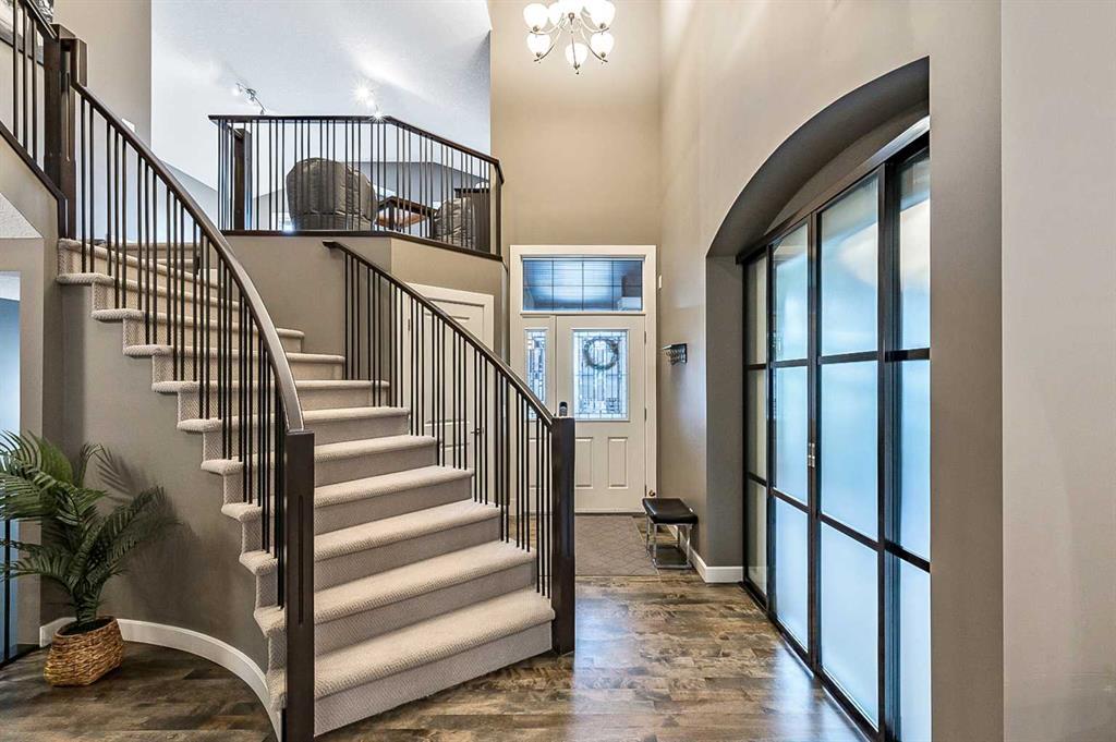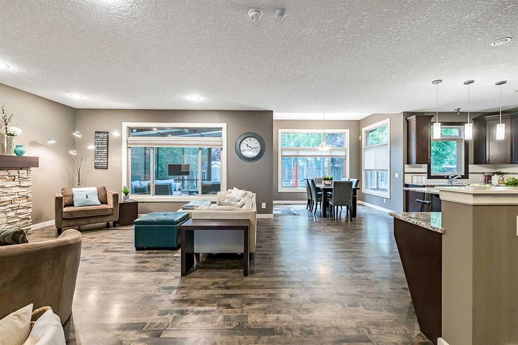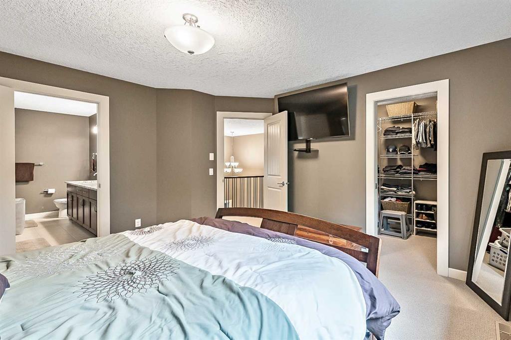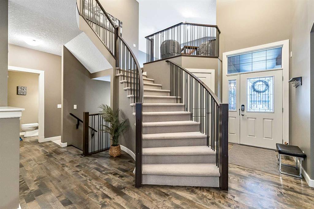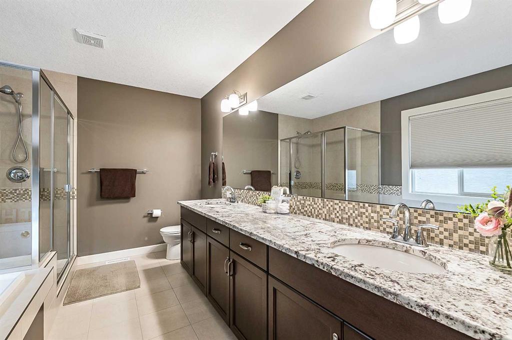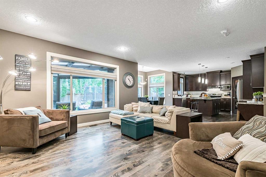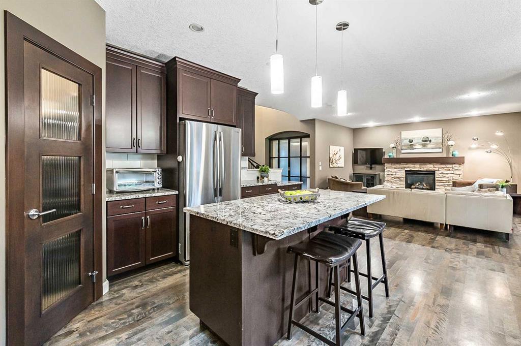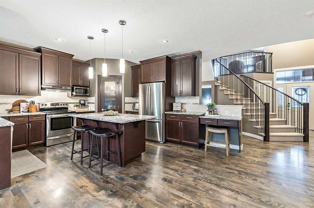 This beautiful home sits on a quiet street close to Cranston's ridge pathway system overlooking Fish Creek Park and walking distance to both public and Catholic elementary and Jr. High Schools! The main level is an open-concept layout, allowing the living room, kitchen, and dining nook to flow together over hardwood floors and under 9' ceilings. The main floor is completed by a private officer, half bath, and mudroom / laundry room with built-in storage and cabinets. Up the rounded staircase, you will find the huge bonus room along with 3 large bedrooms. The primary suite is adorned with a spa-like ensuite with dual vanities. The fully finished basement boasts a 4th bedroom, 4 piece bath plus an amazing entertaining space with a family room & games area. Hitting the gym will be easier than ever with a dedicated home gym space in the basement. The cherry on top of the sundae is the incredible back yard which offers a covered rear deck with an automated screen to keep out insects and extend your patio season, a stamped concrete patio, mature trees that offer privacy, uderground sprinklers, exposed aggregate driveway and sidewalks & more! The heated double attached garage is finished with drywall and epoxy flooring as well as slat-wall storage and racks for keeping your garage organized. (id:22211)