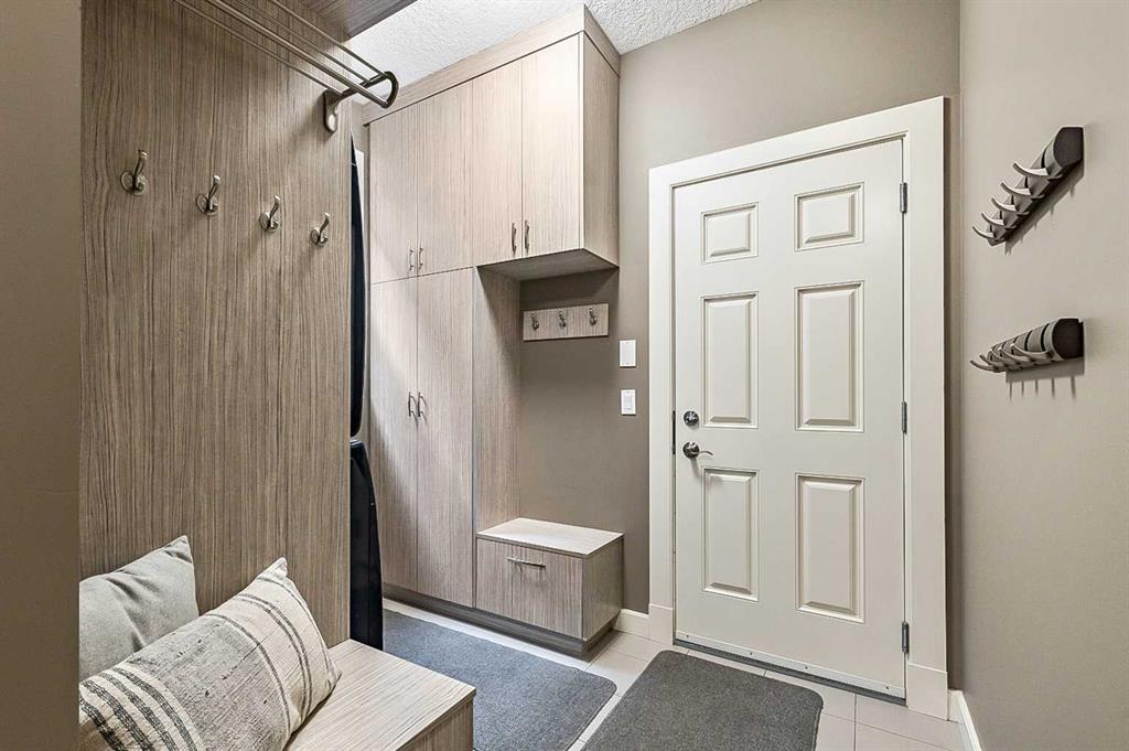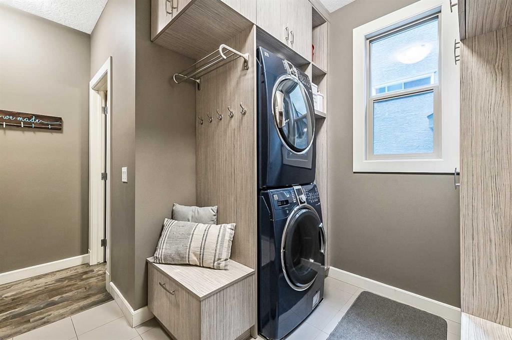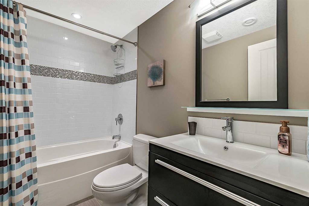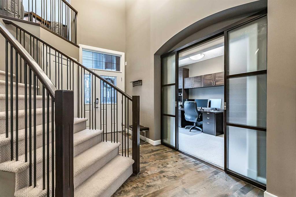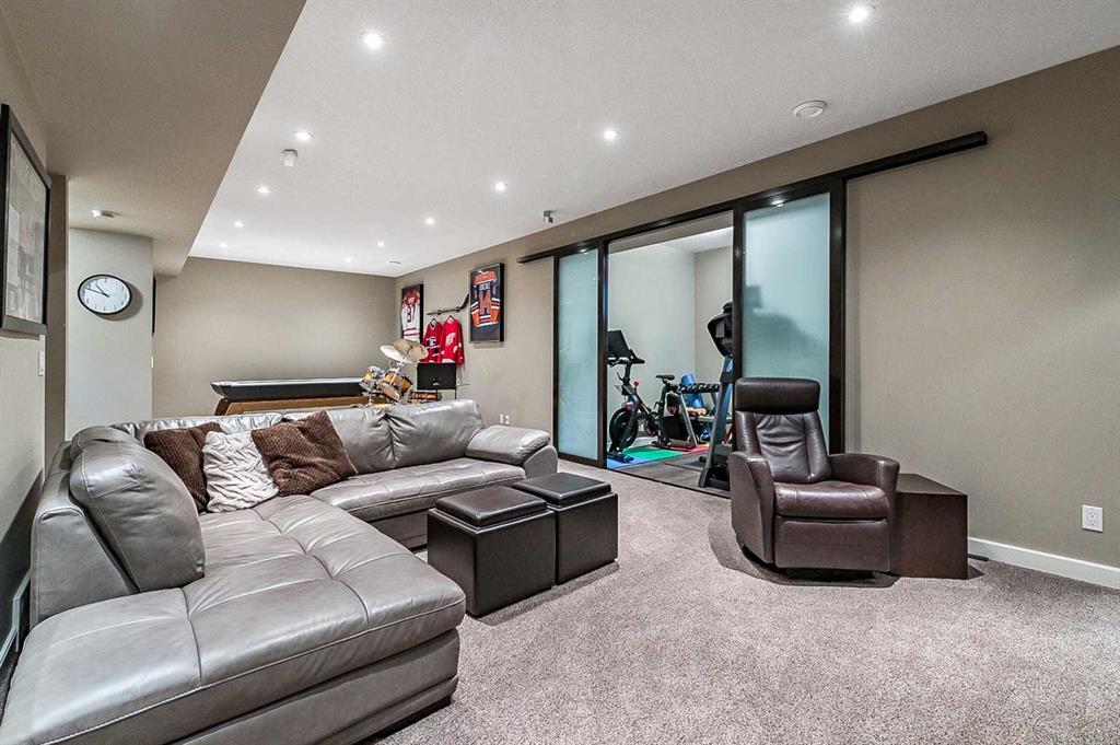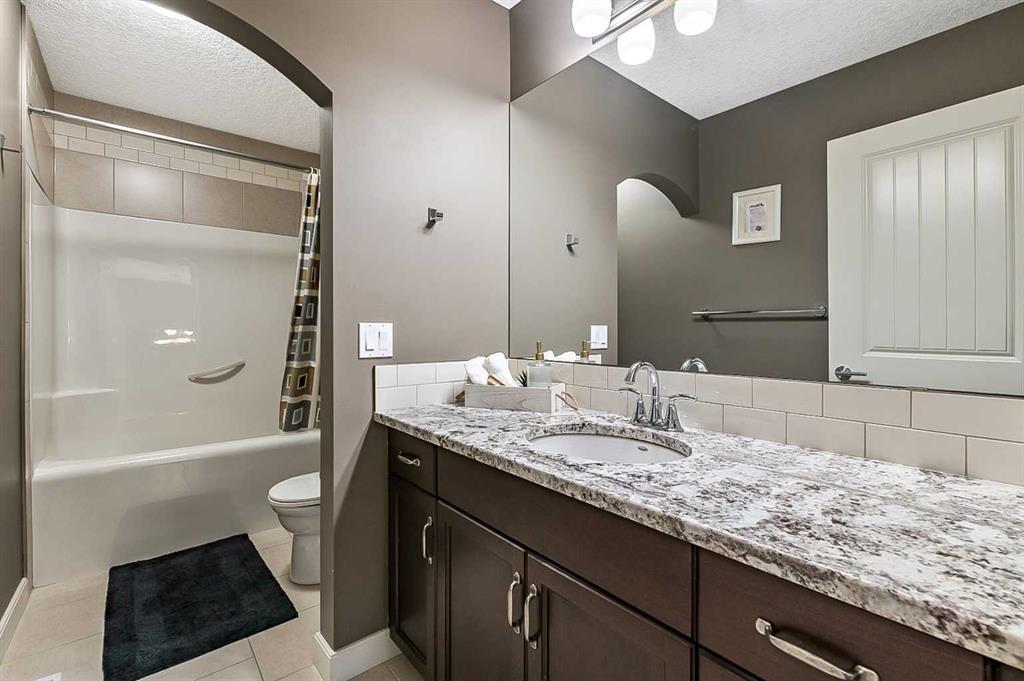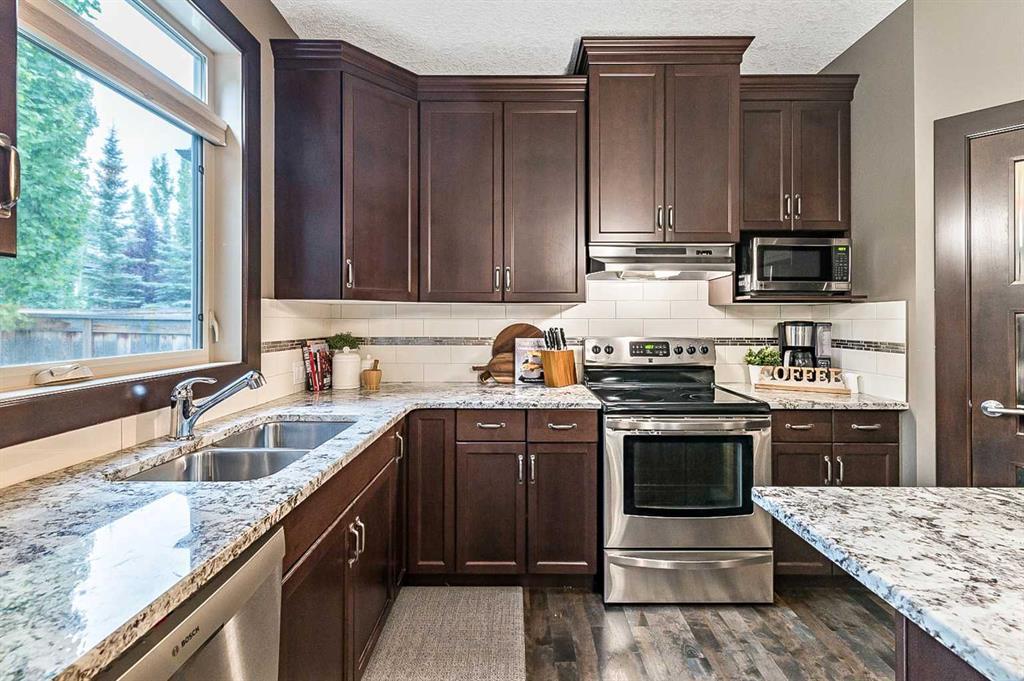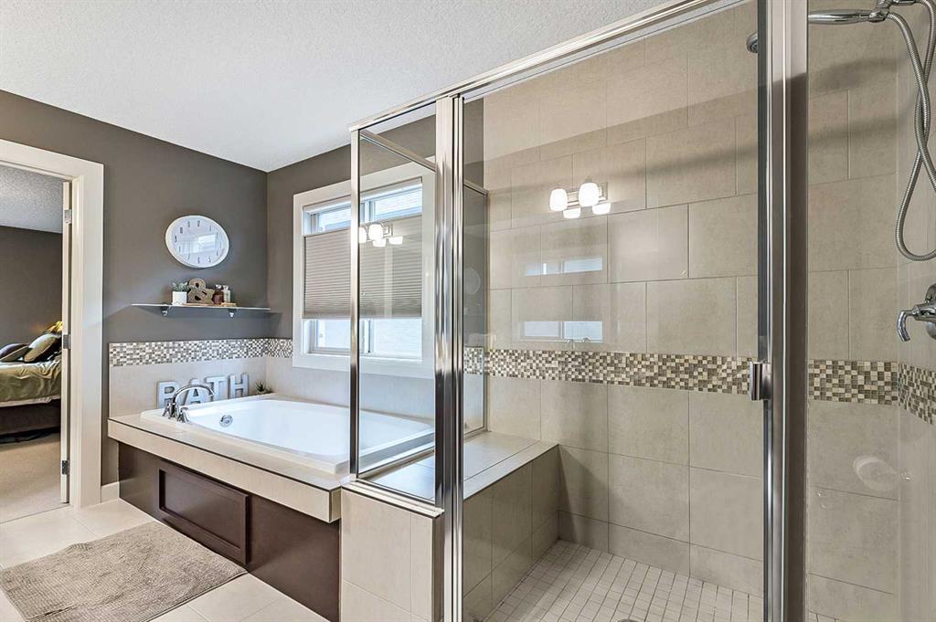 This beautiful home sits on a quiet street close to Cranston's ridge pathway system overlooking Fish Creek Park and walking distance to both public and Catholic elementary and Jr. High Schools! The main level is an open-concept layout, allowing the living room, kitchen, and dining nook to flow together over hardwood floors and under 9' ceilings. The main floor is completed by a private officer, half bath, and mudroom / laundry room with built-in storage and cabinets. Up the rounded staircase, you will find the huge bonus room along with 3 large bedrooms. The primary suite is adorned with a spa-like ensuite with dual vanities. The fully finished basement boasts a 4th bedroom, 4 piece bath plus an amazing entertaining space with a family room & games area. Hitting the gym will be easier than ever with a dedicated home gym space in the basement. The cherry on top of the sundae is the incredible back yard which offers a covered rear deck with an automated screen to keep out insects and extend your patio season, a stamped concrete patio, mature trees that offer privacy, uderground sprinklers, exposed aggregate driveway and sidewalks & more! The heated double attached garage is finished with drywall and epoxy flooring as well as slat-wall storage and racks for keeping your garage organized. (id:22211)