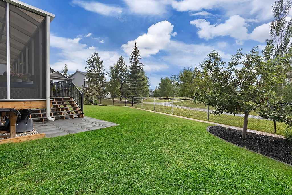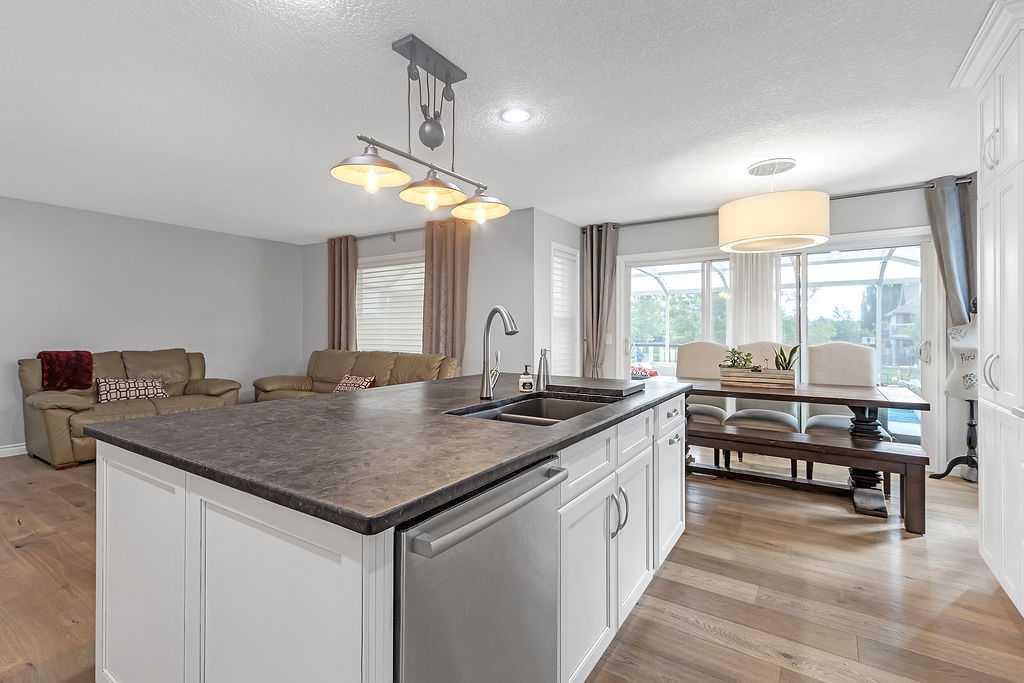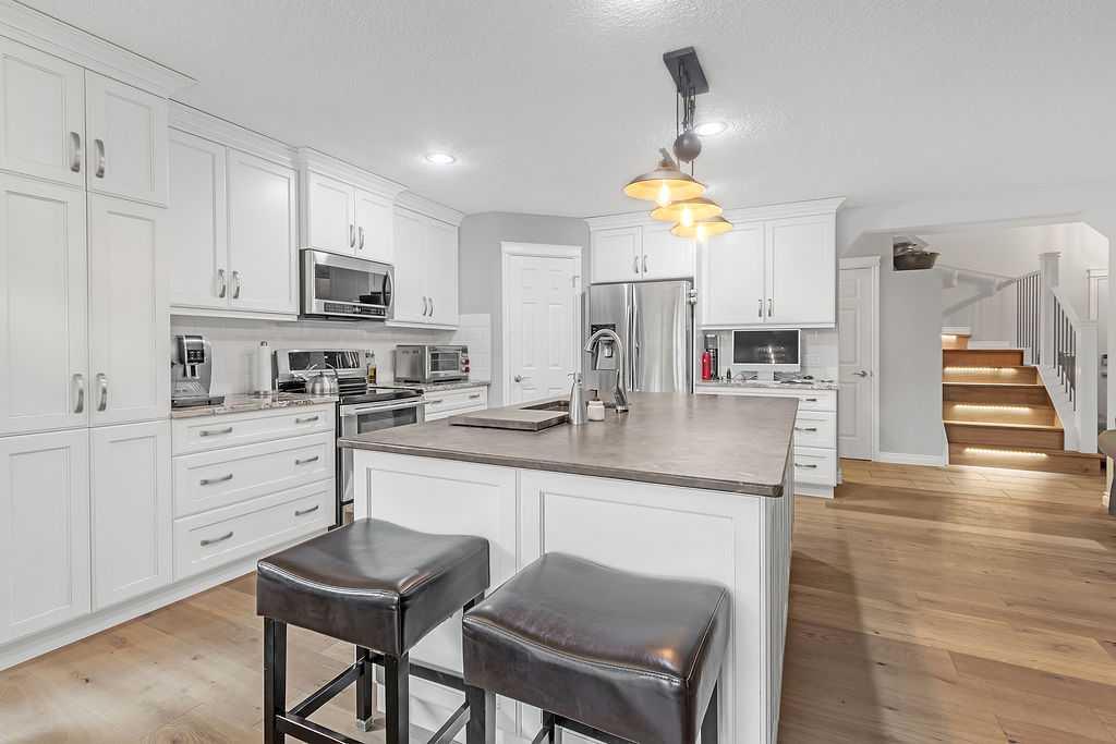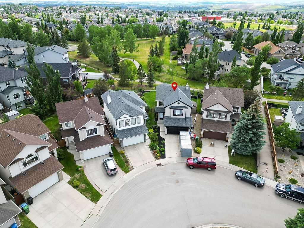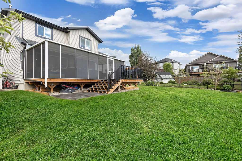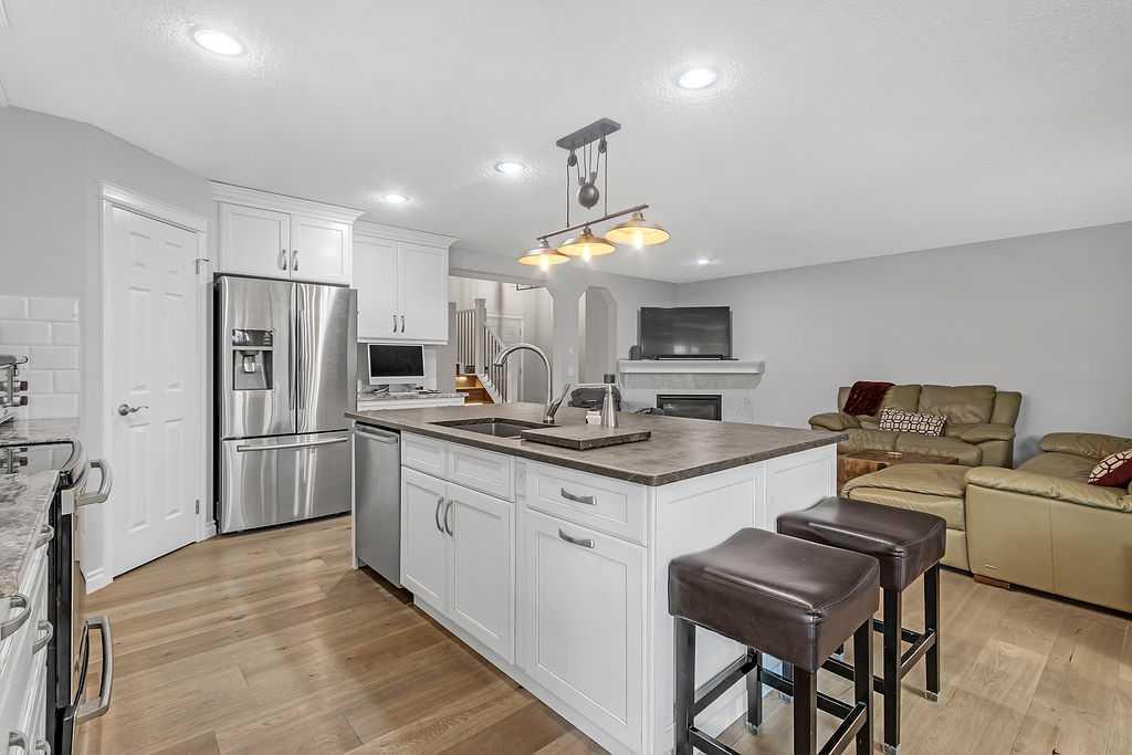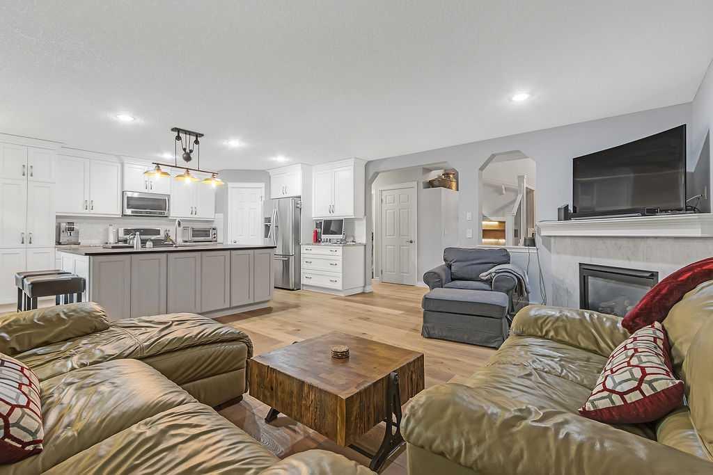Welcome to this beautifully and newly renovated two storey home boasting three bedrooms and two & a half bathrooms. The house is located on a spacious pie shaped lot that backs onto a green space, providing a serene and private setting with a southern exposure. OVER $150,000 of professional renovations have transformed this home, featuring stunning white oak hardwood floors on both the upper and main levels, as well as modern 12 x 24 ceramic tiles throughout. Upon entering the open foyer, you'll be greeted by a gourmet kitchen adorned with elegant white cabinetry. The kitchen offers ample storage space, including a corner pantry, and the centerpiece is a magnificent, leathered granite island that not only serves as a functional workspace but also provides additional storage. Equipped with stainless steel appliances and granite countertops, this kitchen is a true delight. Adjacent to the kitchen is a spacious dining area and a great room with a cozy gas fireplace. Completing the main floor is a convenient 2 piece bathroom and a laundry/mudroom. Moving upstairs, you'll notice the new railings and undermount lighting on the staircase, adding a touch of sophistication. The upper level features a primary bedroom with a luxurious 4 piece ensuite, complete with a makeup vanity and a walk-in closet. There are two additional well-sized bedrooms, each equipped with built-in closet systems. The 4 piece bathroom on this level boasts granite countertops and seamlessly blends with the overall design of the home. Furthermore, there's a bonus room with a second gas fireplace and a tiled surround, offering a versatile space for relaxation or entertainment. The backyard of this property is a tranquil retreat, fully fenced and beautifully landscaped. It features a screened-in porch area with a poly carbonate roof and screen system that provides UV protection. Additionally, there's a maintenance-free deck, perfect for hosting barbecues and enjoying outdoor gatherings with loved ones. N oteworthy features also include an oversized double heated garage with built-in shelving and cabinets. The unfinished basement offers the potential for personal customization. Further enhancing the appeal of this home are its additional features, such as air conditioning, an irrigation system, outside of the bonus and great room all windows have recently been replaced. The house features high end finishing throughout; knock-down ceilings, pot lights, and exquisite lighting fixtures, all add a touch of elegance to every room. Its convenient location close to parks, pathways, a ravine, shopping centers, and schools, as well as easy access to Deerfoot, makes it an ideal place to call home. With its turnkey condition and exceptional quality, this property surpasses new builds, call it home today! (id:22211)