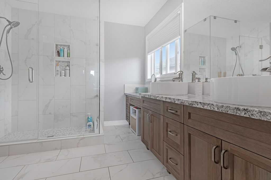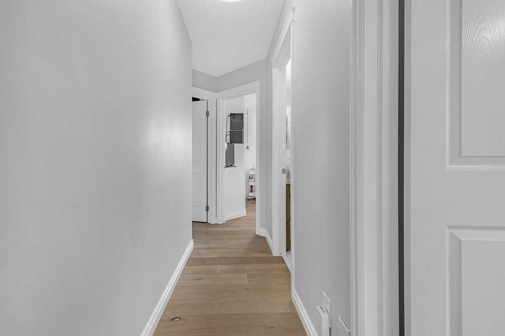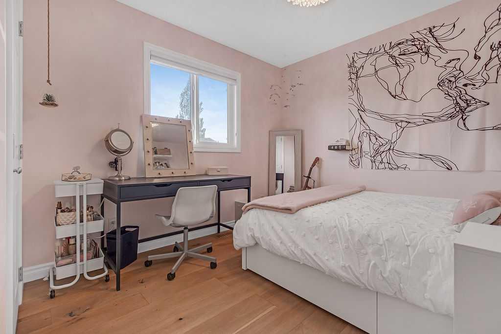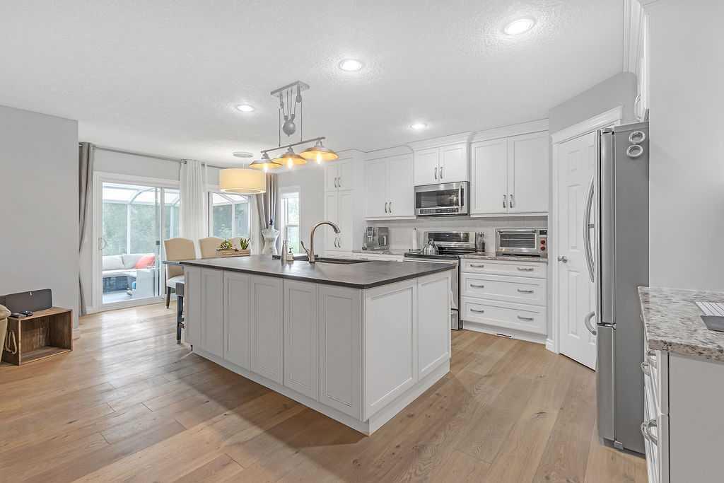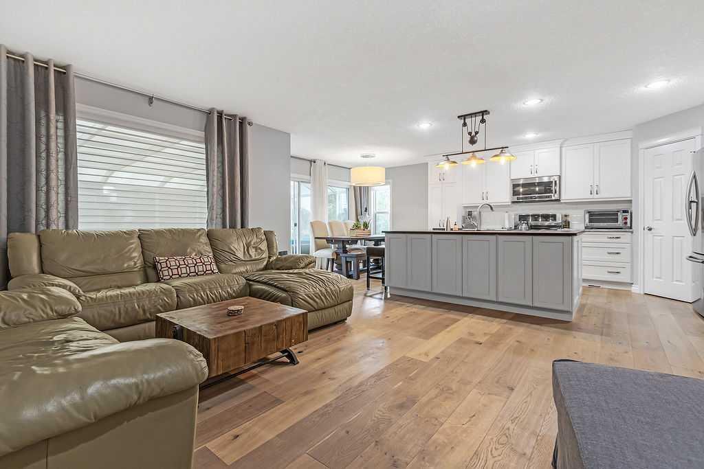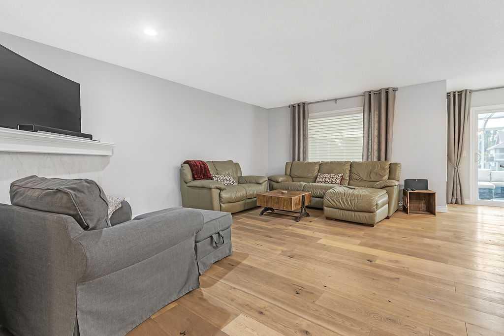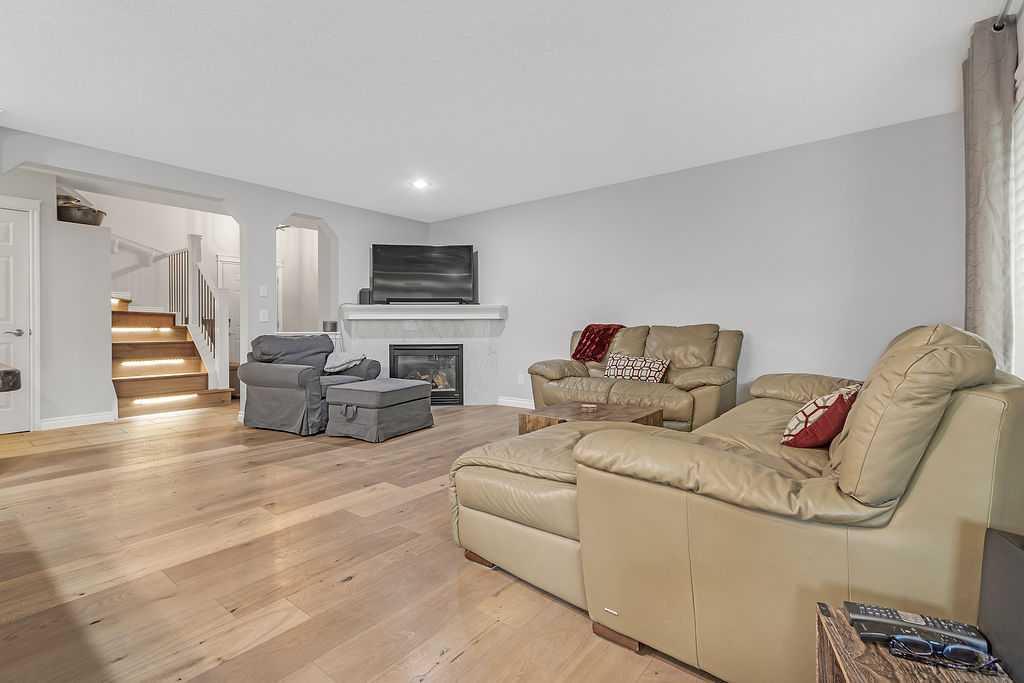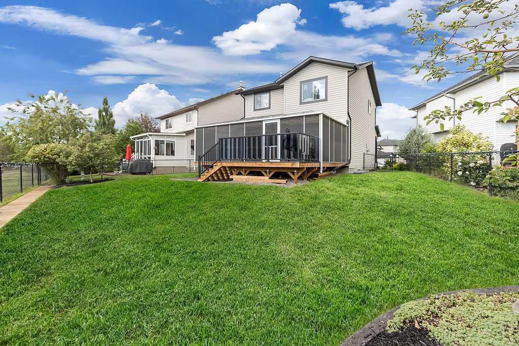 Welcome to this beautifully and newly renovated two storey home boasting three bedrooms and two & a half bathrooms. The house is located on a spacious pie shaped lot that backs onto a green space, providing a serene and private setting with a southern exposure. OVER $150,000 of professional renovations have transformed this home, featuring stunning white oak hardwood floors on both the upper and main levels, as well as modern 12 x 24 ceramic tiles throughout. Upon entering the open foyer, you'll be greeted by a gourmet kitchen adorned with elegant white cabinetry. The kitchen offers ample storage space, including a corner pantry, and the centerpiece is a magnificent, leathered granite island that not only serves as a functional workspace but also provides additional storage. Equipped with stainless steel appliances and granite countertops, this kitchen is a true delight. Adjacent to the kitchen is a spacious dining area and a great room with a cozy gas fireplace. Completing the main floor is a convenient 2 piece bathroom and a laundry/mudroom. Moving upstairs, you'll notice the new railings and undermount lighting on the staircase, adding a touch of sophistication. The upper level features a primary bedroom with a luxurious 4 piece ensuite, complete with a makeup vanity and a walk-in closet. There are two additional well-sized bedrooms, each equipped with built-in closet systems. The 4 piece bathroom on this level boasts granite countertops and seamlessly blends with the overall design of the home. Furthermore, there's a bonus room with a second gas fireplace and a tiled surround, offering a versatile space for relaxation or entertainment. The backyard of this property is a tranquil retreat, fully fenced and beautifully landscaped. It features a screened-in porch area with a poly carbonate roof and screen system that provides UV protection. Additionally, there's a maintenance-free deck, perfect for hosting barbecues and enjoying outdoor gatherings with loved ones. N oteworthy features also include an oversized double heated garage with built-in shelving and cabinets. The unfinished basement offers the potential for personal customization. Further enhancing the appeal of this home are its additional features, such as air conditioning, an irrigation system, outside of the bonus and great room all windows have recently been replaced. The house features high end finishing throughout; knock-down ceilings, pot lights, and exquisite lighting fixtures, all add a touch of elegance to every room. Its convenient location close to parks, pathways, a ravine, shopping centers, and schools, as well as easy access to Deerfoot, makes it an ideal place to call home. With its turnkey condition and exceptional quality, this property surpasses new builds, call it home today! (id:22211)