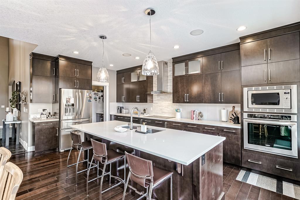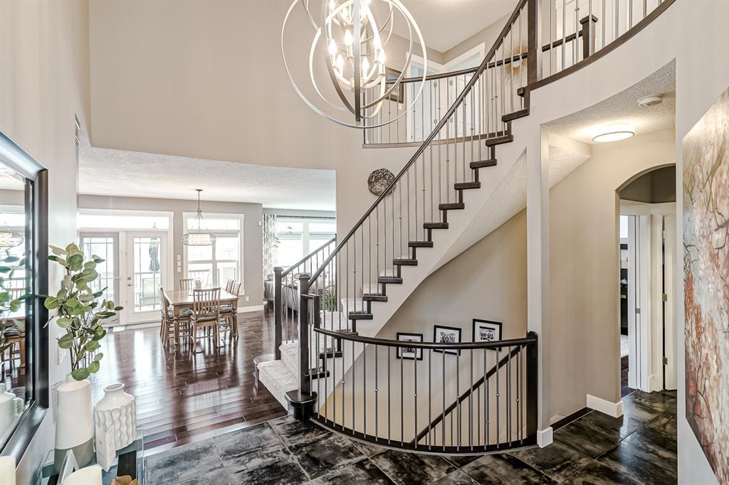 Welcome to this custom Morrison Home with a WALKOUT basement and 4 bedrooms on the upper floor. This gorgeous home is fully upgraded, backs onto a green space, and is ready for a new family. The lake is a pitching wedge away and phenomenal properties like this are seldom available.....now is your opportunity to own your very own. This executive 3100 sq ft home is fully upgraded, has 6 bedrooms, a developed walkout basement, and 2 fireplaces, what's not to like? The open floor plan makes the home feel even larger. Gourmet kitchen with a Ceran counter stove, side-by-side fridge, convection wall oven, and microwave. Huge island, full-height cabinets, and an oversized pantry complete this masterpiece. The main floor den is at the front of the home and is an ideal space for working from home. The formal dining room with 2-way fireplace could easily be made into a 2nd main floor office or playroom if desired. The spacious living room also with 2-way fireplace is perfect for families. Up the curved staircase, you will be greeted by 4 bedrooms. The oversized primary bedroom has an amazing 5pc and spacious ensuite with an attached walk-in closet. The other three bedrooms are really good sized and share the large 4pc bath. The walkout basement has a bar, games room, media area, 2 additional large bedrooms, and access to the backyard. As an added bonus there is A/C, Sonos & in-ceiling speakers. The backyard is fully landscaped with underground sprinklers and complete with a large patio making this oversized yard perfect for entertaining. You will want to host family BBQs all summer long! The oversized garage is well-designed and will fit all of your lake toys. This home is a must-see!!! (id:22211)