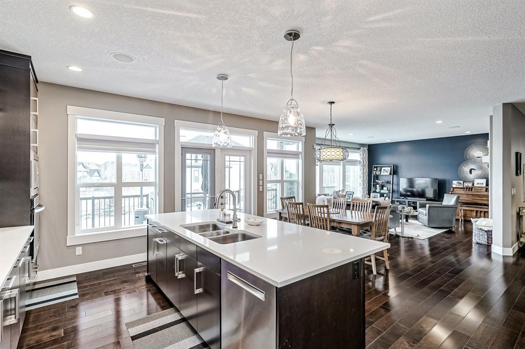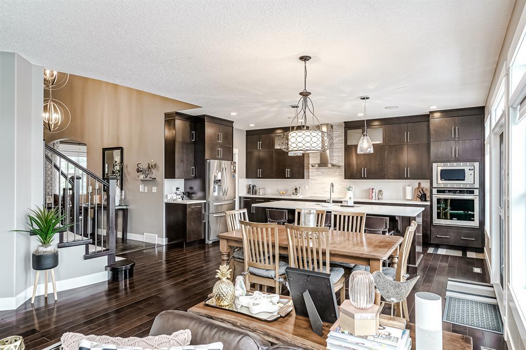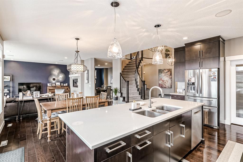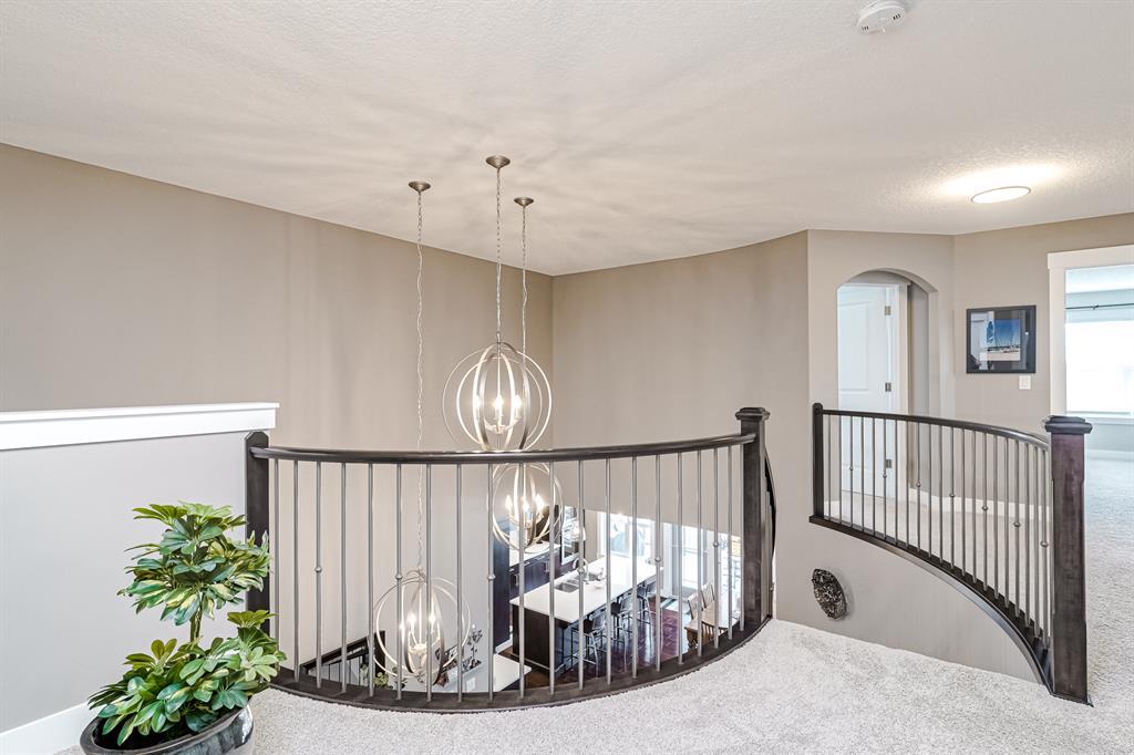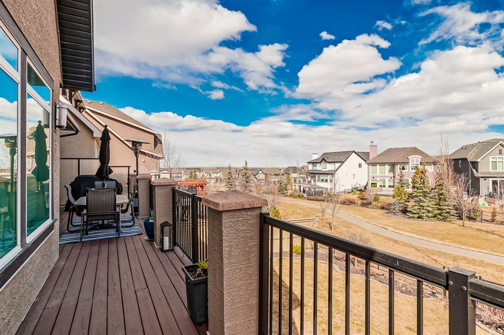 Price Correction!!!! Welcome to this custom Morrison Home with a WALKOUT basement and 4 bedrooms on the upper floor. This gorgeous home is fully upgraded, backs onto a green space, and is ready for a new family. The lake is a pitching wedge away and phenomenal properties like this are seldom available.....now is your opportunity to own your very own. This executive 3100 sq ft home is fully upgraded, has 6 bedrooms, a developed walkout basement, and 2 fireplaces, what's not to like? The open floor plan makes the home feel even larger. Gourmet kitchen with a Ceran counter stove, side-by-side fridge, convection wall oven, and microwave. A huge island, full-height cabinets, and an oversized pantry complete this masterpiece. The main floor den is at the front of the home and is an ideal space for working from home. The formal dining room with a 2-way fireplace could easily be made into a 2nd main floor office or playroom if desired. The spacious living room also with a 2-way fireplace is perfect for families. Up the curved staircase, you will be greeted by 4 bedrooms. The oversized primary bedroom has an amazing 5pc and spacious ensuite with an attached walk-in closet. The other three bedrooms are really good sized and share the large 4pc bath. The walkout basement has a bar, games room, media area, 2 additional large bedrooms, and access to the backyard. As an added bonus there is A/C, Sonos & in-ceiling speakers. The backyard is fully landscaped with underground sprinklers and complete with a large patio making this oversized yard perfect for entertaining. You will want to host family BBQs all summer long! The oversized garage is well-designed and will fit all of your lake toys. This home is a must see!!! (id:22211)