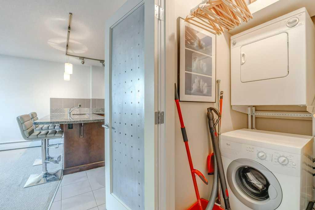 This is a fantastic opportunity for investors, or those looking for their first home. This one bedroom, one bathroom unit has large windows with security film for privacy, and a light filtering blind in the living room. The roomy kitchen has a great layout, featuring granite counters, stainless steel appliances and plenty of storage. The granite vanity counter in the 4-piece bathroom adds a luxurious touch, and the toilet was recently replaced. The bedroom closet has a built-in organizer for efficient use of space and added organization. Enjoy the highly sought-after convenience of in-suite laundry! Despite its proximity to 17th Ave, the building is on a quiet street. The residents have a sense of community and pride, offering a positive and welcoming atmosphere. The building is well managed with a good reserve fund and has had updates including a high efficiency hot water tank. The location of this property is absolutely perfect for those who enjoy the vibrancy of 17th Ave, with the convenience of walking distance to downtown and also close to LRT. There are events to enjoy at the community centre, such as farmers markets, planting days, and festivals. This property is a must see, so book your private showing before it’s gone! (id:22211)