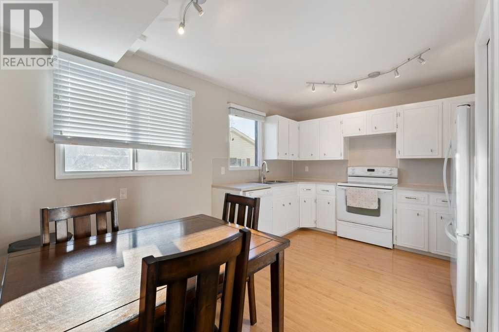 This cozy half duplex in Beddington Heights offers a wonderful living experience for small families, couples or individuals. As you step inside you will notice the bright white kitchen overlooking the fully fenced backyard. Just off the kitchen, appropriately hidden away by the front door you will find a half bath. Moving to the main living space, you will be welcomed by the abundance of natural light in the living room, courtesy of the patio doors leading to the front deck. The living room offers a warm and inviting atmosphere, perfect for enjoying your morning coffee. Upstairs, you'll discover three bedrooms, ensuring ample space for your family or guests. A 4-piece bathroom is also conveniently located on this level with a close-by linen closet to allow for extra storage. In the basement, a laundry room, potential office space, and storage room await your needs. Head out back to find a patio area, and a grassy space for children or pets to play, along with a convenient parking pad. What's more, this home is near Nose Hill Park, a serene and beautiful location with picturesque walking paths and an off-leash dog area. The accessibility of nearby shopping, schools, and playgrounds adds to the appeal of this charming duplex. It's an ideal place to call home. (id:22211)