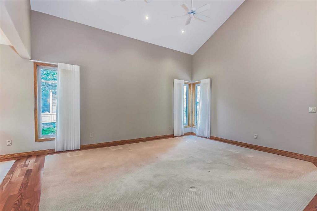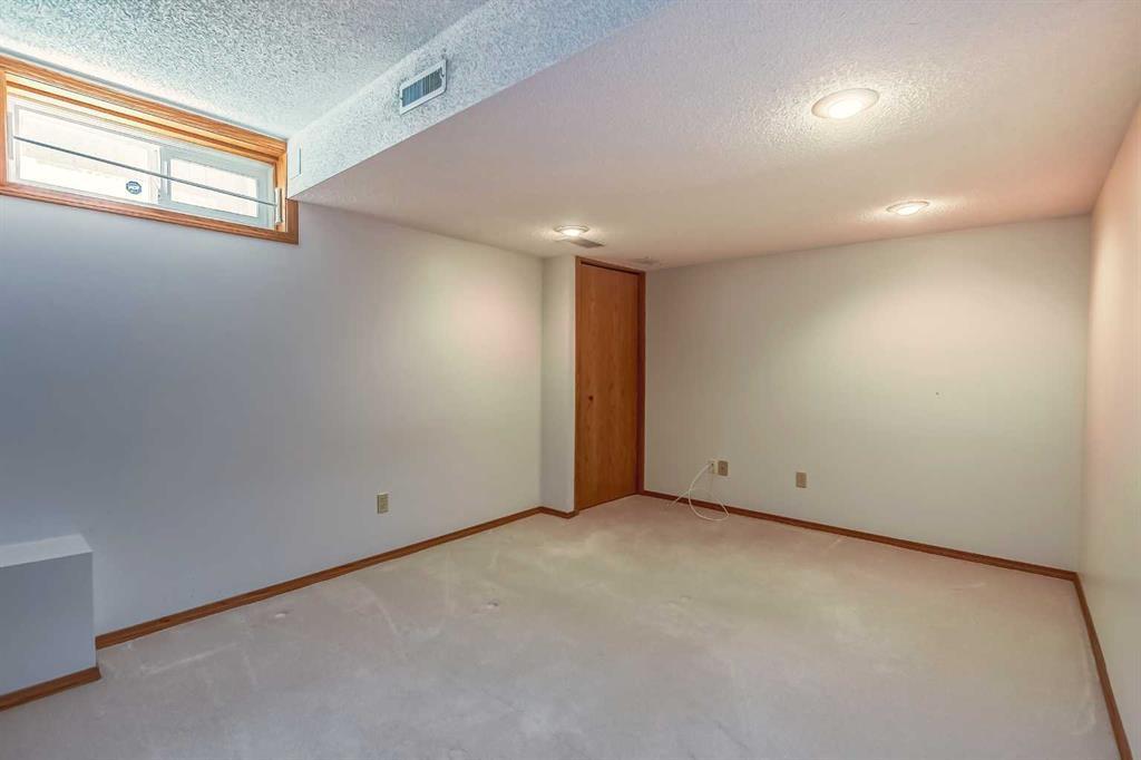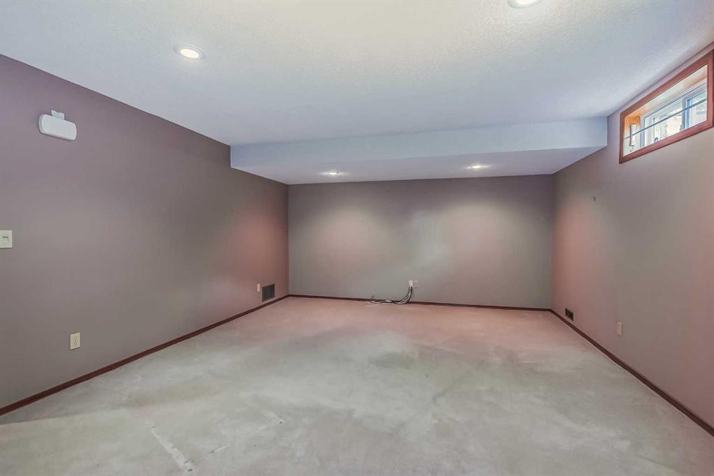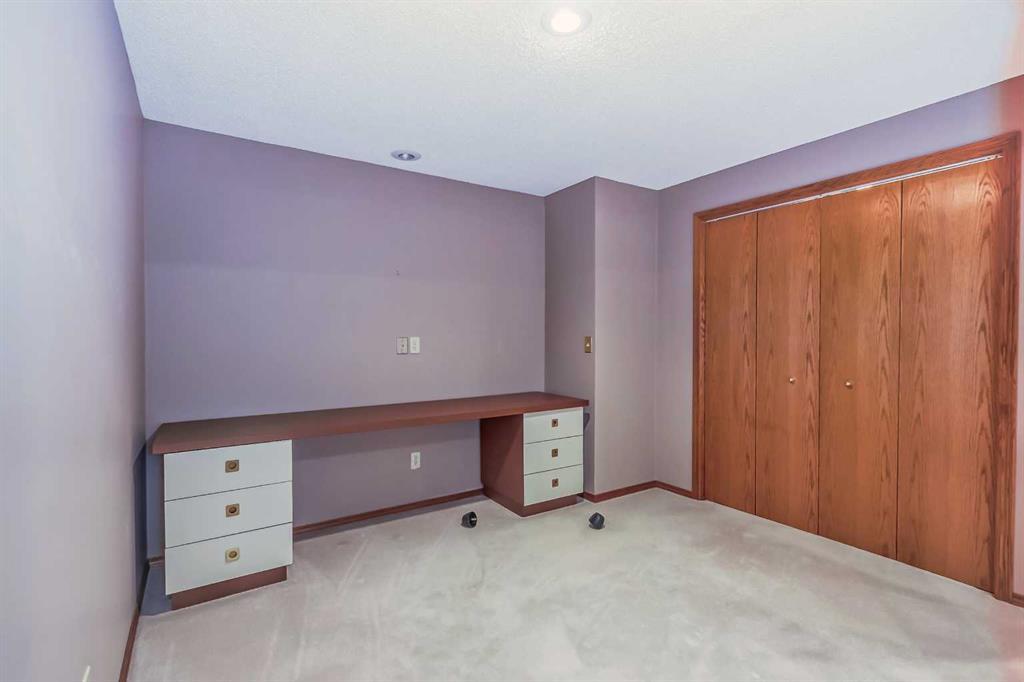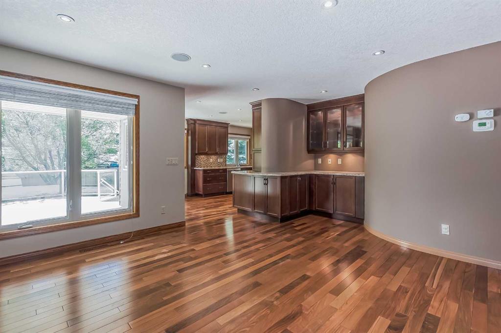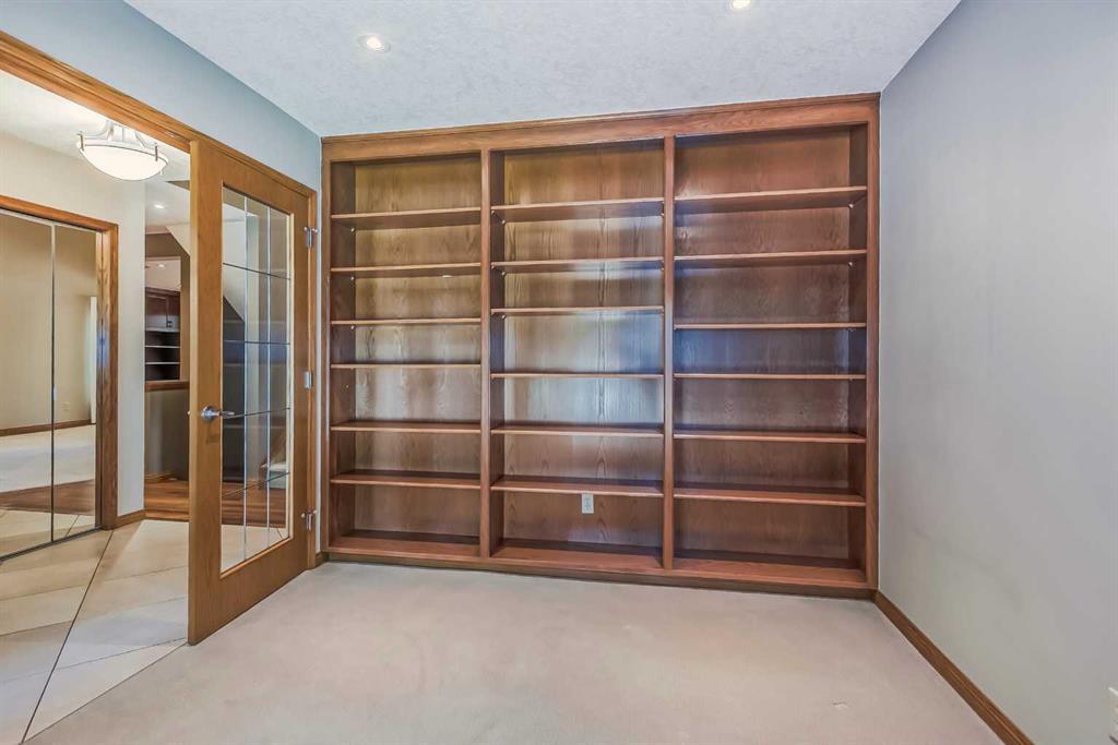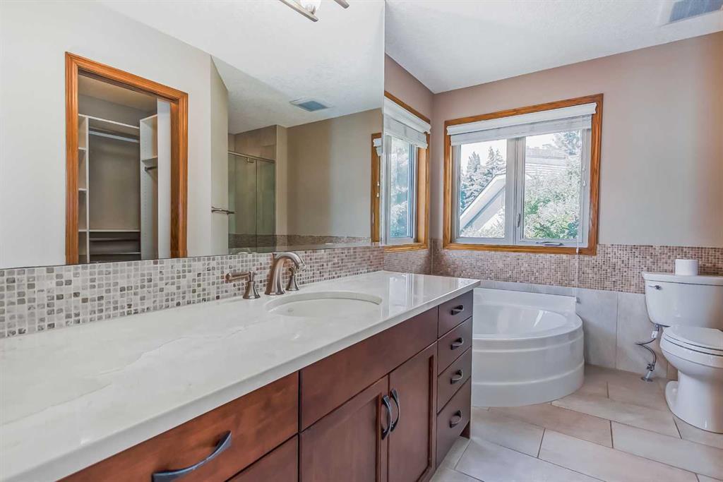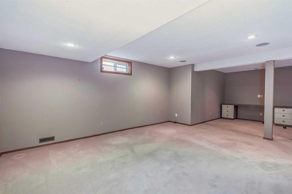Located in a prime Oakridge Estates cul-de-sac location, this 2345 sqft, 5-bedroom home offers character and elegance. The main floor features a den with a built-in bookcases and double French door entrance, a formal living room with a vaulted ceiling and a spectacular curved wall encasing the staircase walls that overlook the living, a formal dining room with a bay window looking out to the oversized pie-shaped backyard. The kitchen has also been updated with stainless steel appliance package, granite countertops, a built-in double oven, tiled backsplash, and a separate breakfast nook. The kitchen flows into the family room, which includes a built-in bar, a gas fireplace with brick surround, and a powder room. The mudroom doubles as a laundry room and provides access to the double attached garage with additional storage space.Upstairs is a large landing and four bedrooms, including the primary bedroom with an ensuite featuring heated tile floors, a standalone glass shower, a corner soaker tub, and a walk-in closet. The upper level is completed by three additional bedrooms and a 4-piece bath with a soaker tub.The fully finished basement offers a spacious rec room with a walk-in closet for storage, an additional bedroom, and a 4-piece bath with a tub/shower combo. The basement also includes a utility room that doubles as a massive storage room with a workbench and shelving.The south-facing pie-shaped backyard is a true oasis with mature trees, a large covered deck with DURADEK flooring, a gas line hookup, and ample green space for yard games. Additional features of the home include central air conditioning, an irrigation system, serviced furnaces, a new soft water tank, and two water heaters in excellent condition. The property's location offers proximity to South Glenmore Park, shopping centers, schools, pathways, and easy access to the new ring road. (id:22211)