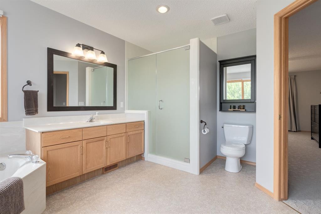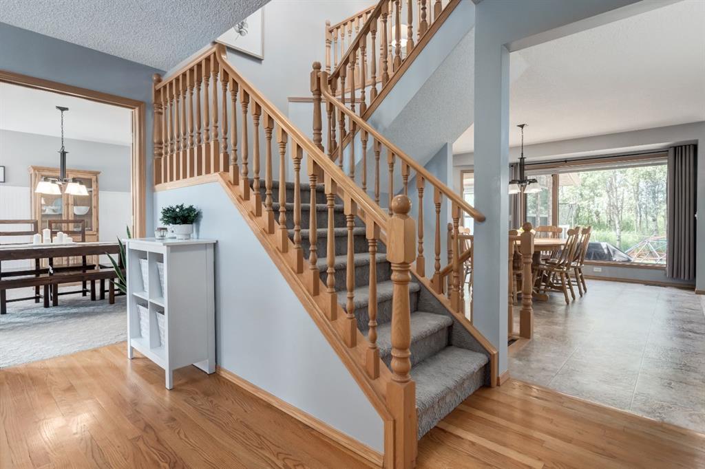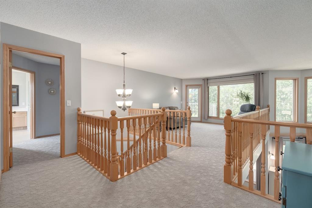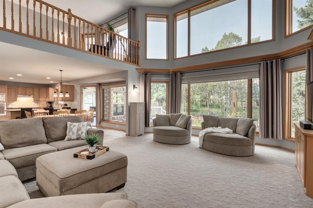This custom built home is truly spectacular and a must see!! Backing onto Fishcreek with endless views of the mountains and park space you feel as though you're on a private acreage. Sitting on a large Estate lot, the curb appeal is sure to impress from the hand crafted landscaping to the oversized triple car garage (with 9ft high door) and updated exterior and roofing (2017). As you walk in the front door you'll be drawn to expansive living room with a full wall of windows overlooking the park. Grab a coffee or some wine and sit in the 4 season sun room with gas fireplace located just off the gourmet kitchen. This is truly a fantastic family home with 6 bedrooms, 3.5 baths, 2 laundry areas and access to the garage from the basement as well as the main floor. The second level holds the primary bedroom with a 5-piece spa like ensuite and walk-in closet, as well as three additional bedrooms, a shared 4pc bathroom and loft overlooking the living room. Enjoy a second full kitchen, rec room, additional bedroom, 3pc bath and laundry room in the fully finished basement. And if you need any additional storage space, look no further than the oversized three-car garage with access to the basement and main floor. This home is stunning on every level and has so much to offer, book your showing today! (id:22211)