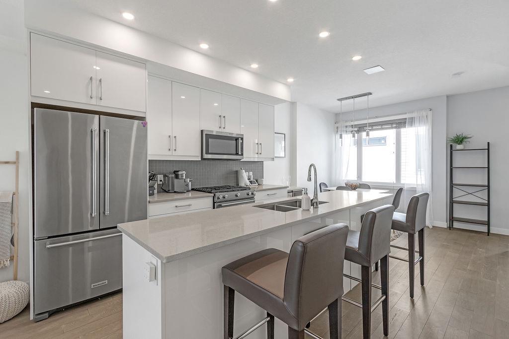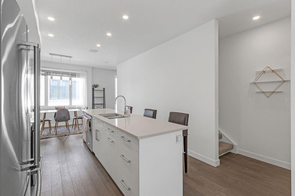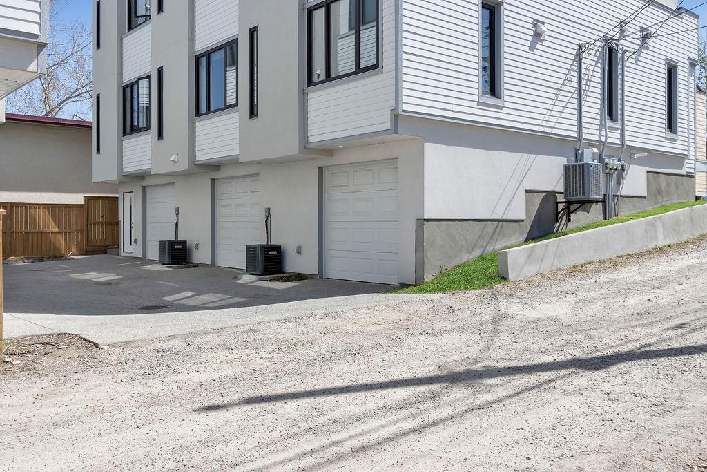 Ever wanted to back onto Confederation Park? Experience the epitome of luxury living in this stunning two-storey townhome, meticulously crafted by the esteemed builders at Par3. As you step inside, you'll be struck by the unparalleled elegance and sophistication that this home exudes, boasting an impeccable attention to detail and high-end finishes that define modern living. The main floor invites you to indulge in the comforts of home, with an inviting living space adorned with a cozy gas fireplace, perfect for relaxing or entertaining guests. The full kitchen is a culinary dream, complete with a beautiful island and gourmet appliances, making meal prep a breeze. The half bath adds a touch of convenience and privacy to the main floor. As you ascend the stairs to the upper level, you'll discover a gorgeous primary retreat with it's own balcony and a roomy secondary bedroom, each with their own ensuite bathrooms and easy access to the upper floor laundry room. Every inch of these rooms exudes luxury, from the plush carpeting to the stunning bathroom finishing. The lower level provides access to the attached garage, a full bathroom, and an additional bedroom, making this space perfect for guests or as a private home office. The 9' ceilings throughout the home create an airy, spacious feel, further complemented by the bright finishes and the seamless blend of an open floor plan with large windows for an abundance of natural light. Nestled in a prime location, this townhome complex backs onto Confederation Park, offering year round enjoyment and an idyllic escape from the hustle and bustle of city life. With easy access to downtown and major routes, this home is ideally located, perfect for the discerning buyer who desires both luxury and convenience. Be sure to click the floor plan +more info icons below for additional photos and information. Don't miss the opportunity to view this amazing home. (id:22211)