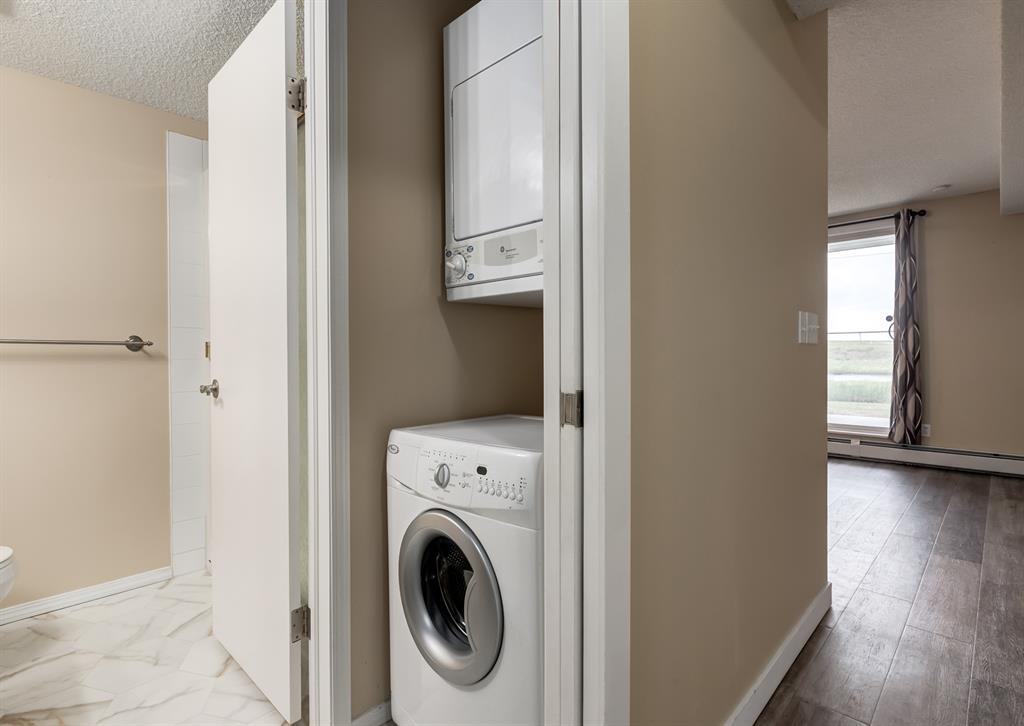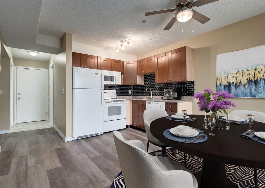 Welcome to this gorgeous South Facing unit, located on the green space. Extensively updated throughout this openconcept abode, welcomes you in with open arms as the pristine flooring glistens beneath your feet. Your modern kitchen will leave you in aww, set upon the gorgeous counter tops, appliances, and enough cupboard space to tuck away every single appliance you own. End the night cuddled in your living room as the sun casts its colourful rays throughout your unit. Retreat to your beaming master complete with fresh paint and large closet to fit your ever-expanding wardrobe. End your evening with a glass of wine on your patio as you overlook the green space listening to the birds. Enjoy the luxury of in-suite laundry and secured TITLED underground parking and condo fees that include ALL utilities! This is the perfect condo, just minutes to some of Calgary's core shopping centres offering all the services and amenities you could need. Come experience the warm embrace of your new home. (id:22211)