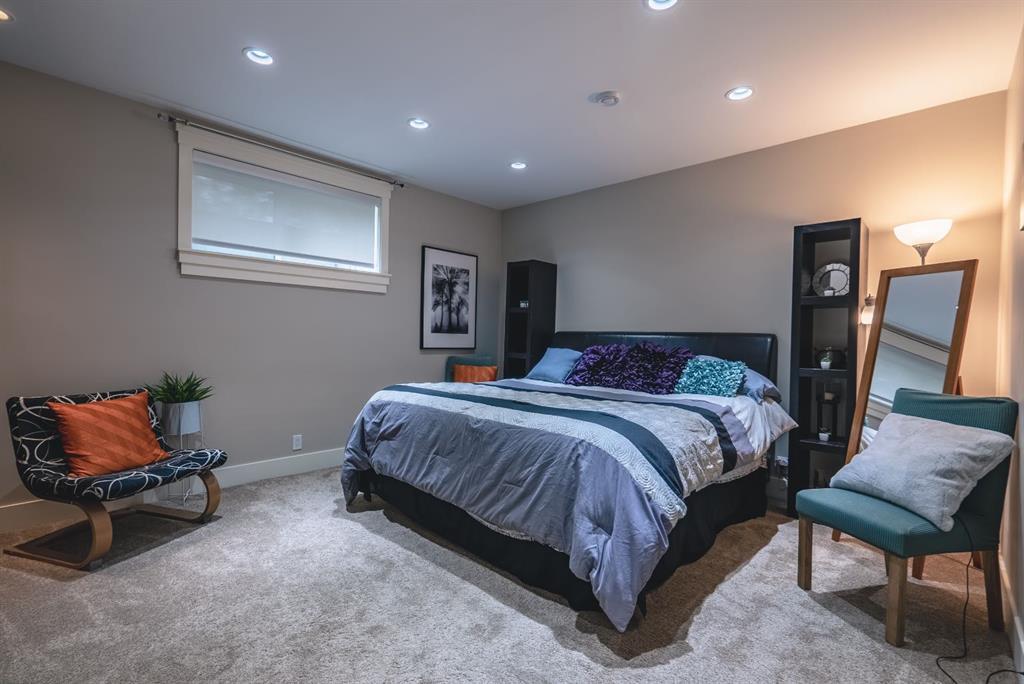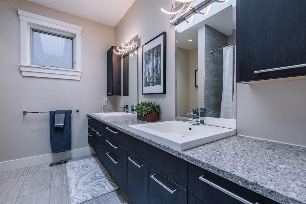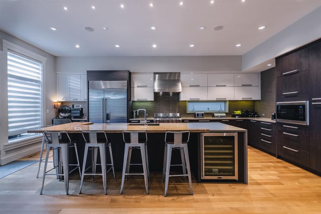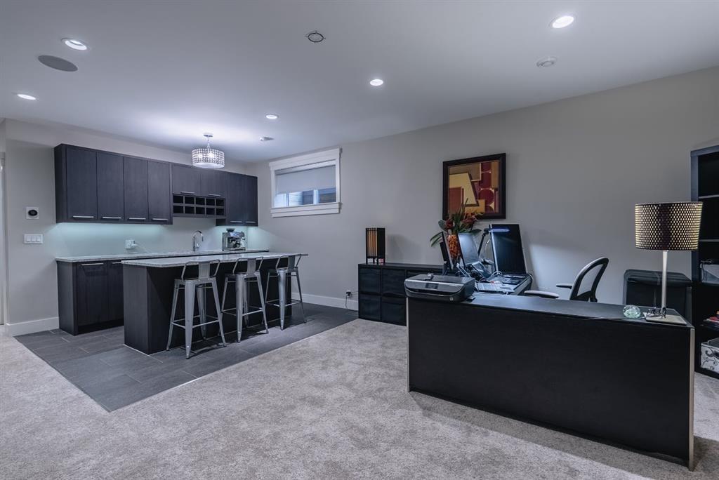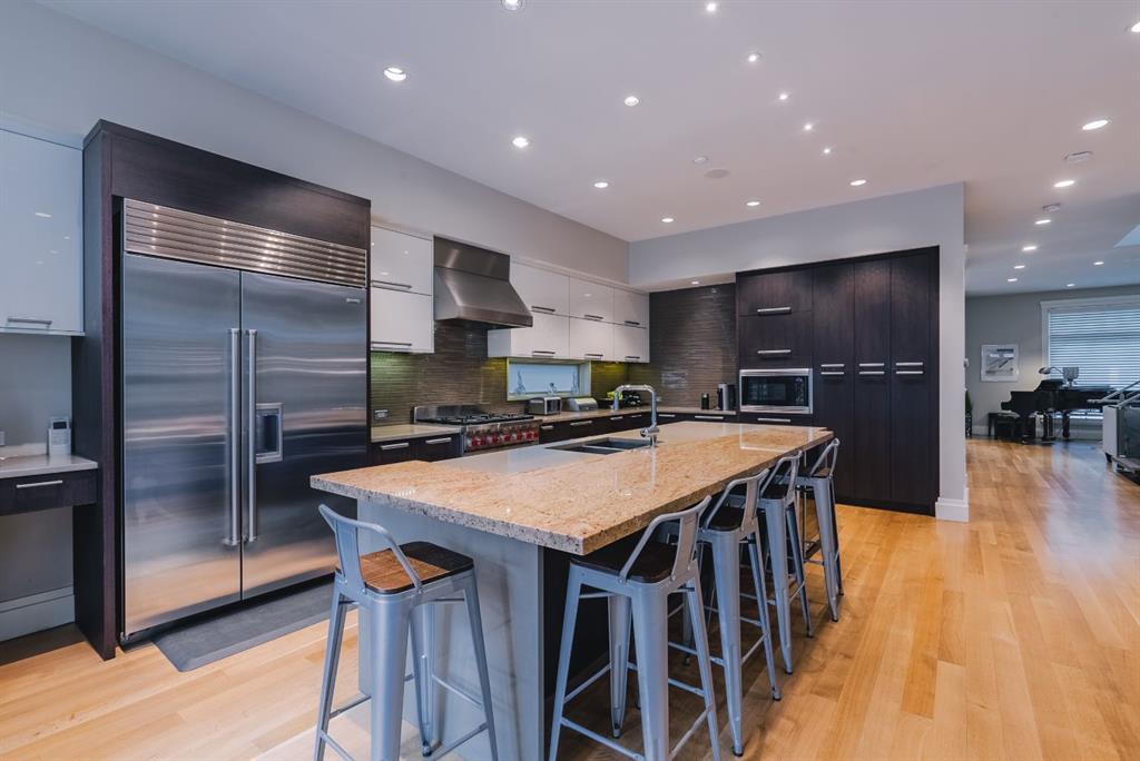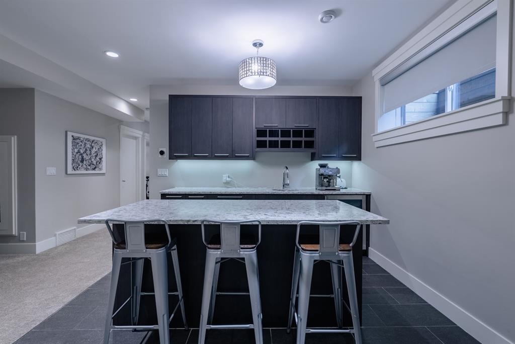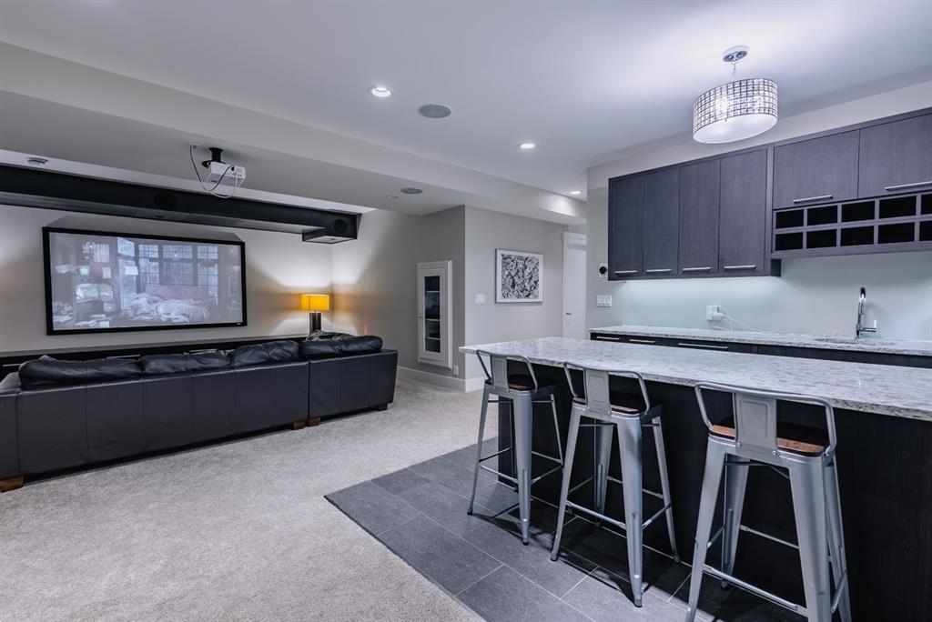 Immaculate West Coast modern home located on an oversized 37.5' x 125' lot in desirable Hillhurst. This home will leave a lasting impression as you walk up the beautifully manicured lot and into a warm and inviting foyer where you'll instantly notice 10' ceilings, impeccable white oak hardwood floors, and clean contemporary lines throughout. A front formal living room is adorned by the south sun and is anchored by a stone surround gas fireplace. The main living space is an open floor plan with a dining area, family room with another gas fireplace and built-ins and an executive kitchen with with a large island with raised breakfast bar and wine fridge, granite & quartz counters, designer styled kitchen cupboards, and high-end appliances including Subzero fridge, and Wolf microwave and gas range. Open riser stairs with glass rails lead up to a bright upper level showcasing 9' ceilings, skylights, convenient laundry, full bath, and 4 generous bedrooms. The primary retreat is a tranquil setting with ample windows, private balcony, gas fireplace, and a luxurious 6pc ensuite with in-floor heat, steam shower and soaker tub. Accessible from the ensuite if the large walk-in closet with custom shelving. The fully developed lower presents in-floor heating, a fifth bedroom and den that can ideally function as a home gym or office. Families will love the large games area and gathering for movies in the media room with projector and screen. A large wet bar with centre island is perfect for storing beverages and making popcorn. The backyard retreat is a serene oasis with a covered gazebo over the deck for privacy, beautiful yard for kids to play and heated double detached garage. Live an amazing urban lifestyle on a quiet tree-lined cul-de-sac within steps of the city's best bike paths, walking distance to downtown, and close to the trendy shops & cafes of Kensington. Welcome home! (id:22211)