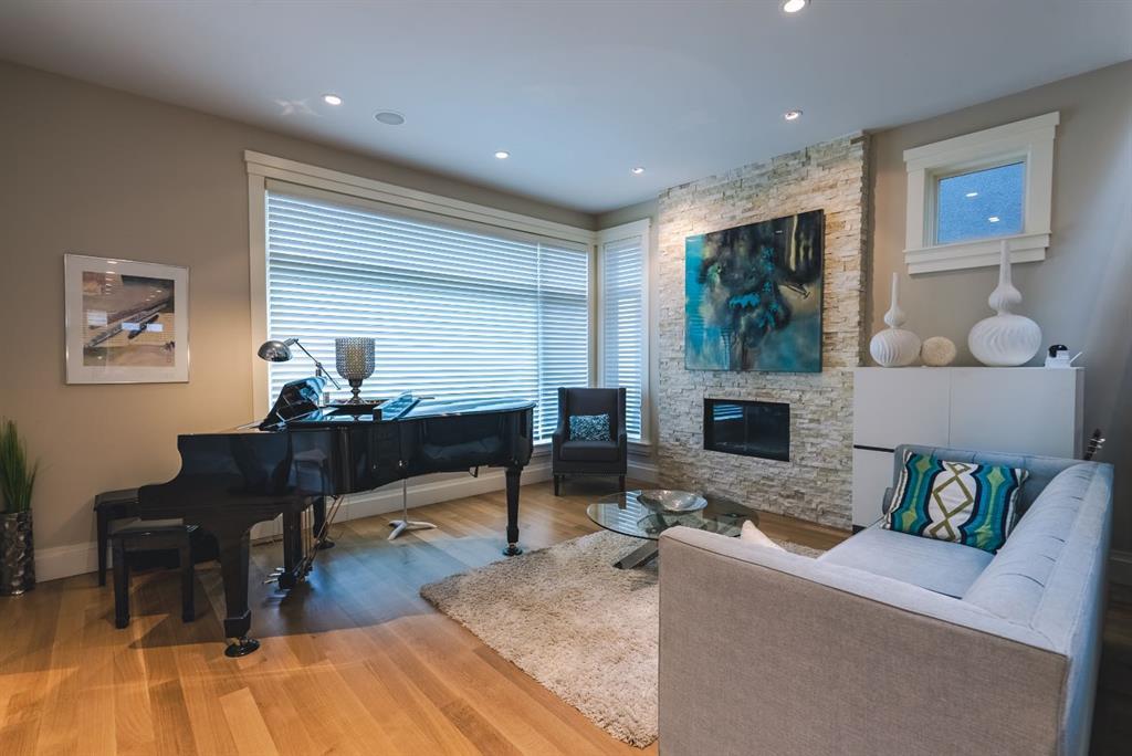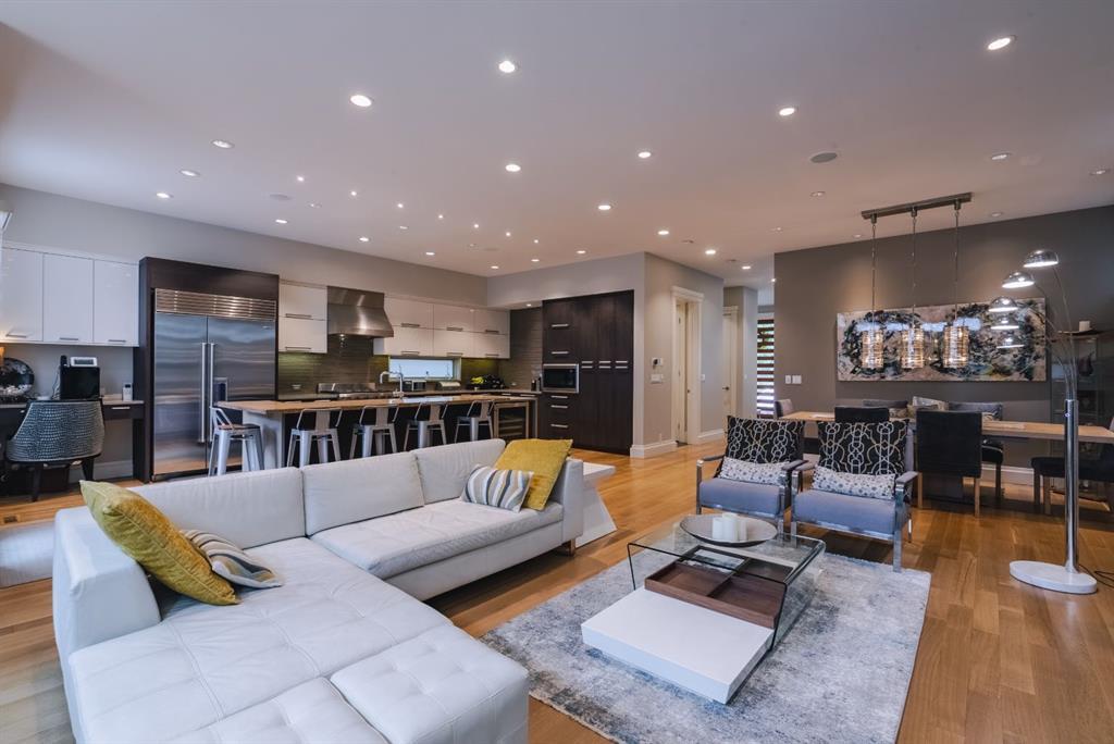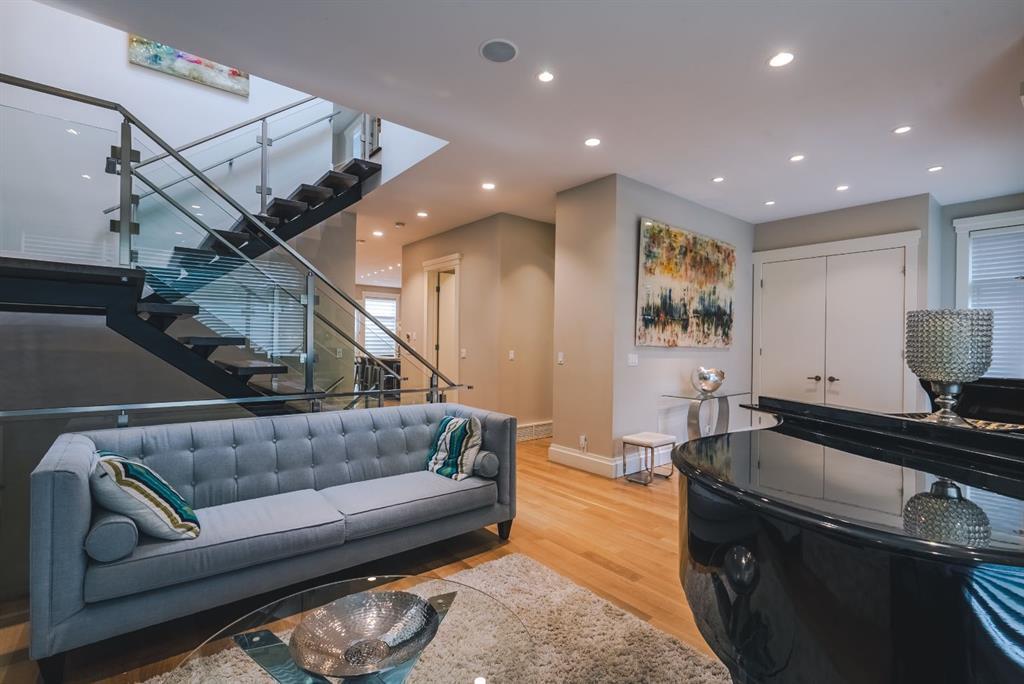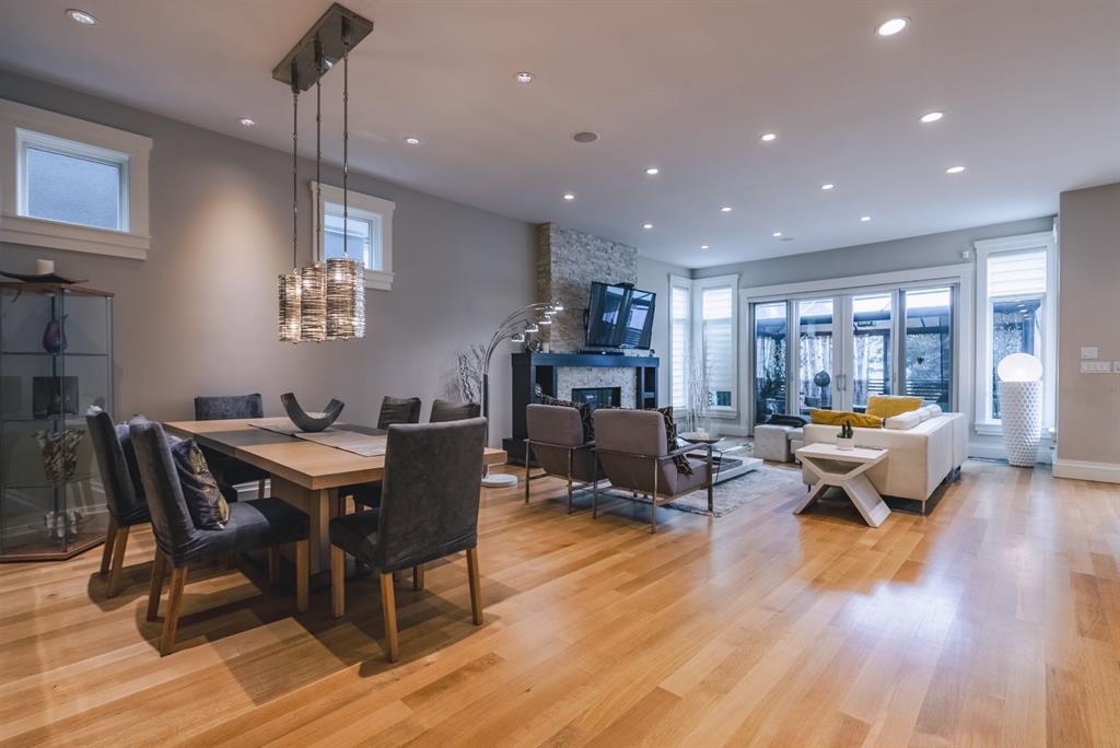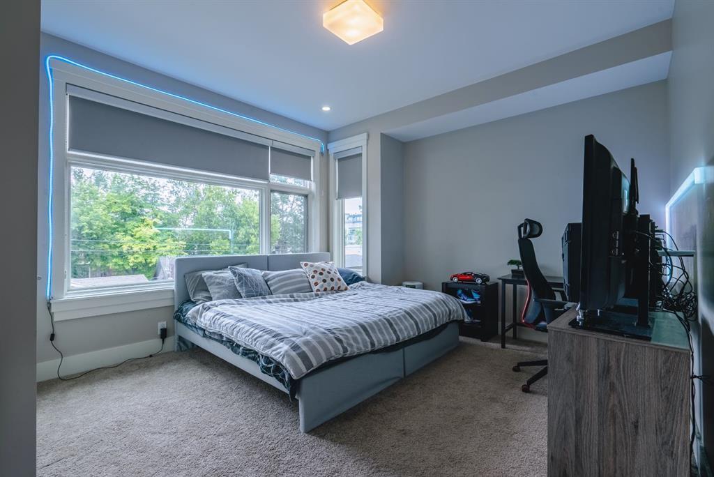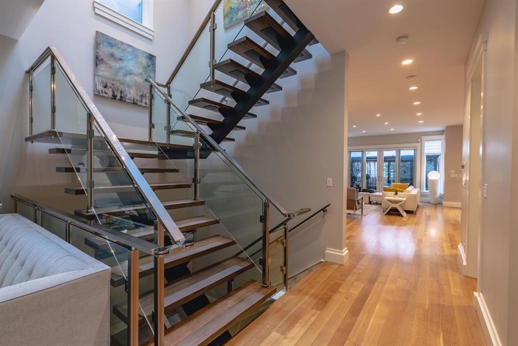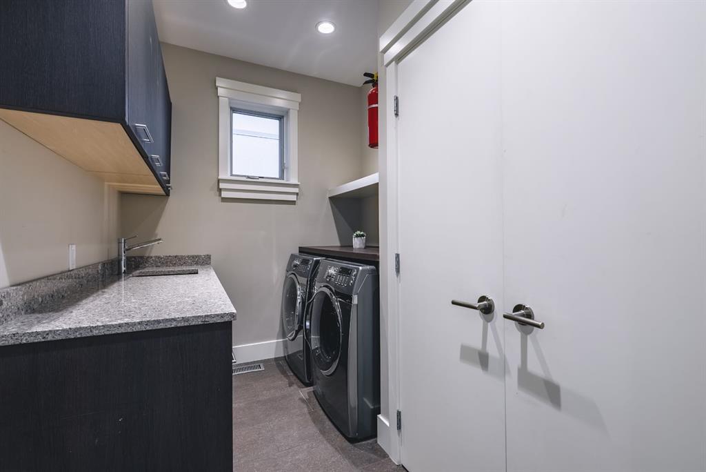 Immaculate West Coast modern home located on an oversized 37.5' x 125' lot in desirable Hillhurst. This home will leave a lasting impression as you walk up the beautifully manicured lot and into a warm and inviting foyer where you'll instantly notice 10' ceilings, impeccable white oak hardwood floors, and clean contemporary lines throughout. A front formal living room is adorned by the south sun and is anchored by a stone surround gas fireplace. The main living space is an open floor plan with a dining area, family room with another gas fireplace and built-ins and an executive kitchen with with a large island with raised breakfast bar and wine fridge, granite & quartz counters, designer styled kitchen cupboards, and high-end appliances including Subzero fridge, and Wolf microwave and gas range. Open riser stairs with glass rails lead up to a bright upper level showcasing 9' ceilings, skylights, convenient laundry, full bath, and 4 generous bedrooms. The primary retreat is a tranquil setting with ample windows, private balcony, gas fireplace, and a luxurious 6pc ensuite with in-floor heat, steam shower and soaker tub. Accessible from the ensuite if the large walk-in closet with custom shelving. The fully developed lower presents in-floor heating, a fifth bedroom and den that can ideally function as a home gym or office. Families will love the large games area and gathering for movies in the media room with projector and screen. A large wet bar with centre island is perfect for storing beverages and making popcorn. The backyard retreat is a serene oasis with a covered gazebo over the deck for privacy, beautiful yard for kids to play and heated double detached garage. Live an amazing urban lifestyle on a quiet tree-lined cul-de-sac within steps of the city's best bike paths, walking distance to downtown, and close to the trendy shops & cafes of Kensington. Welcome home! (id:22211)