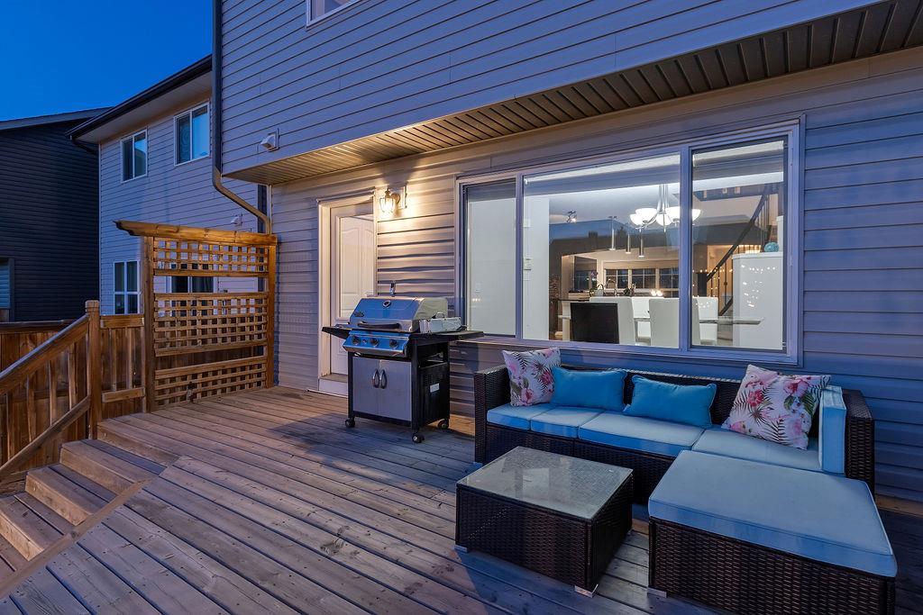 Nestled on a quiet street in the in the STUNNING LAKE COMMUNITY OF AUBURN BAY, this Brookfield Belvedere model home is truly a gem! Boasting GLEAMING HARDWOOD FLOORS, 3 spacious bedrooms and 2.5 baths, this home offers plenty of space for a growing family or anyone who loves to entertain.The open concept main floor is flooded with natural light thanks to large windows and skylights. The gorgeous kitchen is a chef's dream, featuring granite countertops, tons of maple cabinets, stainless steel appliances, custom tile backsplash, and a breakfast bar. It's perfectly situated between the living room with a cozy gas fireplace and the spacious dining area, which conveniently leads out to the back deck. A mudroom and powder room are tucked away at the back entrance for added convenience. The stunning open spiral staircase with iron and wood railing leads upstairs to an open walkway, two generous-sized guest bedrooms and 4-piece bath. The primary suite is a true retreat, with ample room for a king-sized bedroom suite, includes a walk-in closet, and a 4-piece ensuite, plus a covered balcony perfect for enjoying a quiet morning coffee as the sun rises in the east!The west-facing backyard is a true oasis, with a custom deck surrounded by privacy lattice, a raised bar overlooking the brick firepit and patio plus a gas bbq outlet perfect for entertaining on a hot summer night! There's even an oversized double detached garage for added convenience.The basement offers plenty of space for future development with large windows and high ceilings. This home is within walking distance to the new Bayside School and close to parks, walking paths, the south campus hospital, shopping, pubs, coffee shops, and restaurants at Seton and Mahogany! Great access to all quadrants of Calgary and the mountains via Stoney Trail and Deerfoot, this home truly has it all.Don't miss your chance to own this stunning home in one of Calgary's most desirable lake communities. Contact me today to book yo ur viewing! (id:22211)