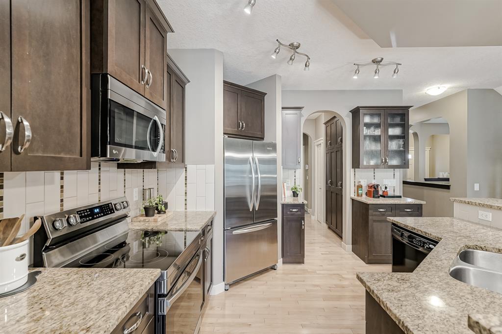 Welcome to this stunning 5-bedroom, 3-and-a-half-bathroom home in the upscale community of Evanston. This home has it all! Great curb appeal with beautiful landscaping welcomes you into this warm, family-style home. Wood floors lead you into the open concept including a chef's kitchen with granite countertops, stainless steel appliances, a beautiful open dining area, and an entertainers living room complete with a gas fireplace. Upstairs you'll find the large primary retreat with a gorgeous ensuite complete with dual vanities, a soaker tub, and a separate shower and walk-in closet. A huge bonus room adjoins 3 additional bedrooms and the full bathroom completes the upper level before you head to the fully developed basement. The first thing you will notice is the expansive built-in workspace that is open to the family room. Down the hall is another great size bedroom and luxury full bathroom creating an amazing space for guests. The backyard will make you want to sit out and BBQ with friends and family with its custom sitting area and full landscaping it is perfect for entertaining. Do not miss out on the opportunity to own this amazing property in the family-oriented and well-situated community of Evanston! (id:22211)